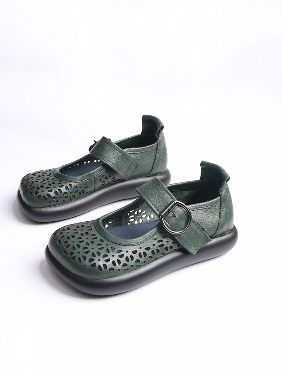 Sapatos femininos de verão em couro legítimo vazado, sapatos baixos.