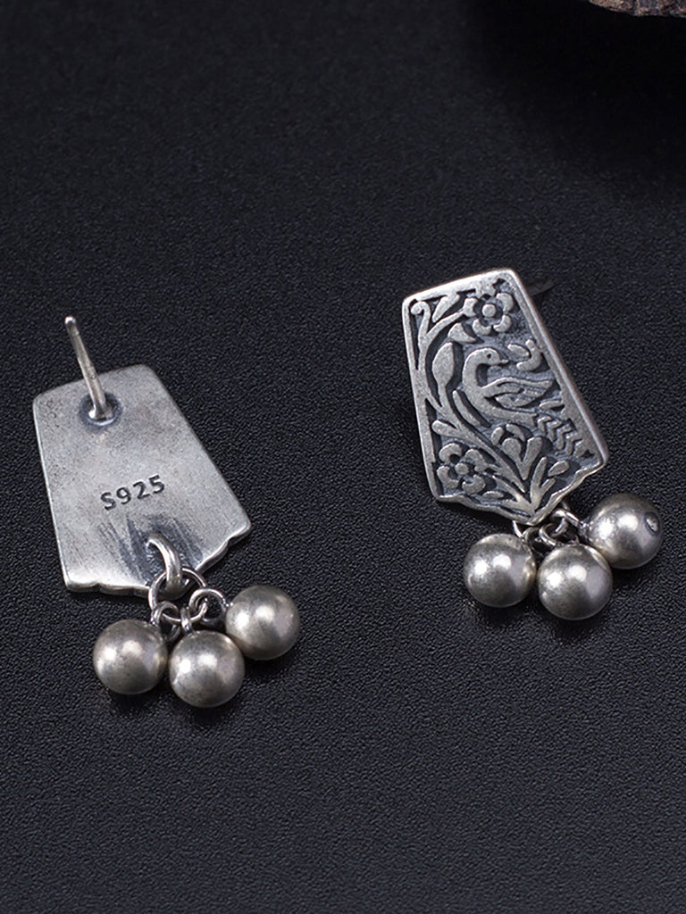 Mulheres Vintage Sliver Carve Bead Pingente Brincos
