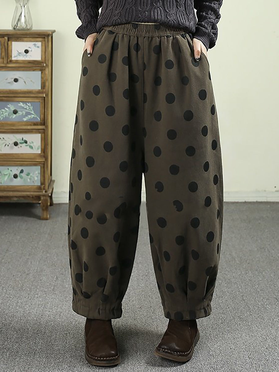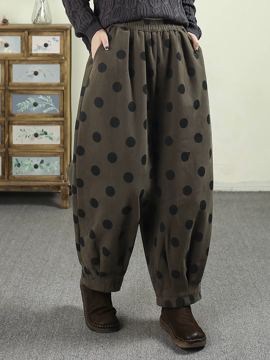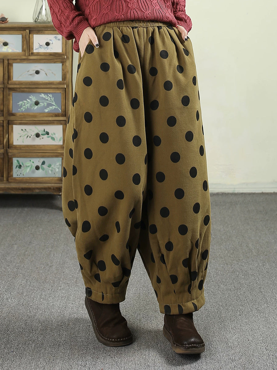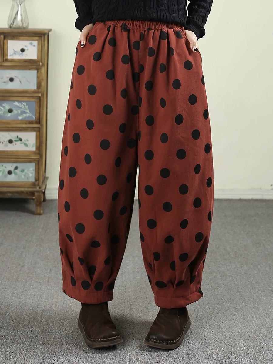 Calça Harem Acolchoada Feminina de Inverno com Estampa Retrô de Bolinhas