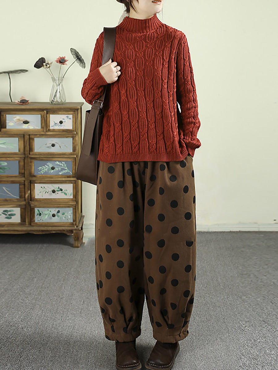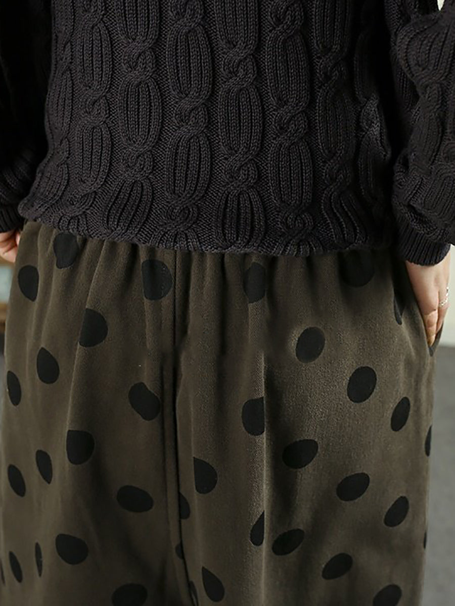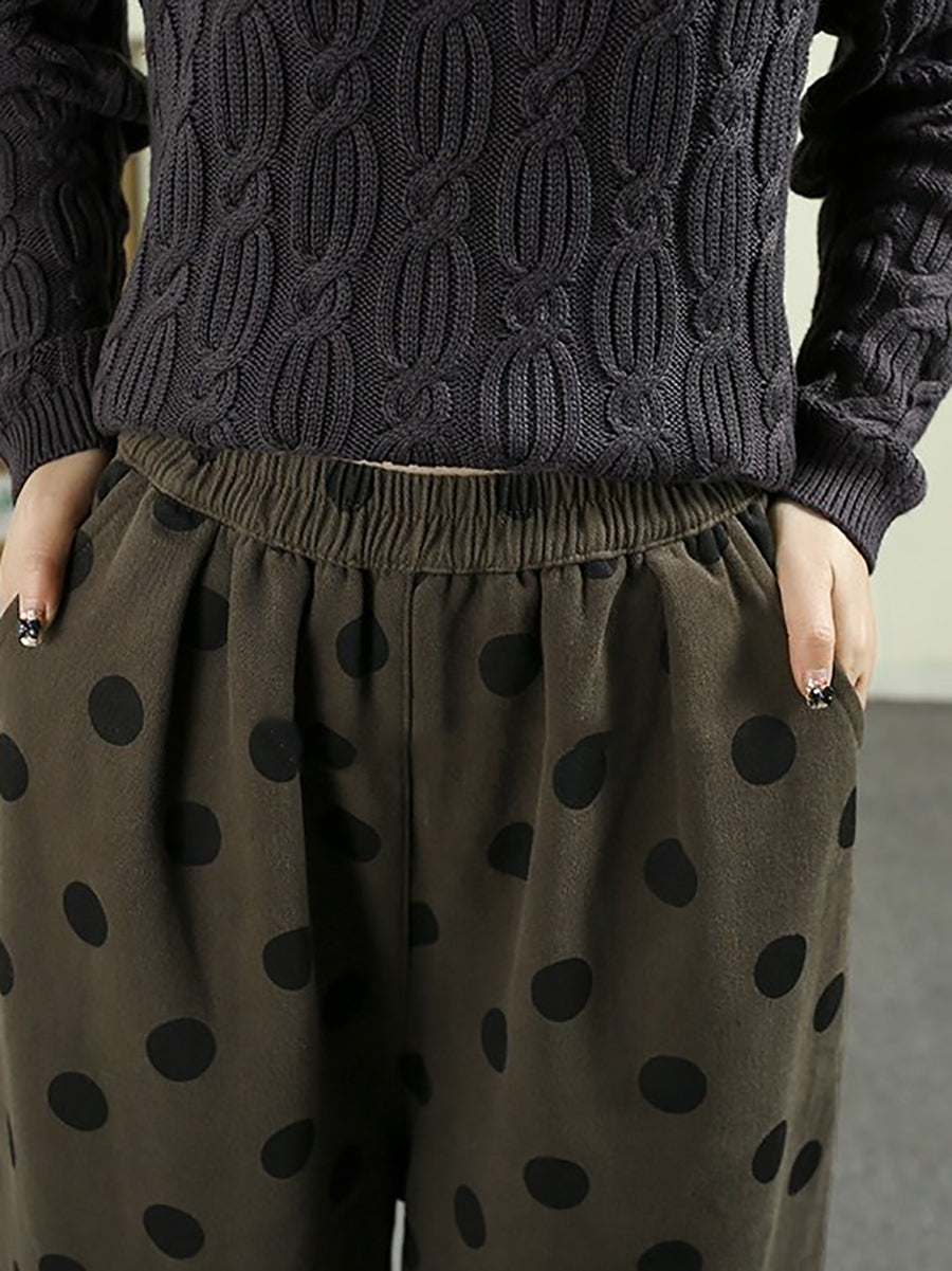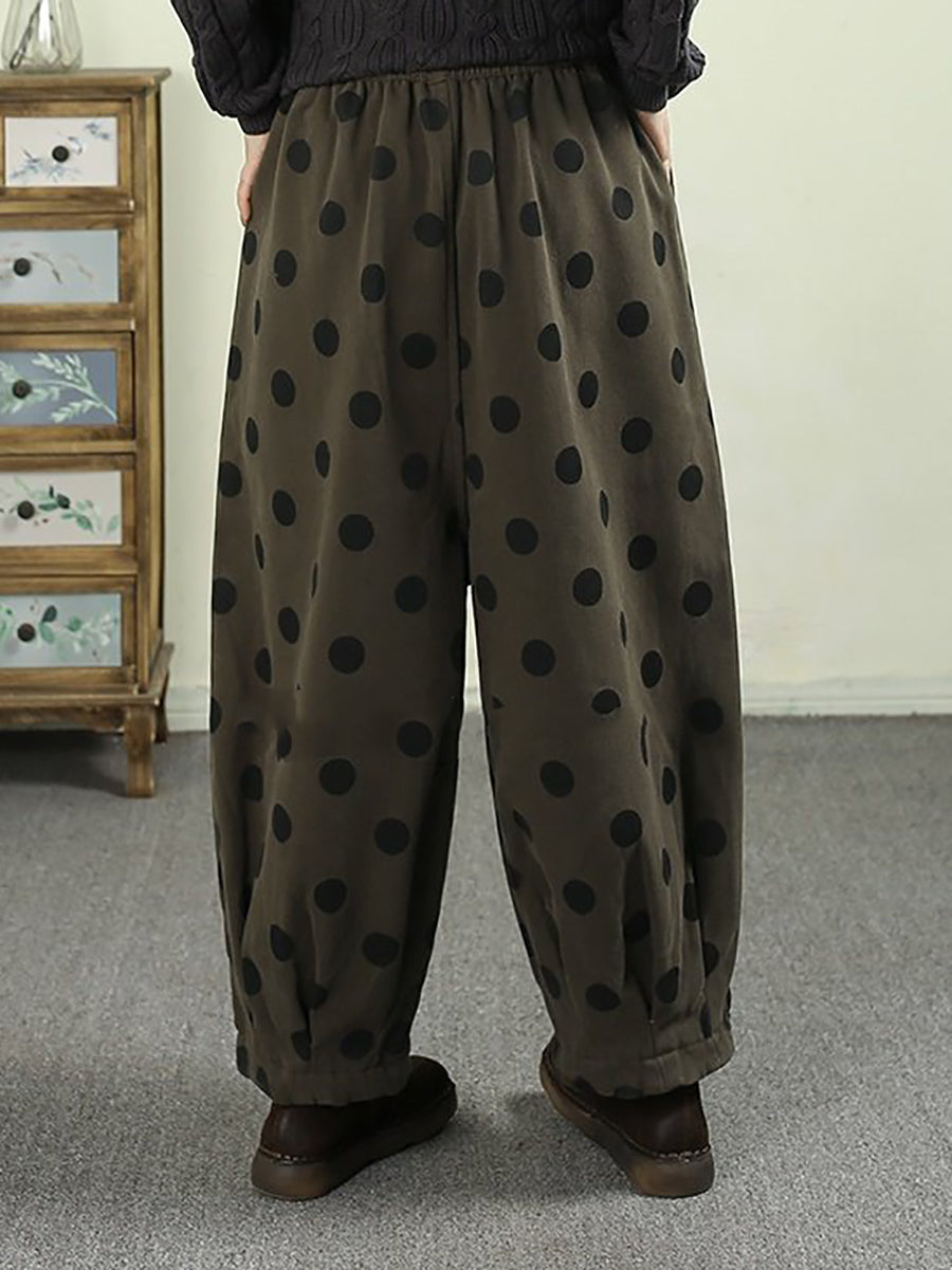 Calça Harem Acolchoada Feminina de Inverno com Estampa Retrô de Bolinhas