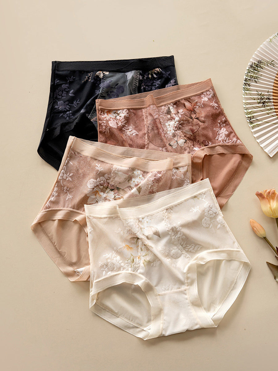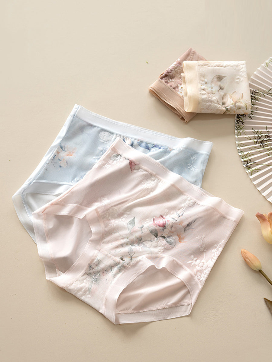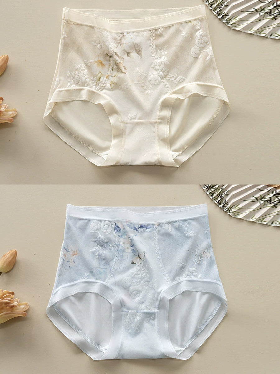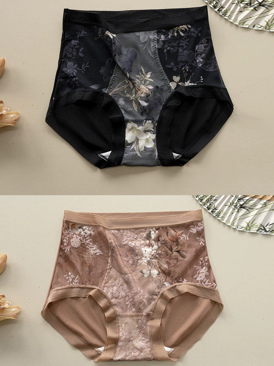 Lenjerie intimă cu talie înaltă, model floral artistic, 2 piese pentru femei