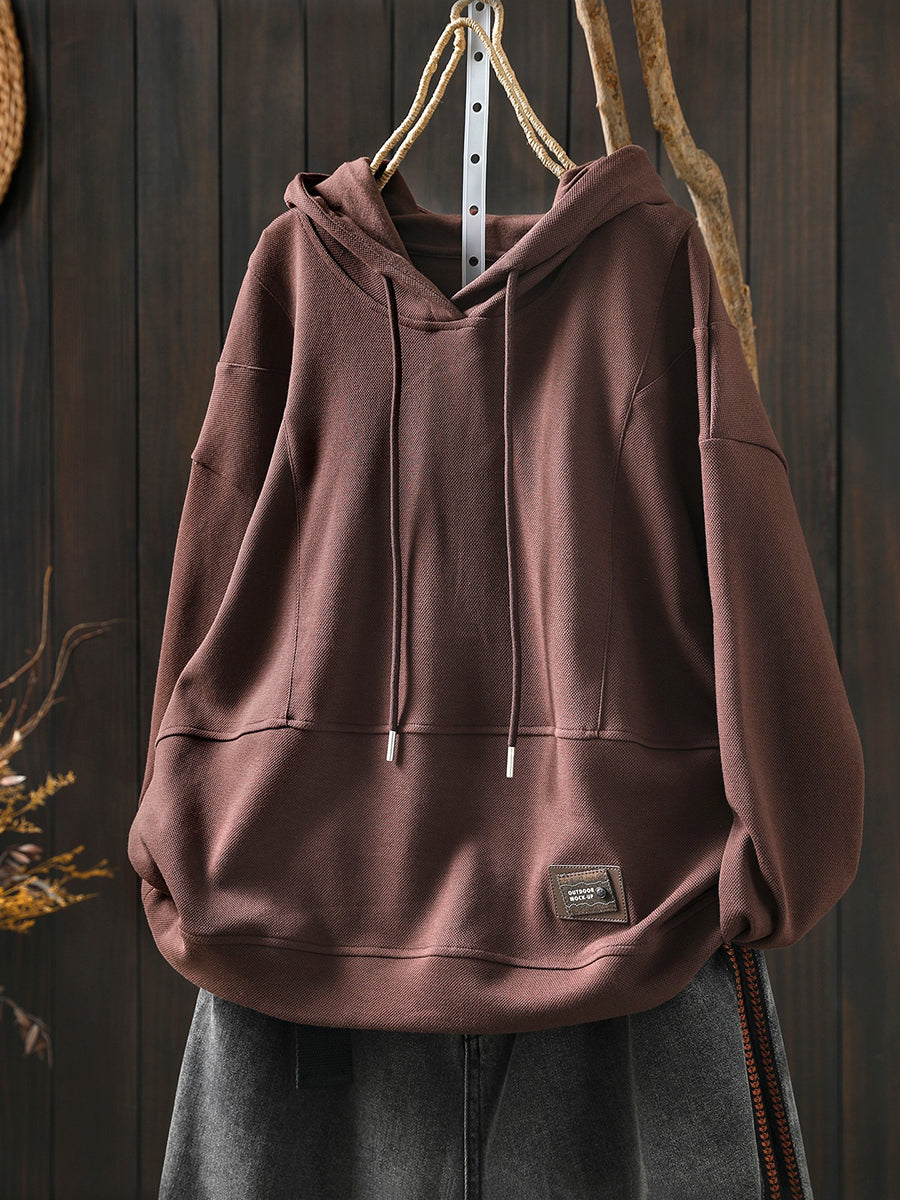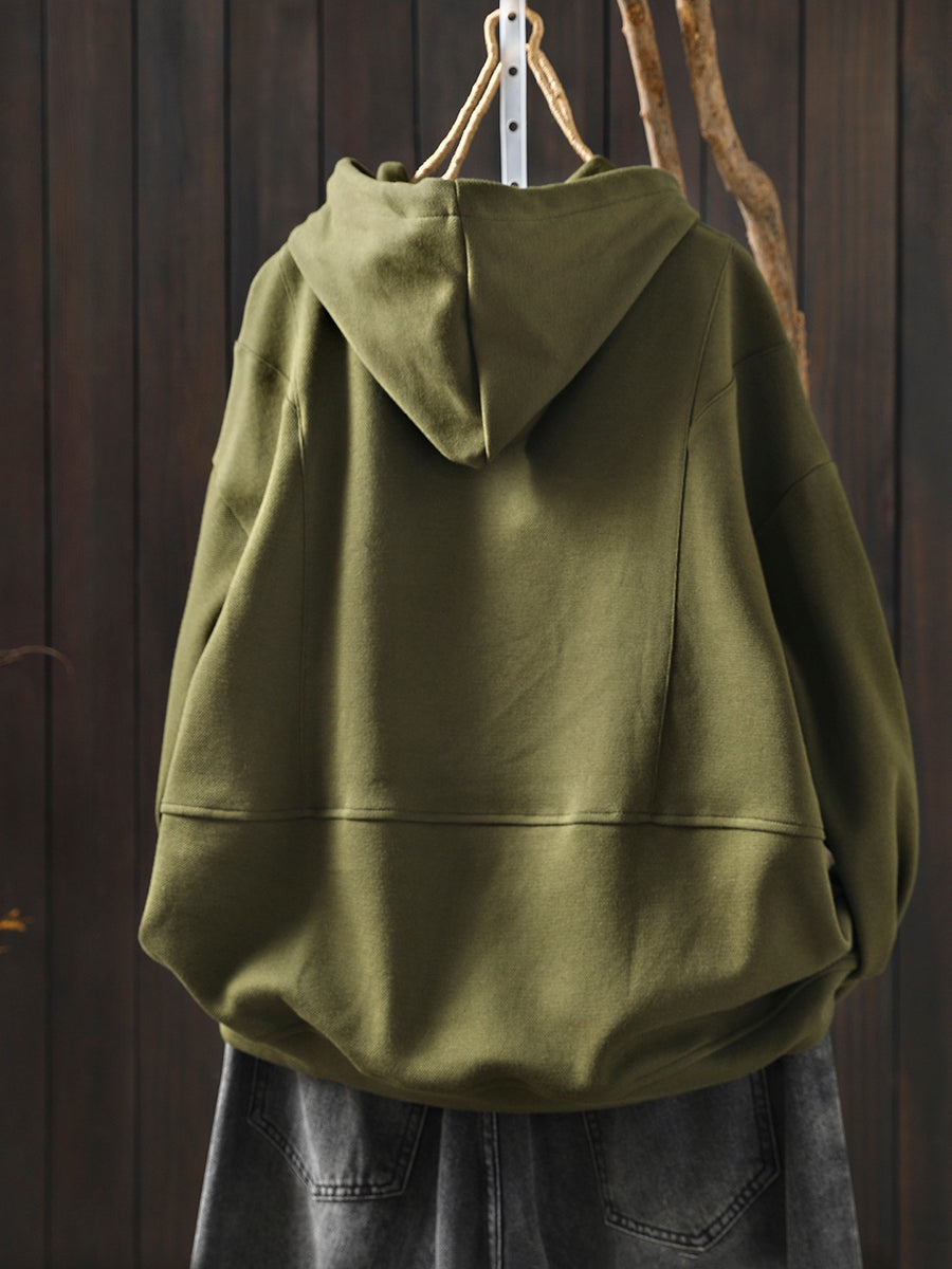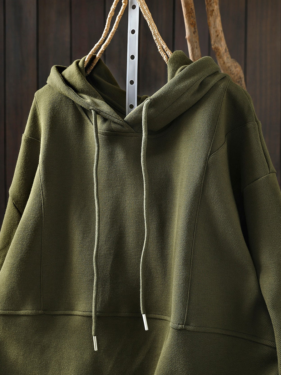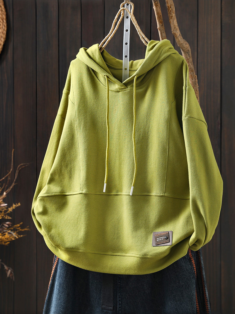 Hanorac cu glugă din bumbac de culoare pură, casual, pentru femei, de primăvară
