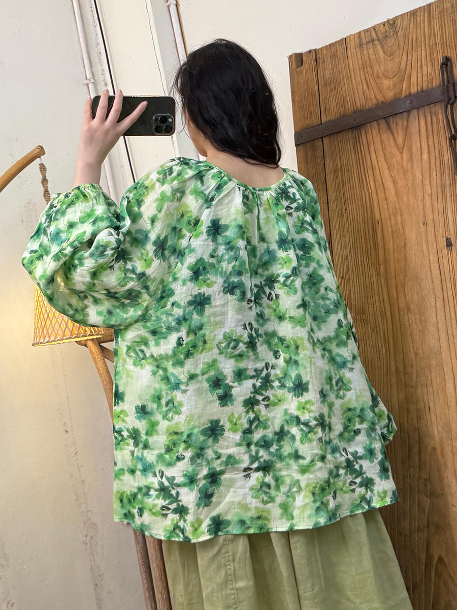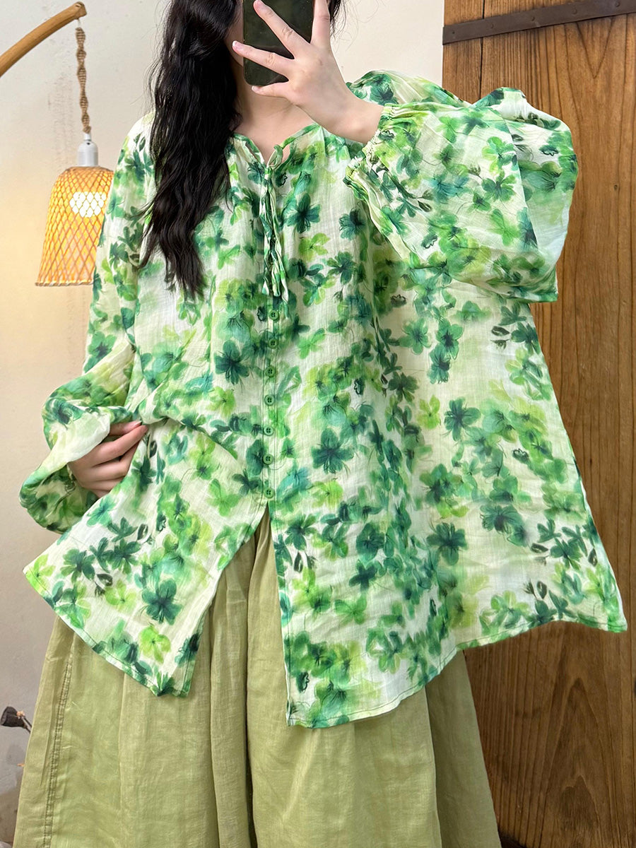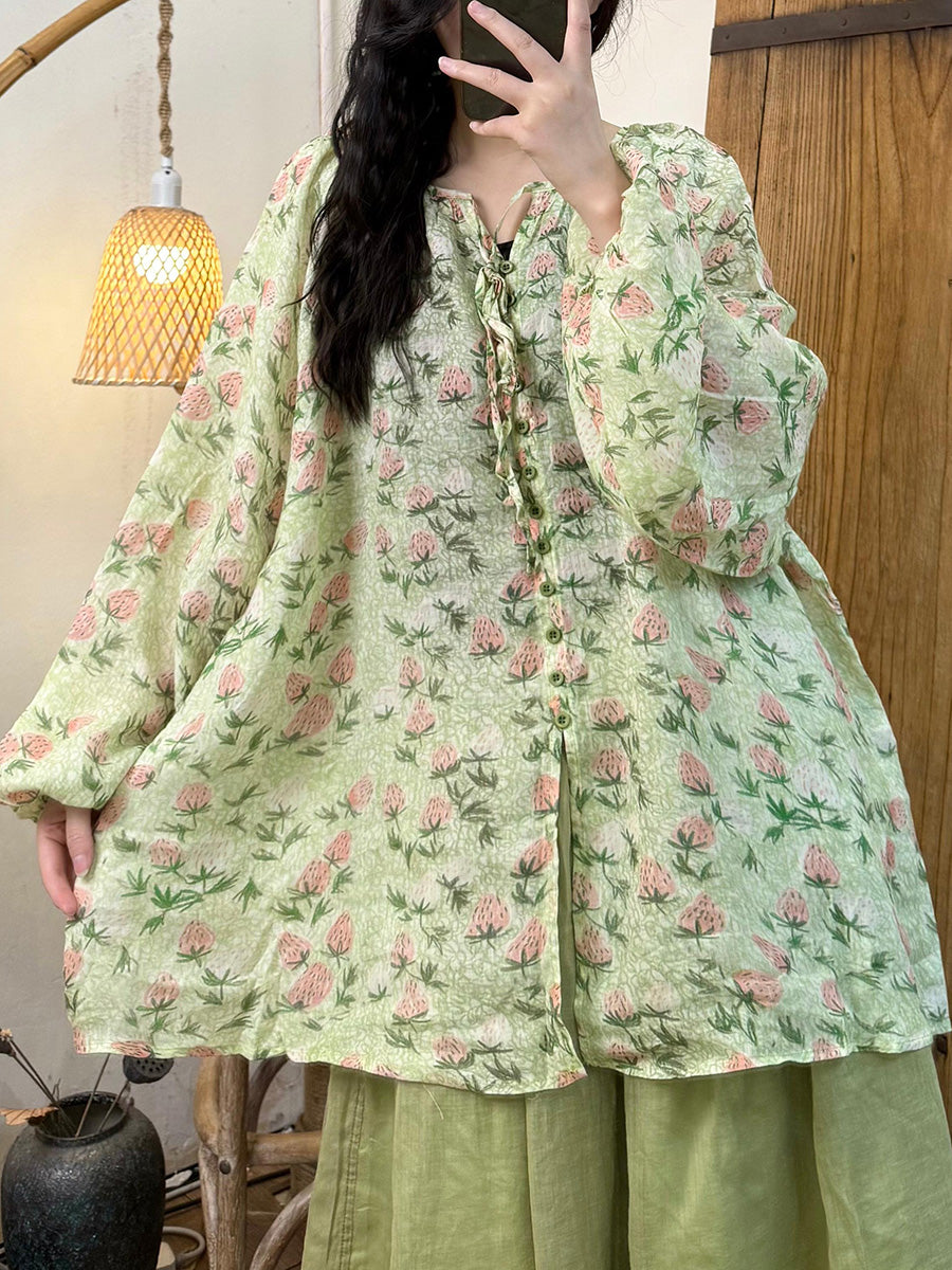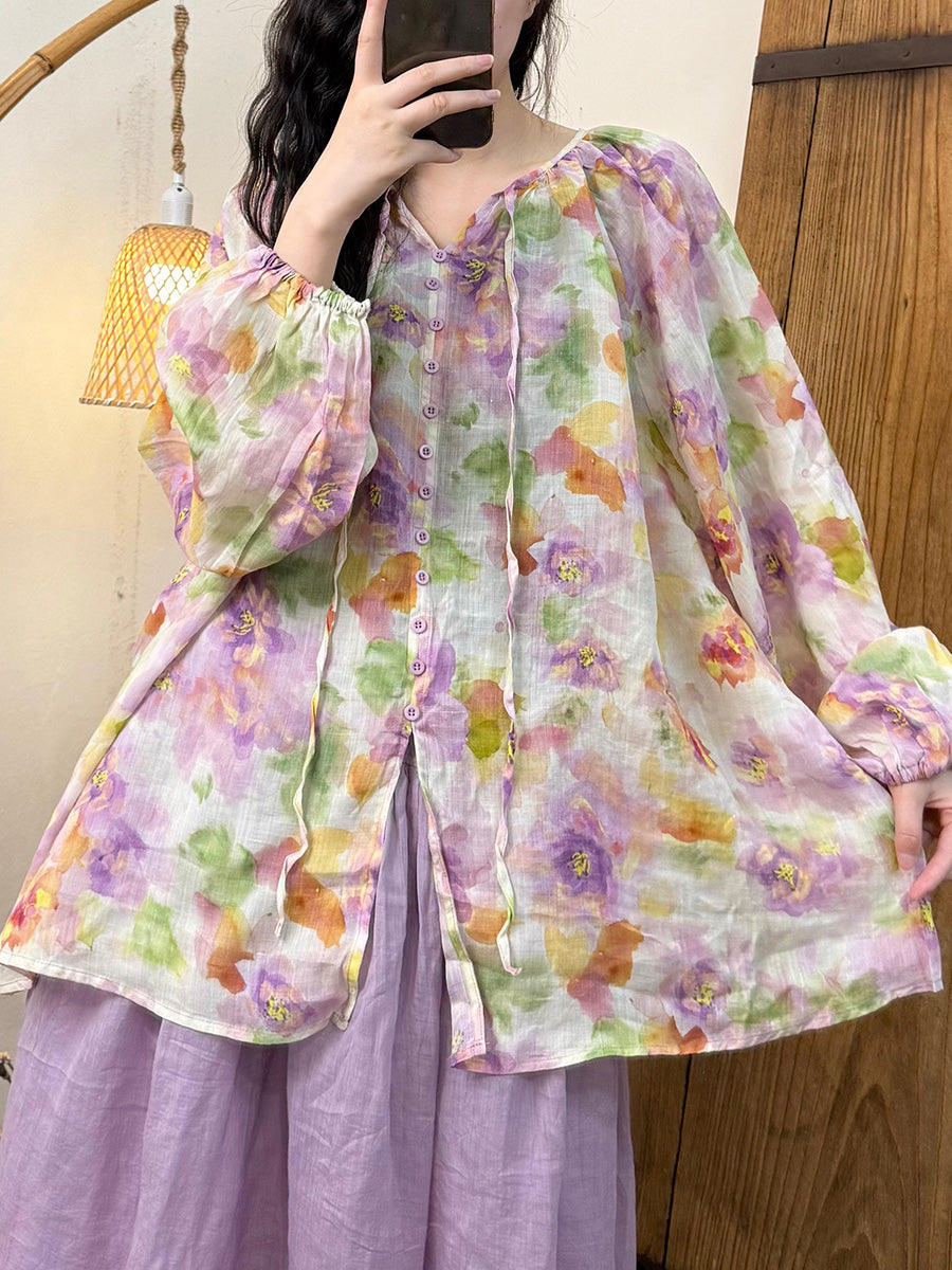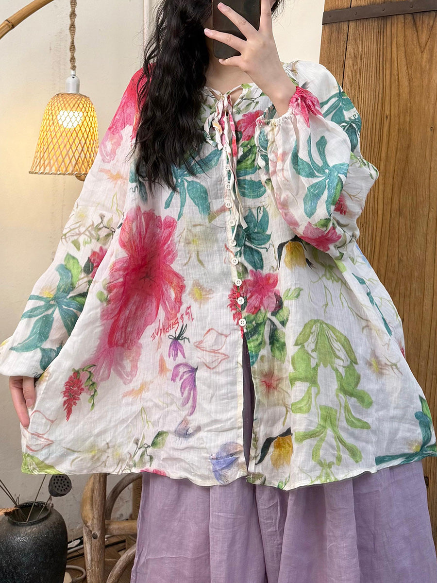 Cămașă din ramie cu curele cu flori de vară pentru femei
