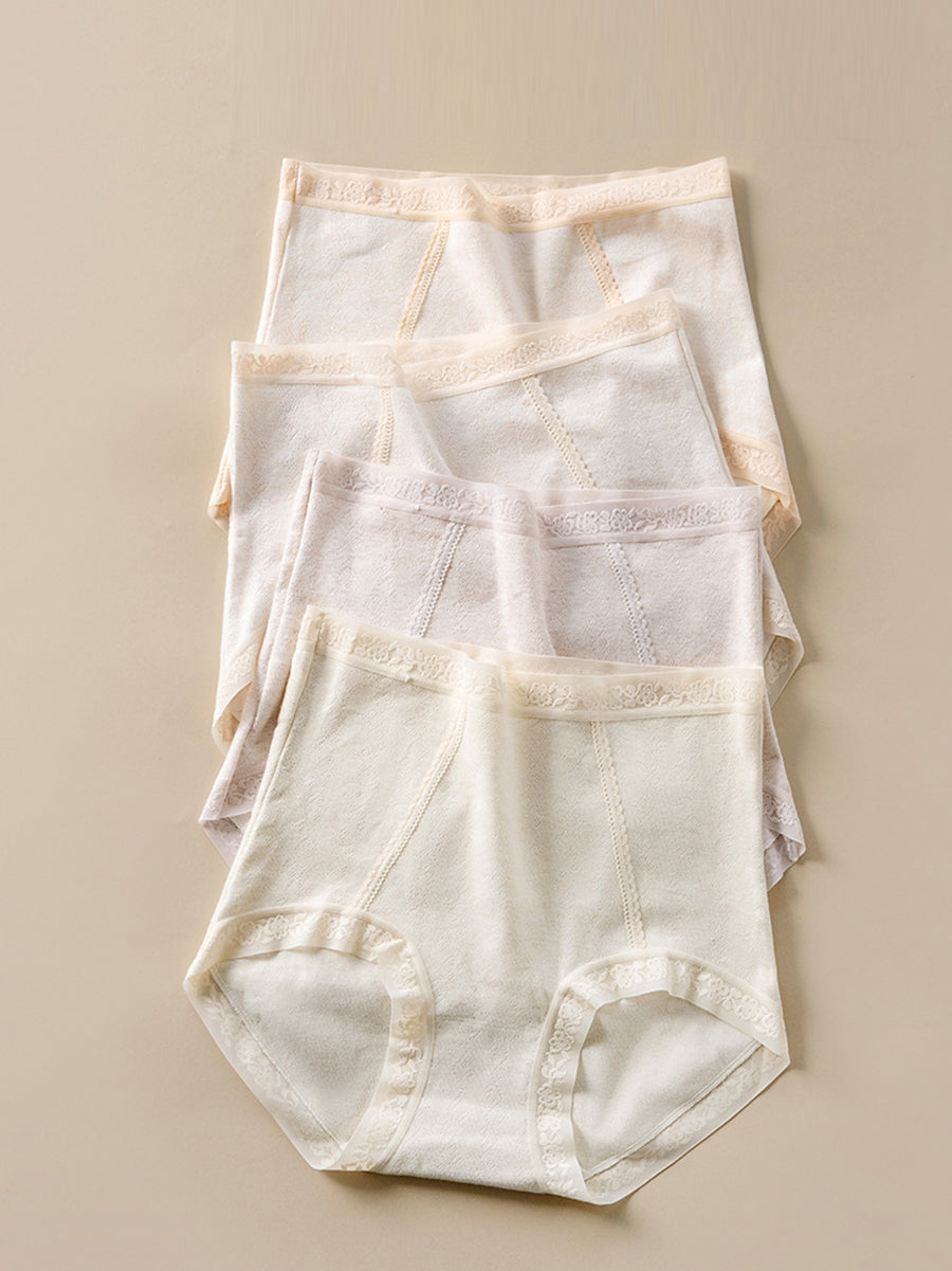 4 piese lenjerie intimă pentru femei, cu talie înaltă, în culori pure, artistice