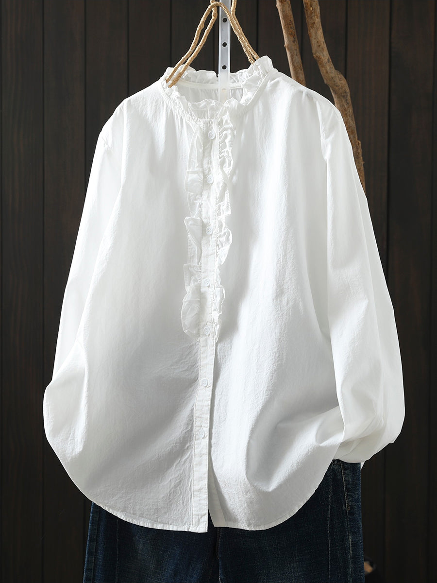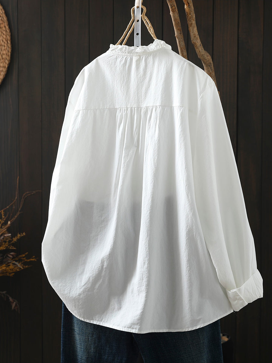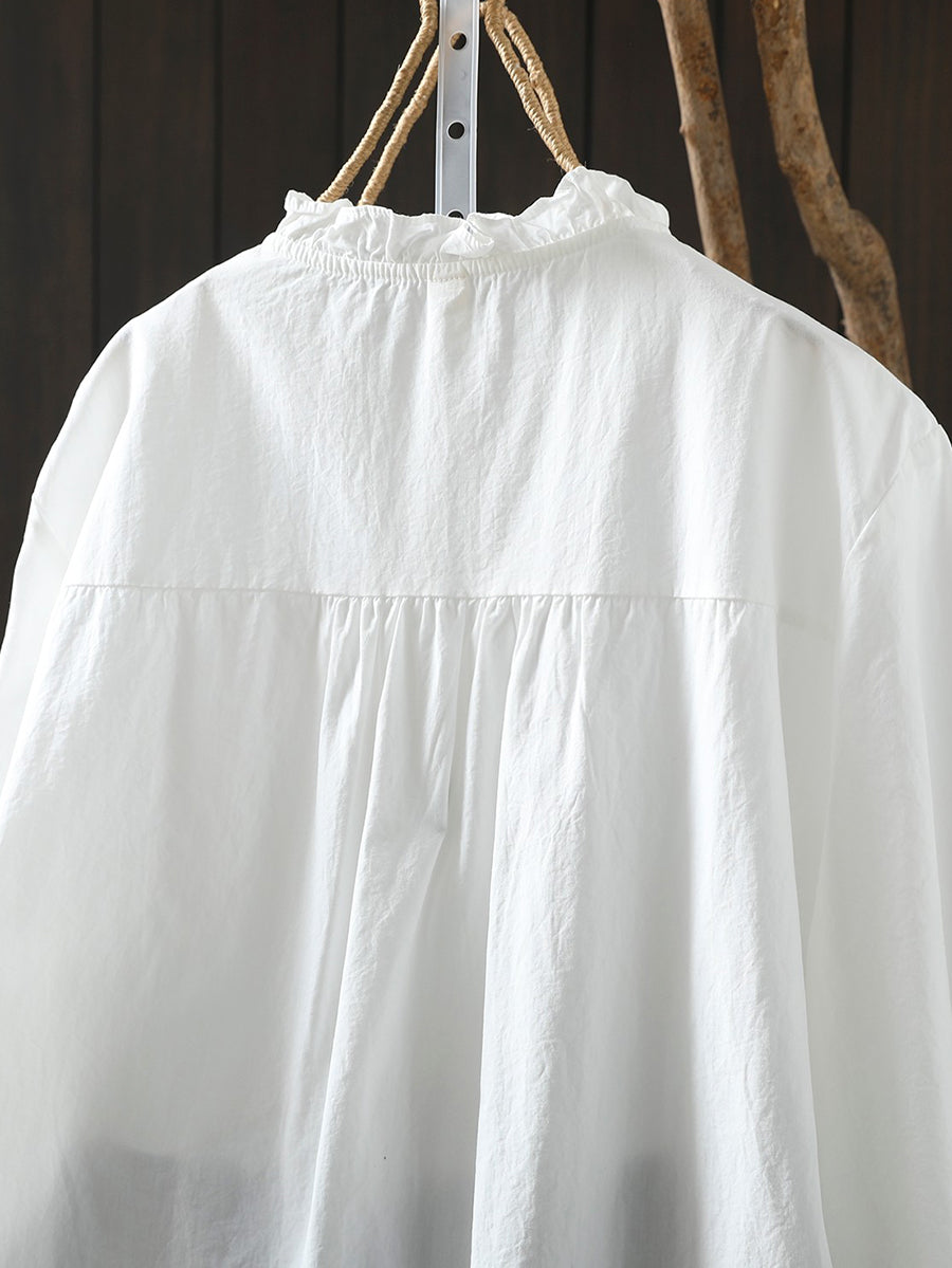 Cămașă de primăvară pentru femei, cu guler înalt, 100% bumbac, stil artistic