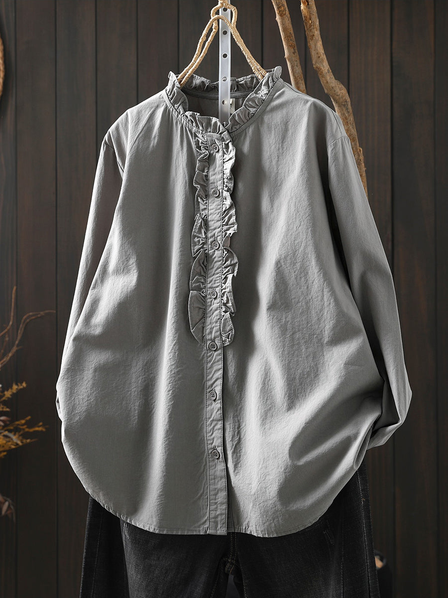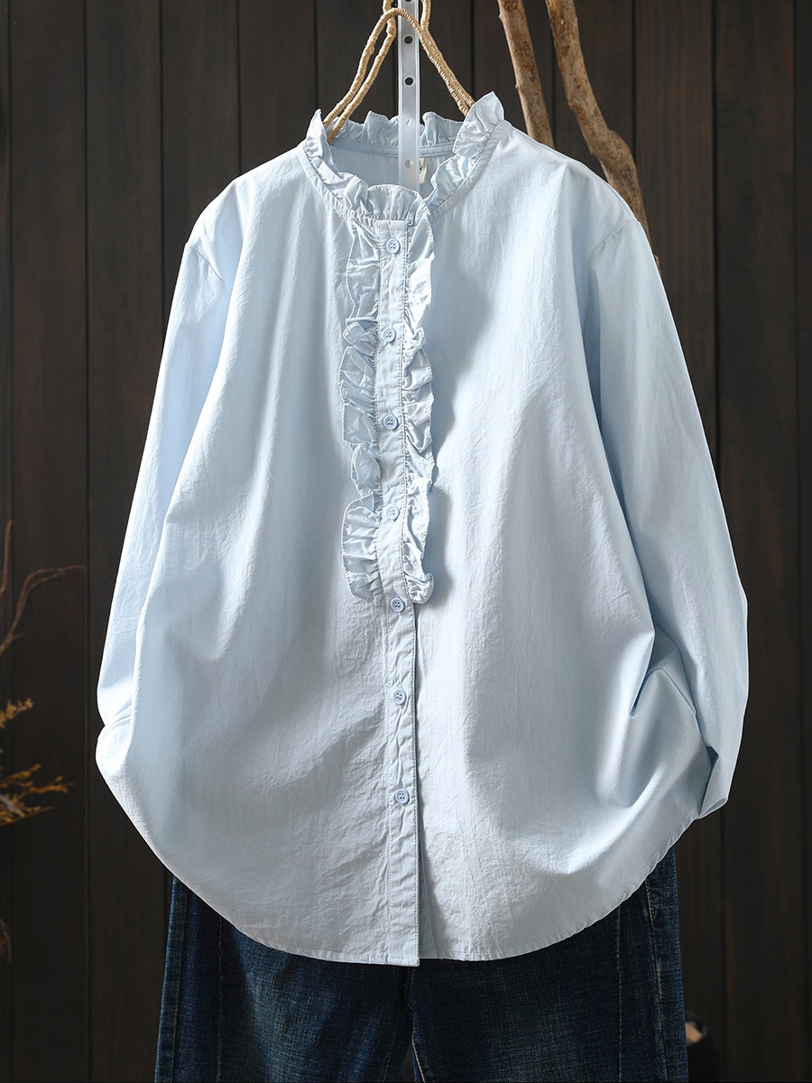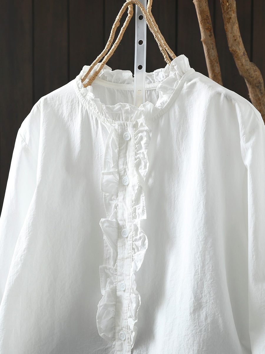 Cămașă de primăvară pentru femei, cu guler înalt, 100% bumbac, stil artistic