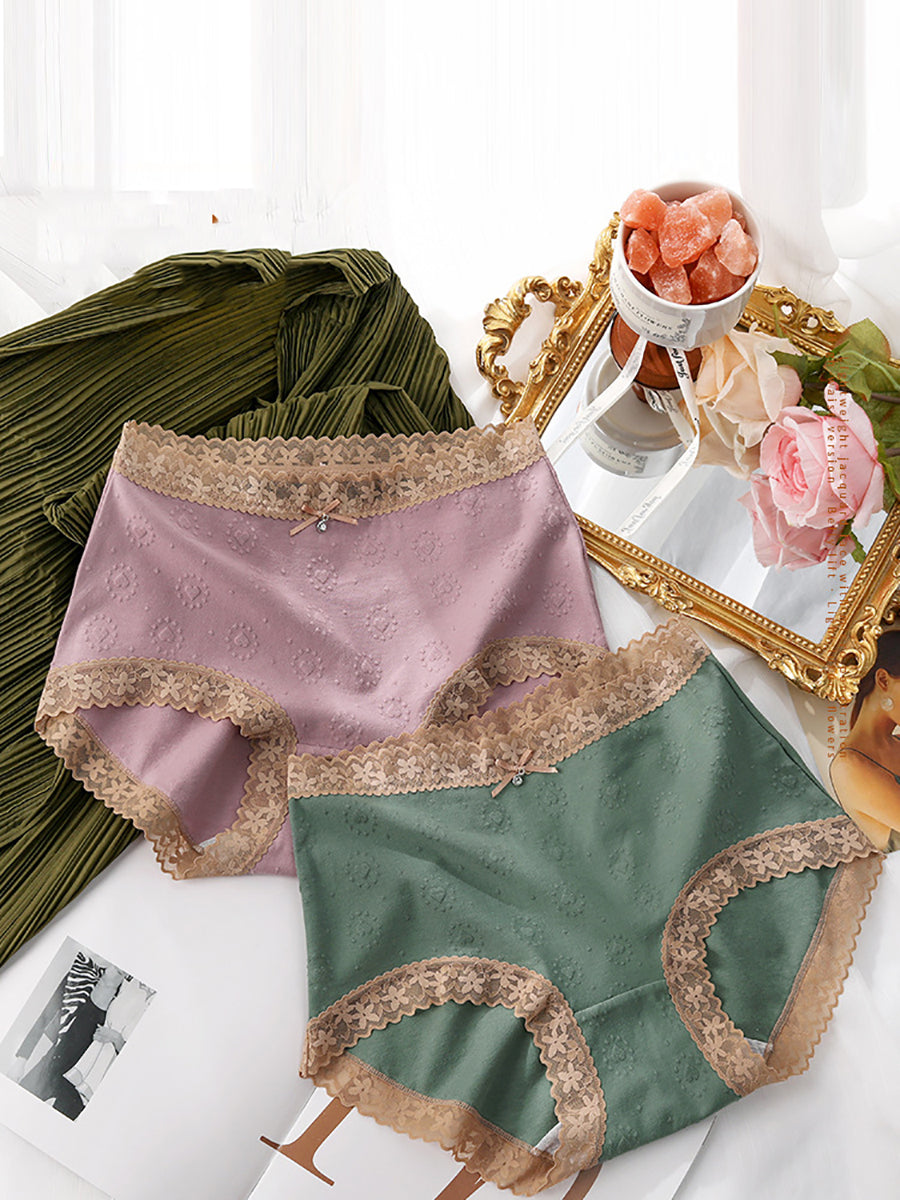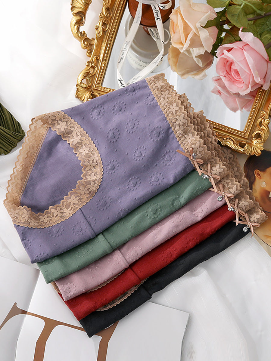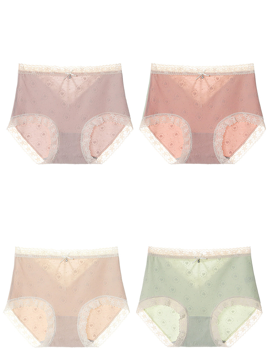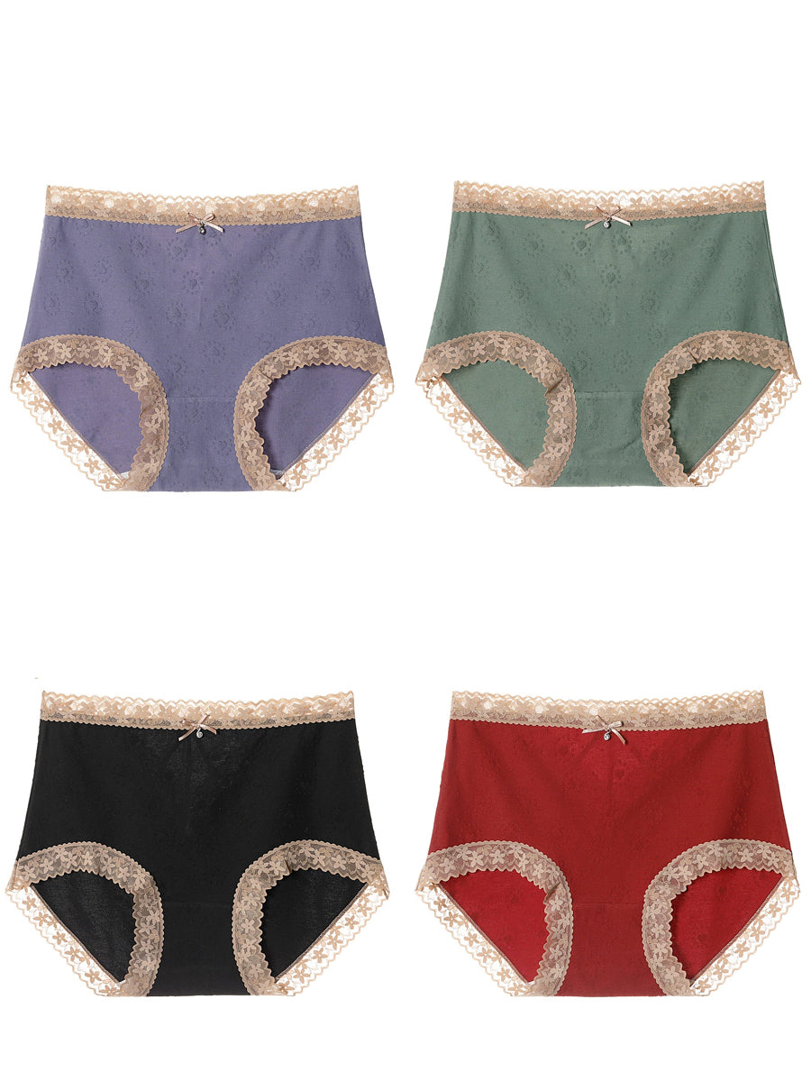 Lenjerie intimă cu talie înaltă, 4 piese, din dantelă artistică, pentru femei