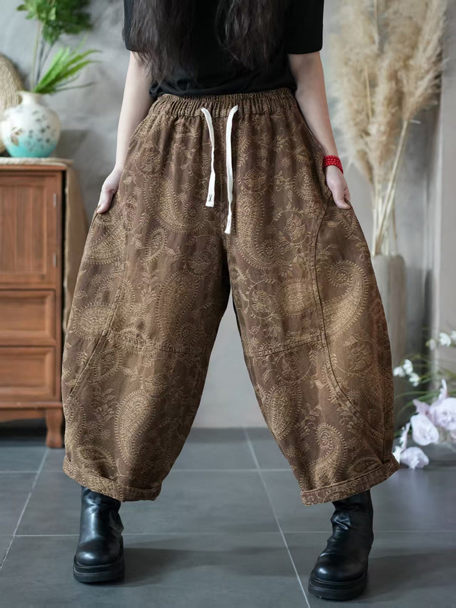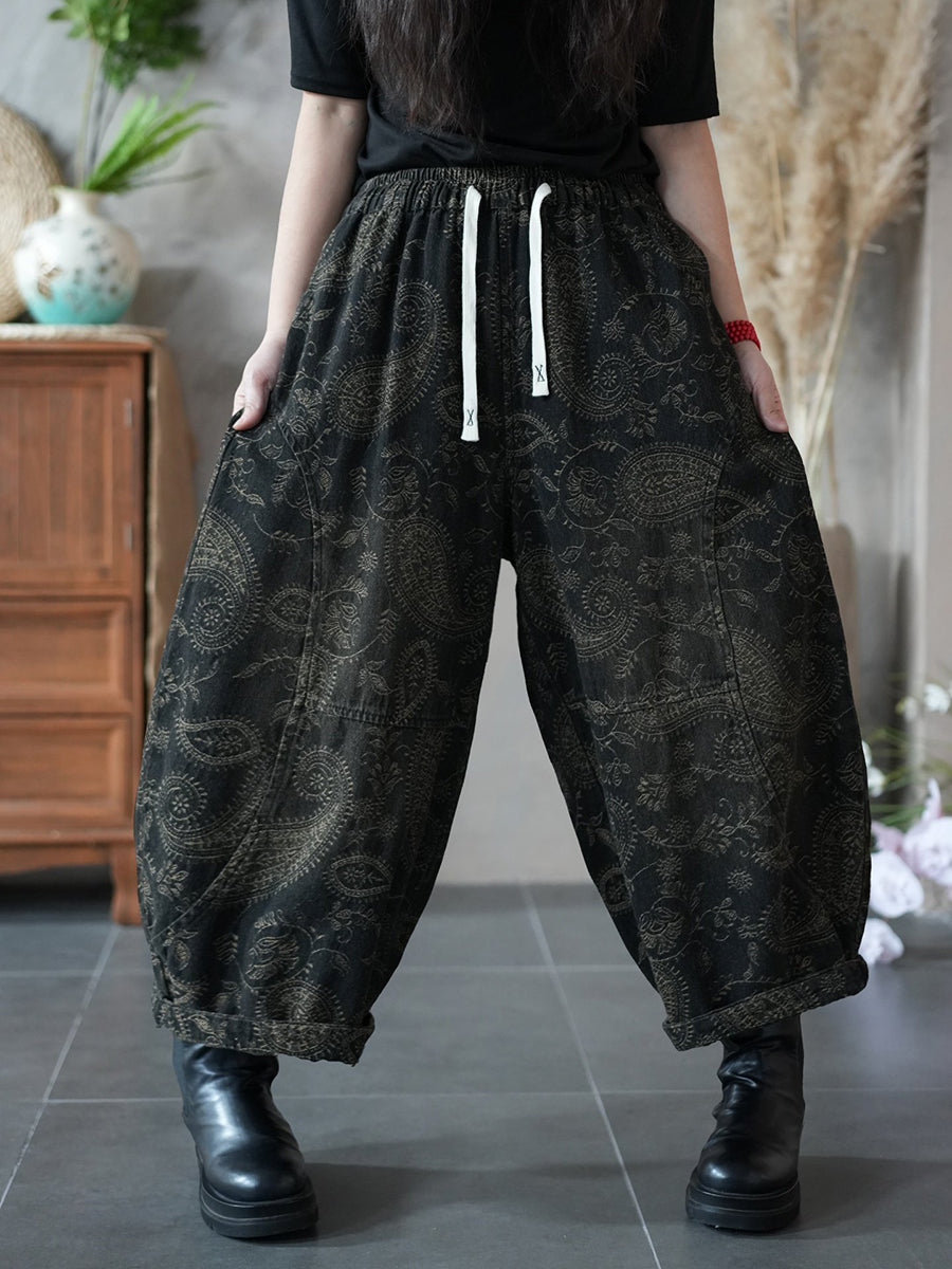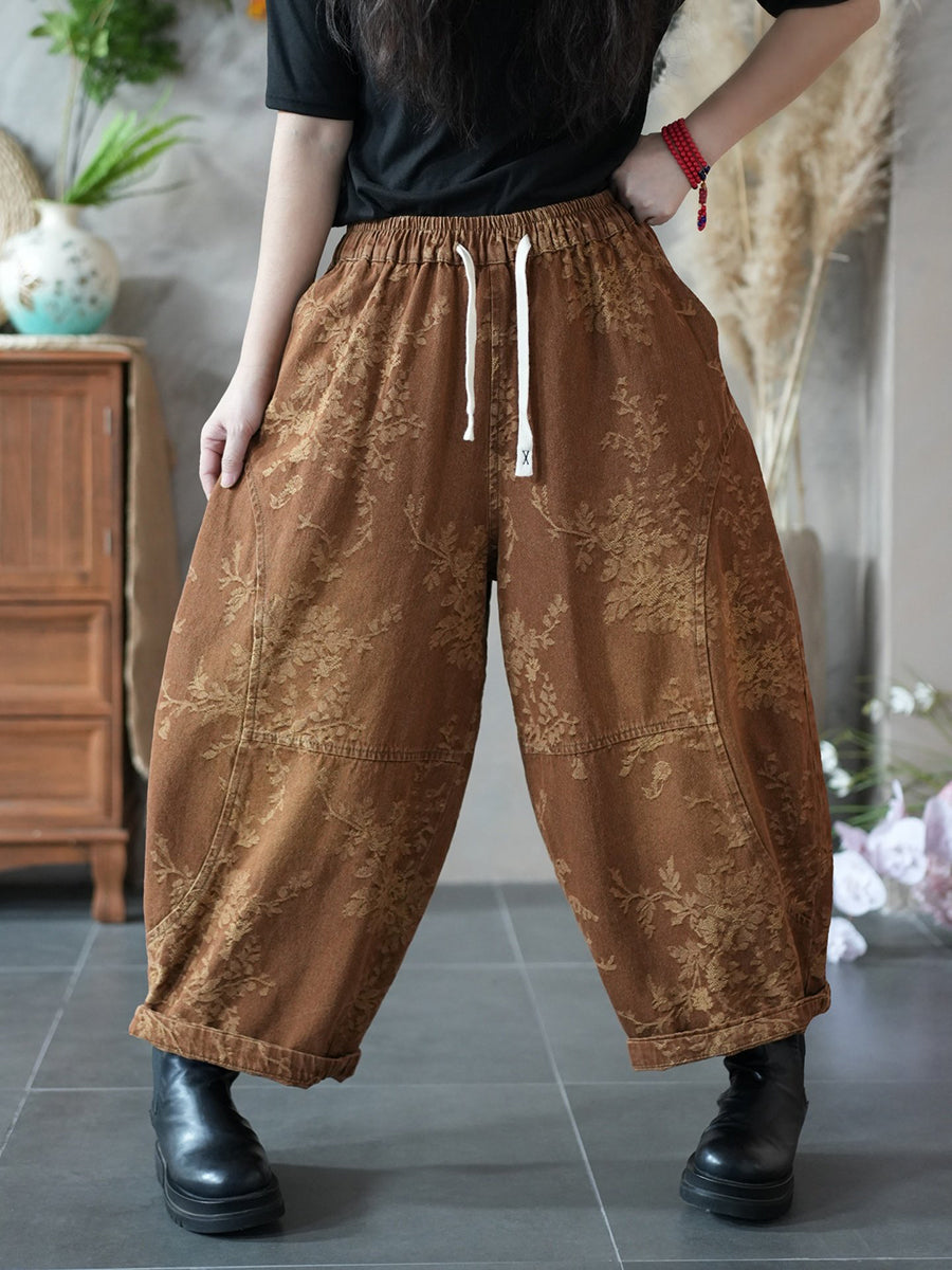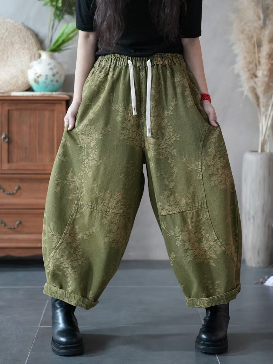 Pantaloni harem din denim cu flori artistice pentru femei, de primăvară