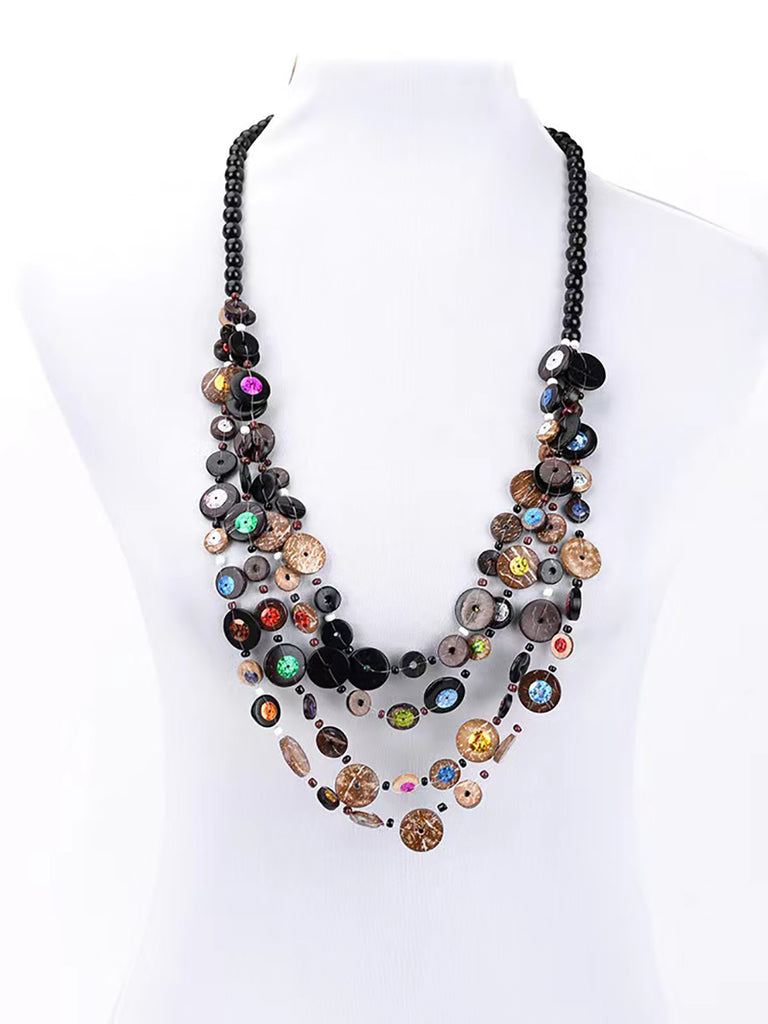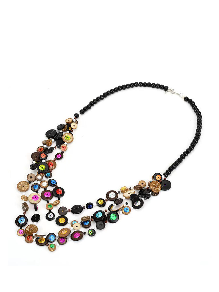 Colier multistrat cu mărgele cu nasturi din lemn Bohemia