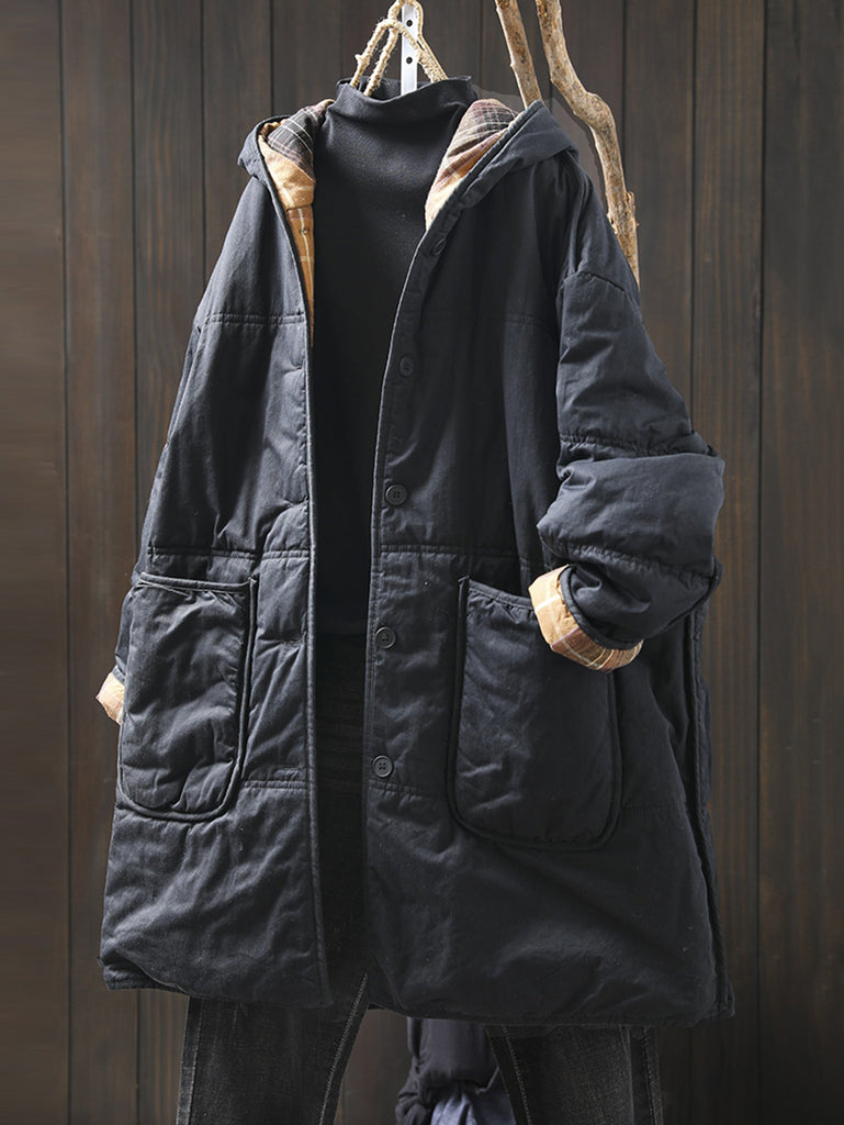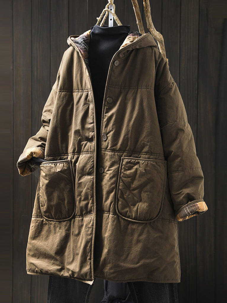 Palton căptușit cu buzunar pliat, iarnă, vintage pentru femei