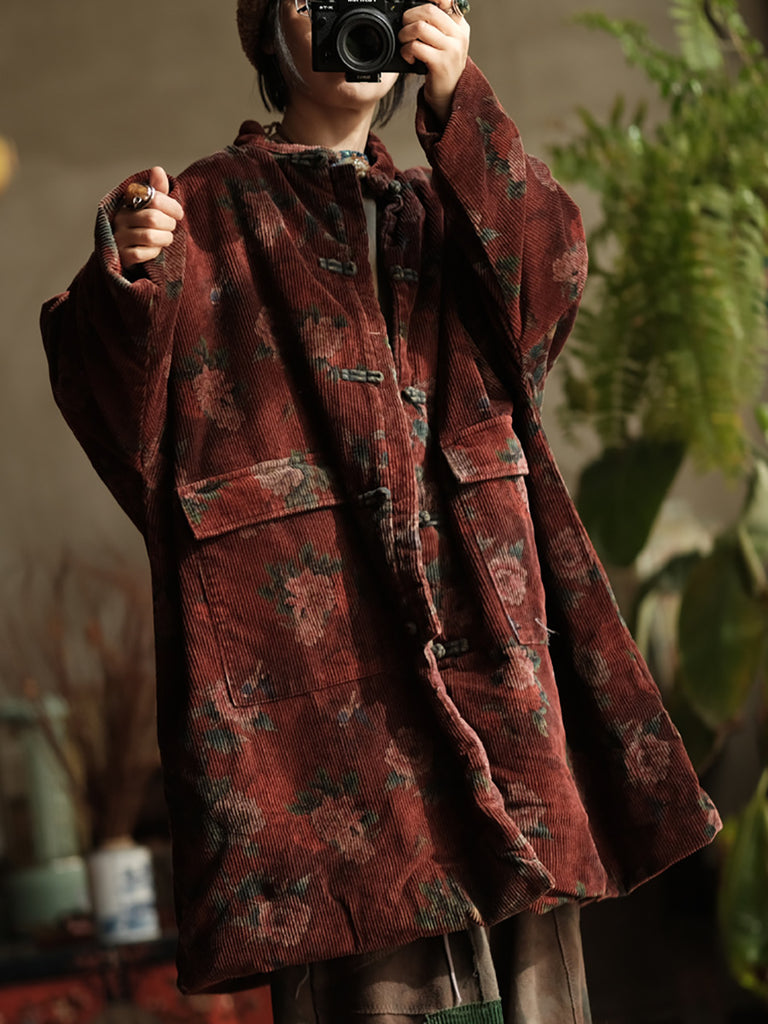 Palton din bumbac cu nasturi din flori de toamnă de epocă