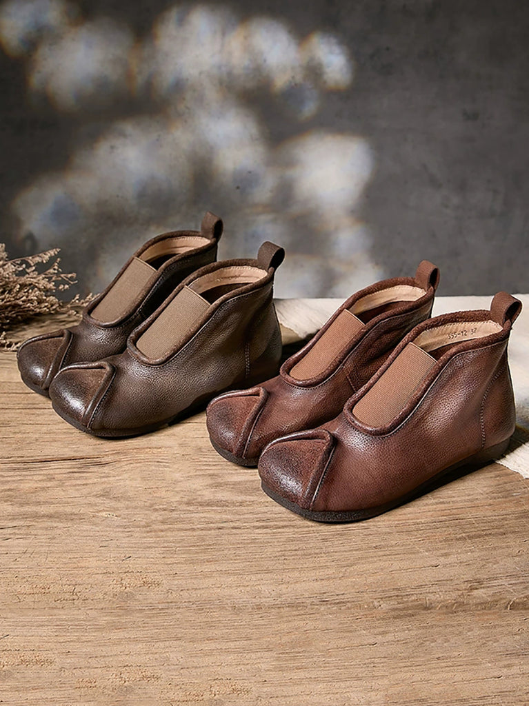 BUYKUD Cizme scurte vintage pentru femei din piele naturală lucrate manual