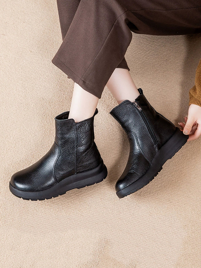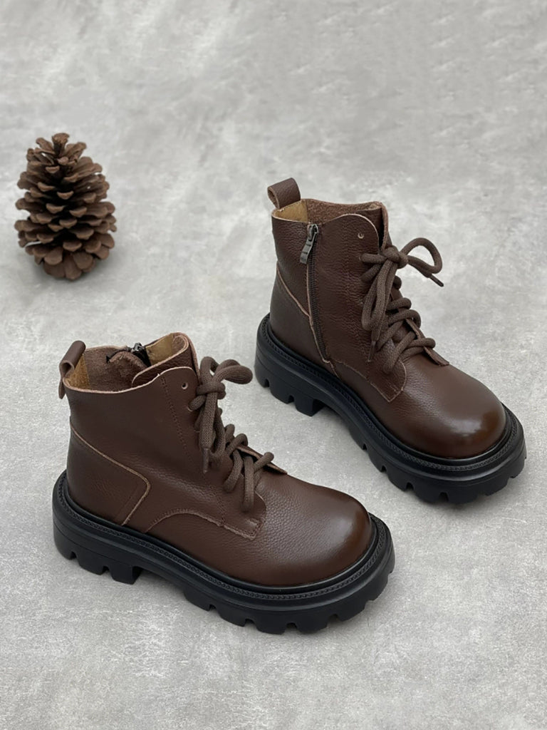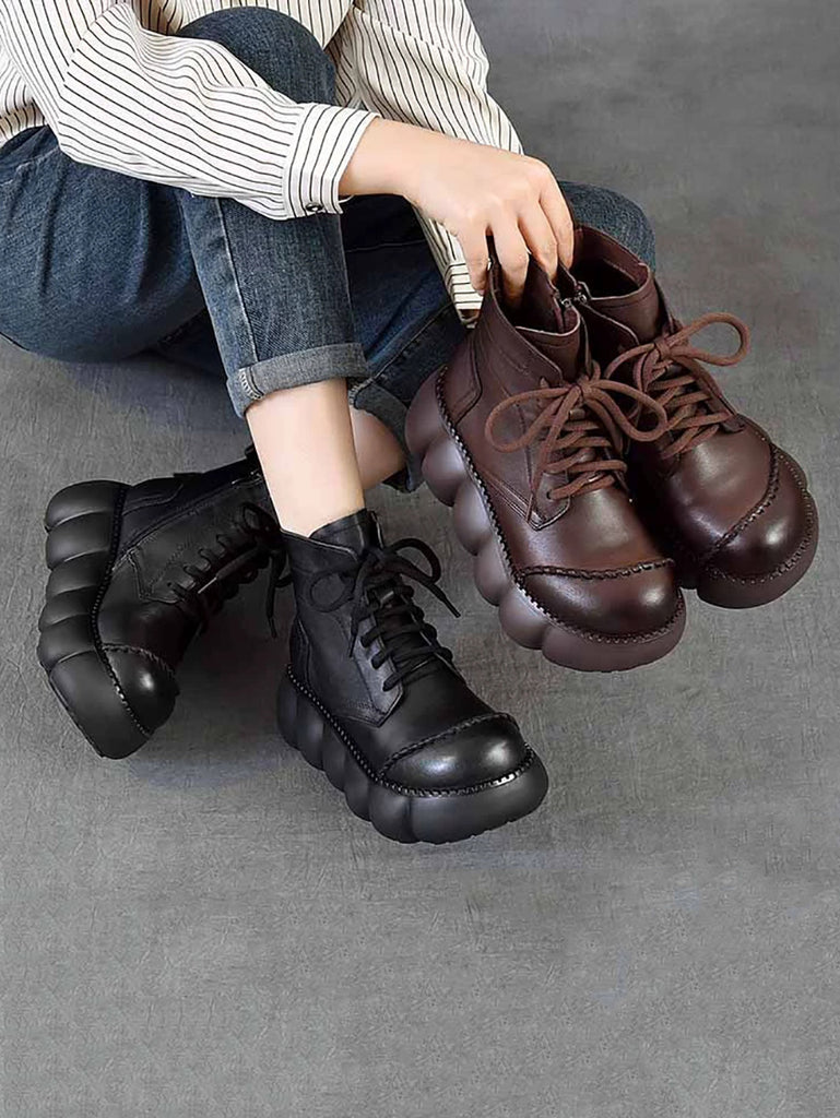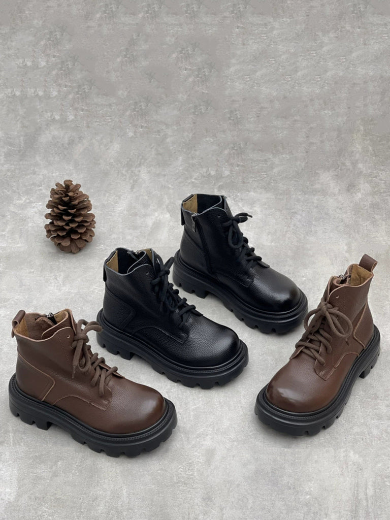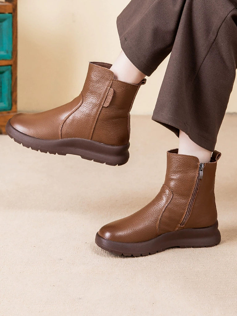 Women Vintage Genuine Leather Strap Low Heel Boots