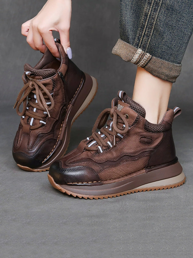 Pantofi cu platformă din piele naturală vintage pentru femei