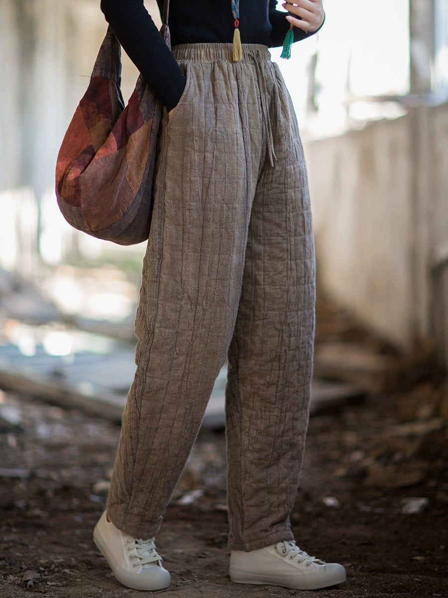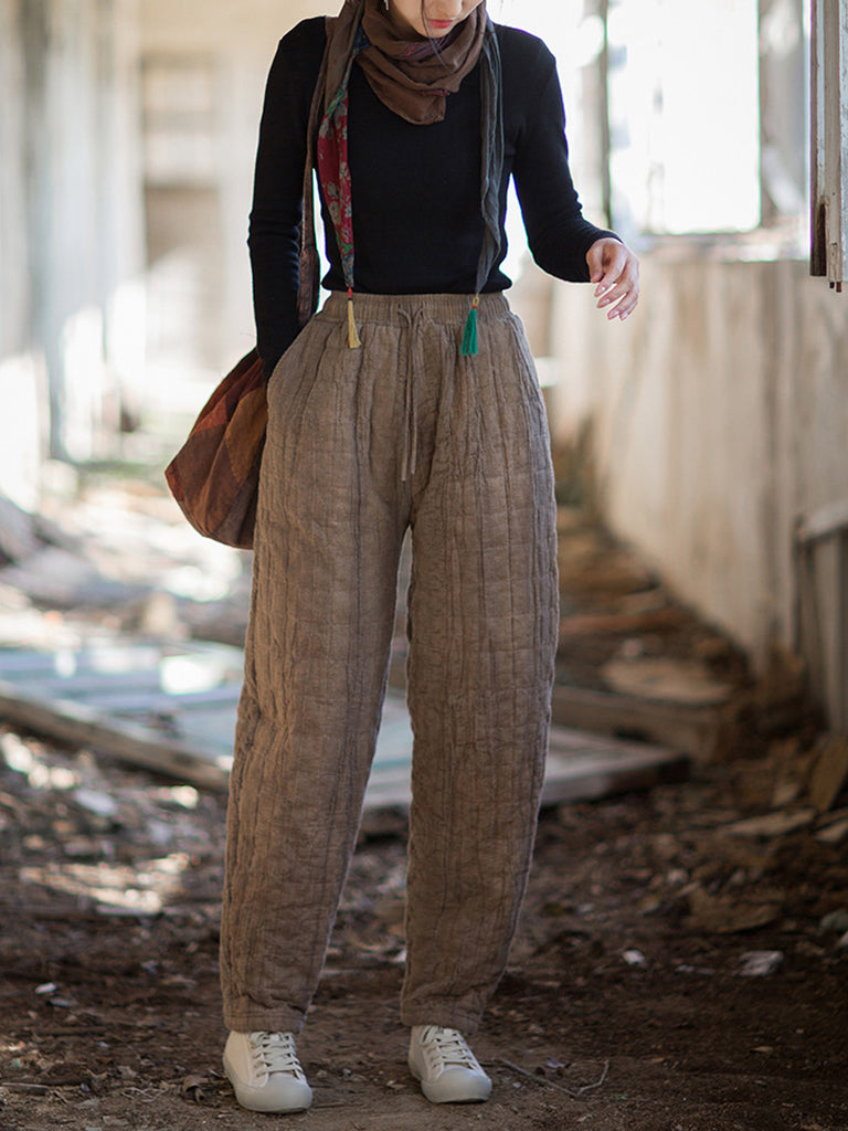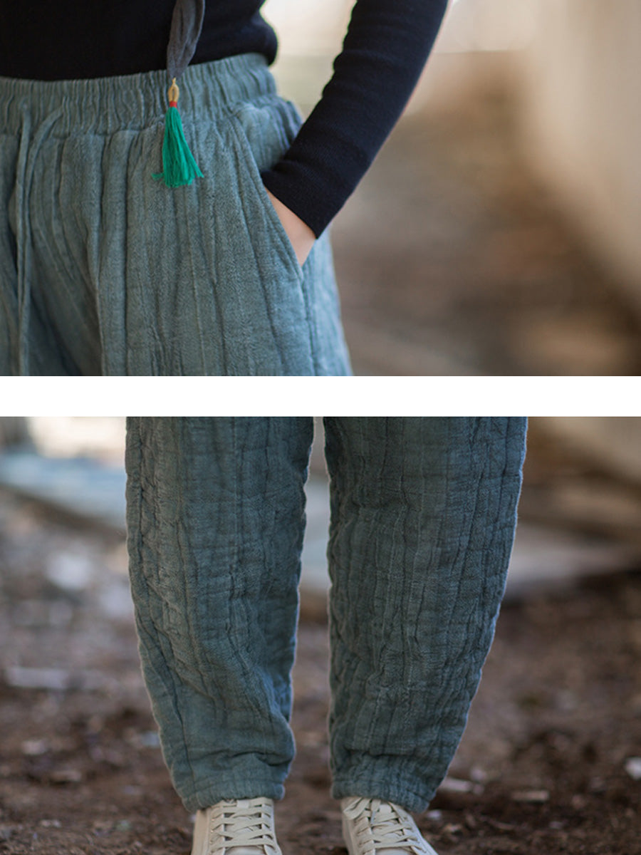 Pantaloni harem căptușiți cu culoare pură retro de iarnă pentru femei