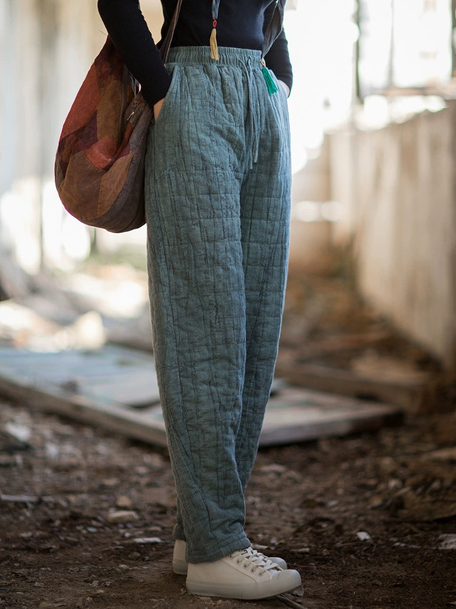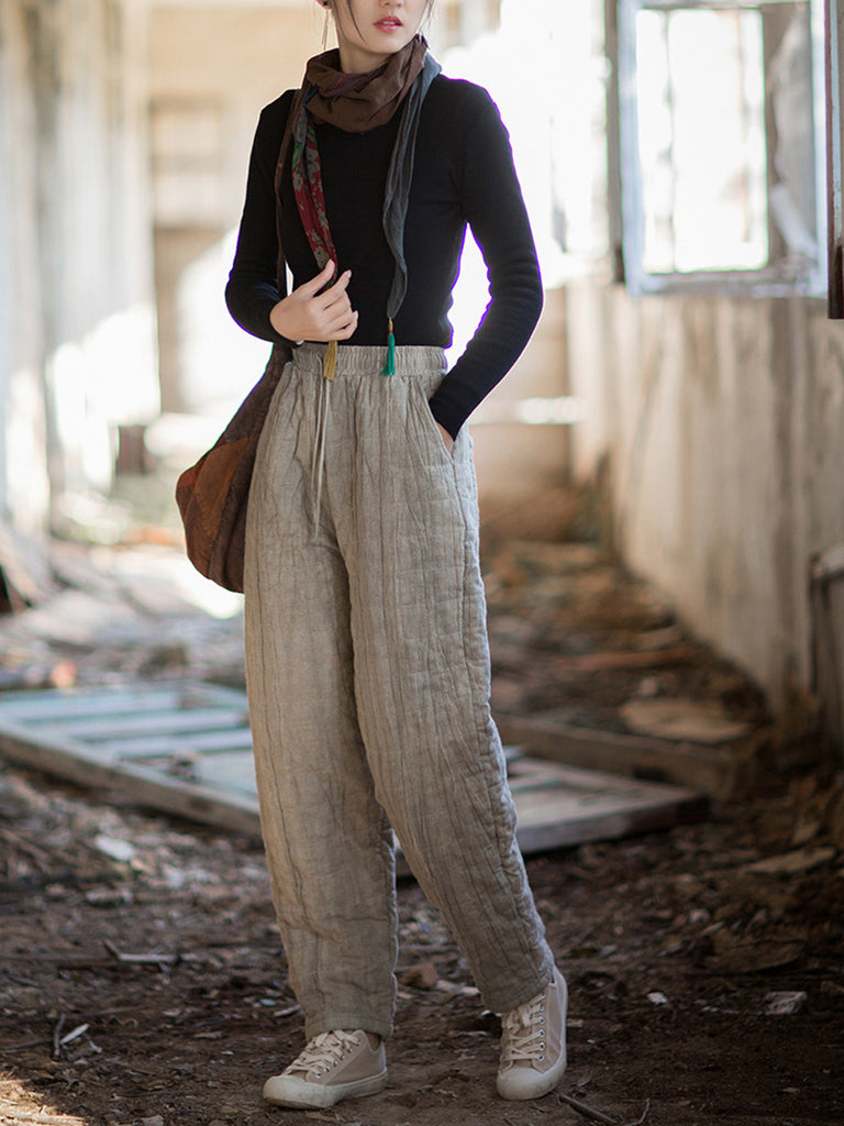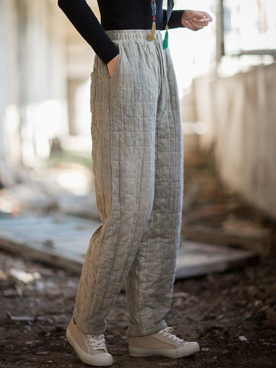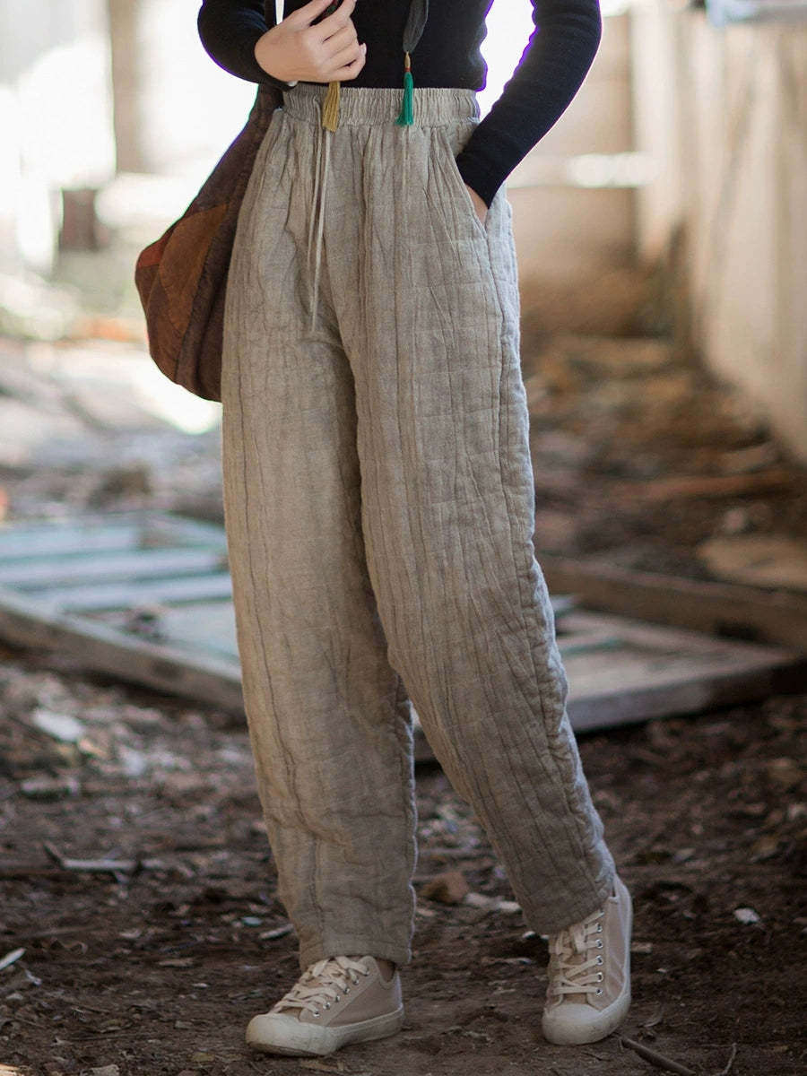Pantaloni harem căptușiți cu culoare pură retro de iarnă pentru femei