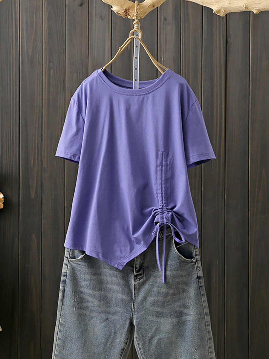 Tricou de vară pentru femei, cu guler O, din bumbac, cu model artistic, neregulat