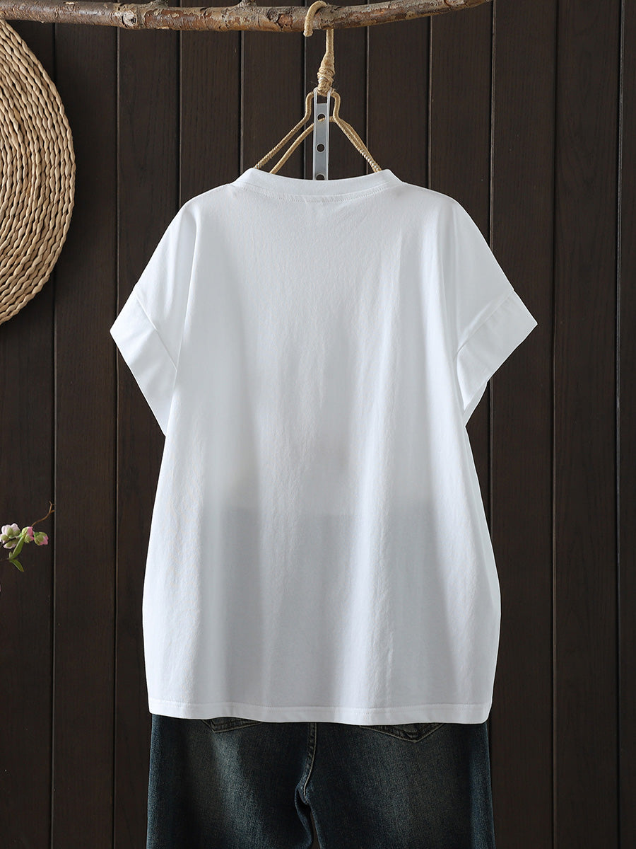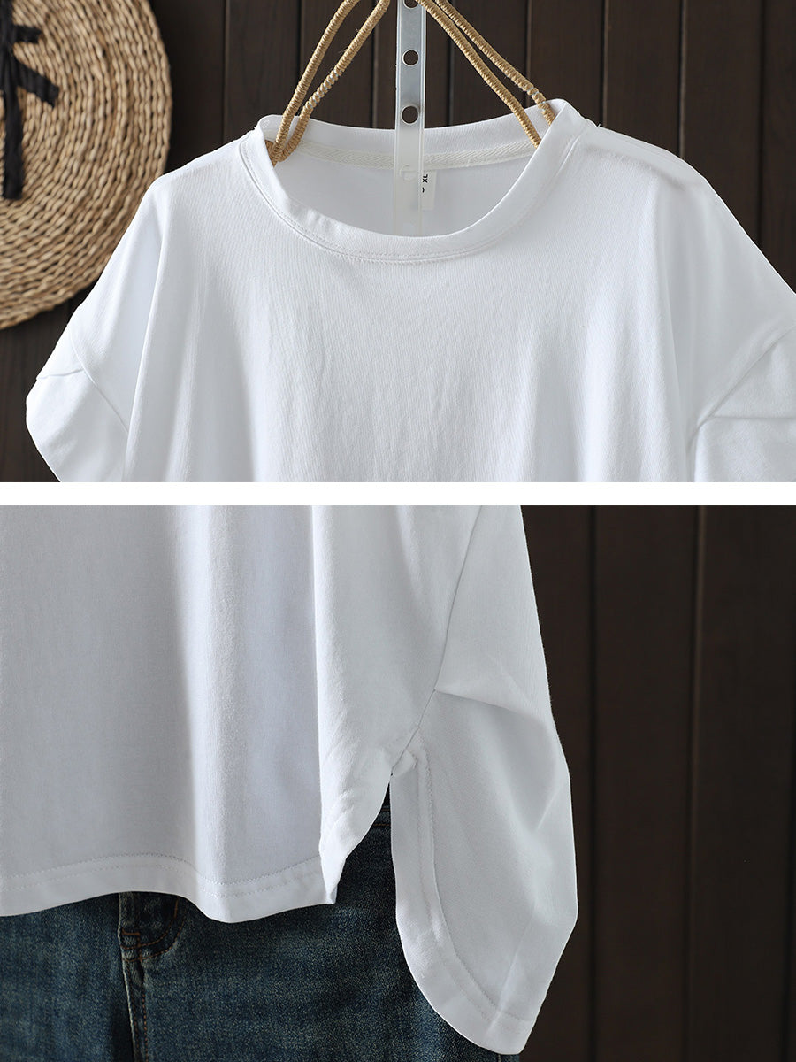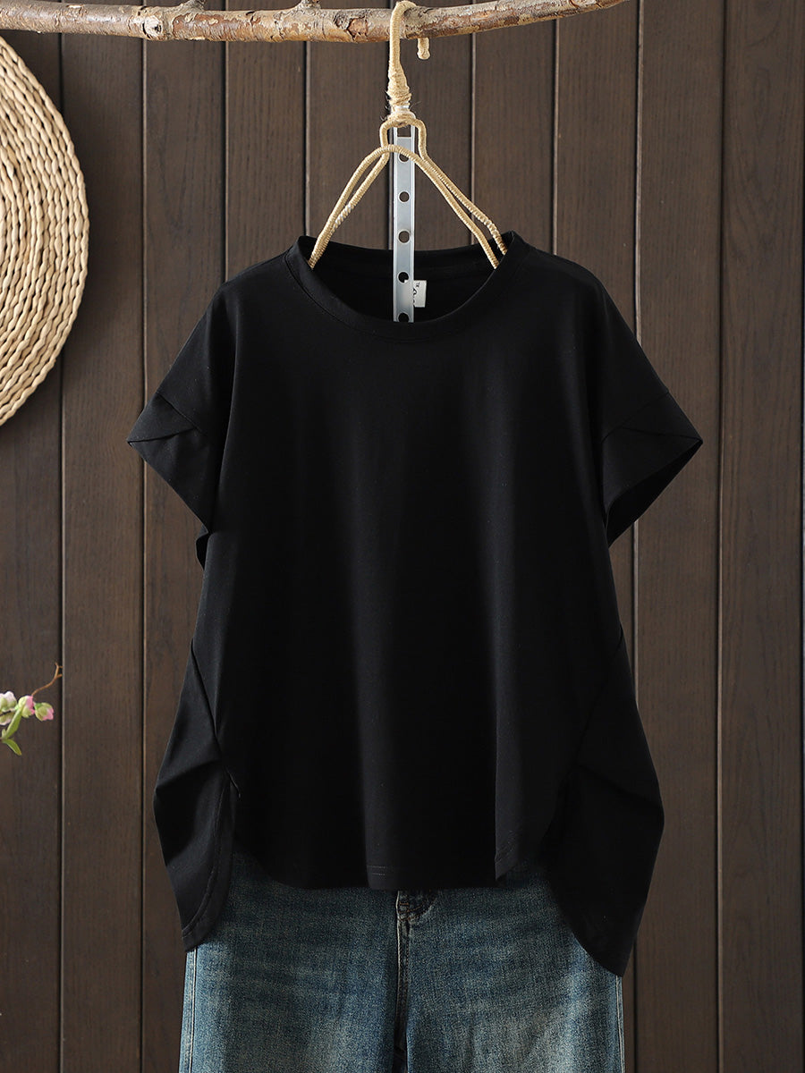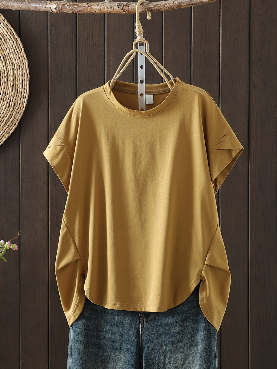 Tricou de vară casual pentru femei, culoare pură, cu guler în O