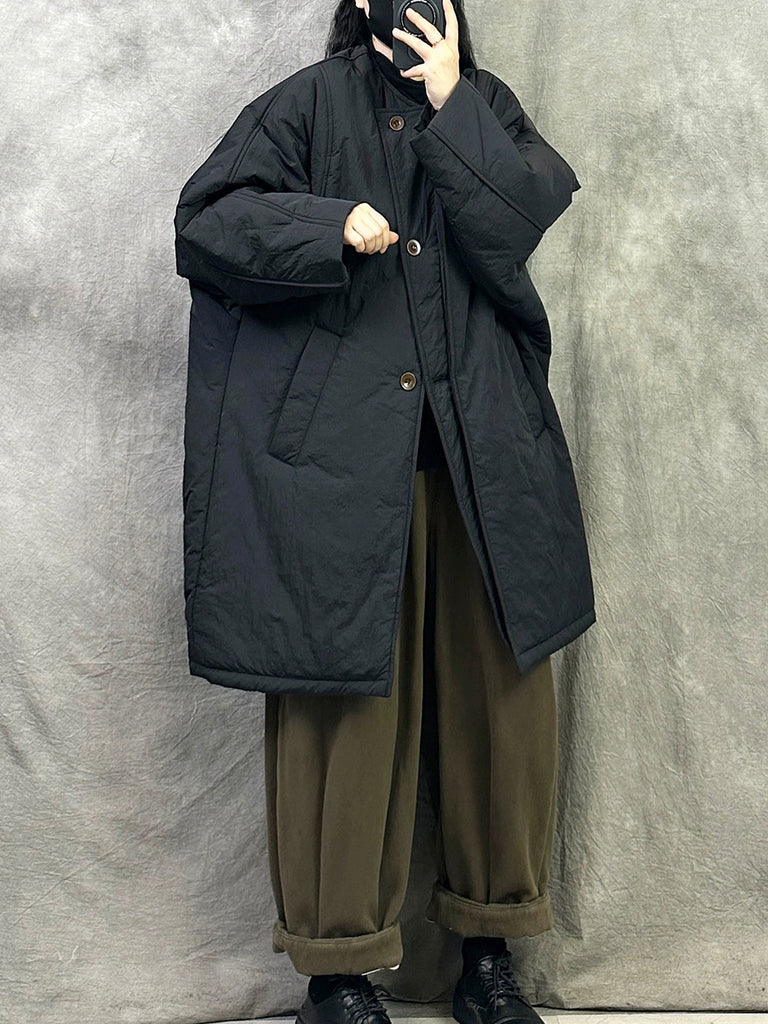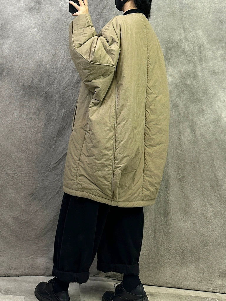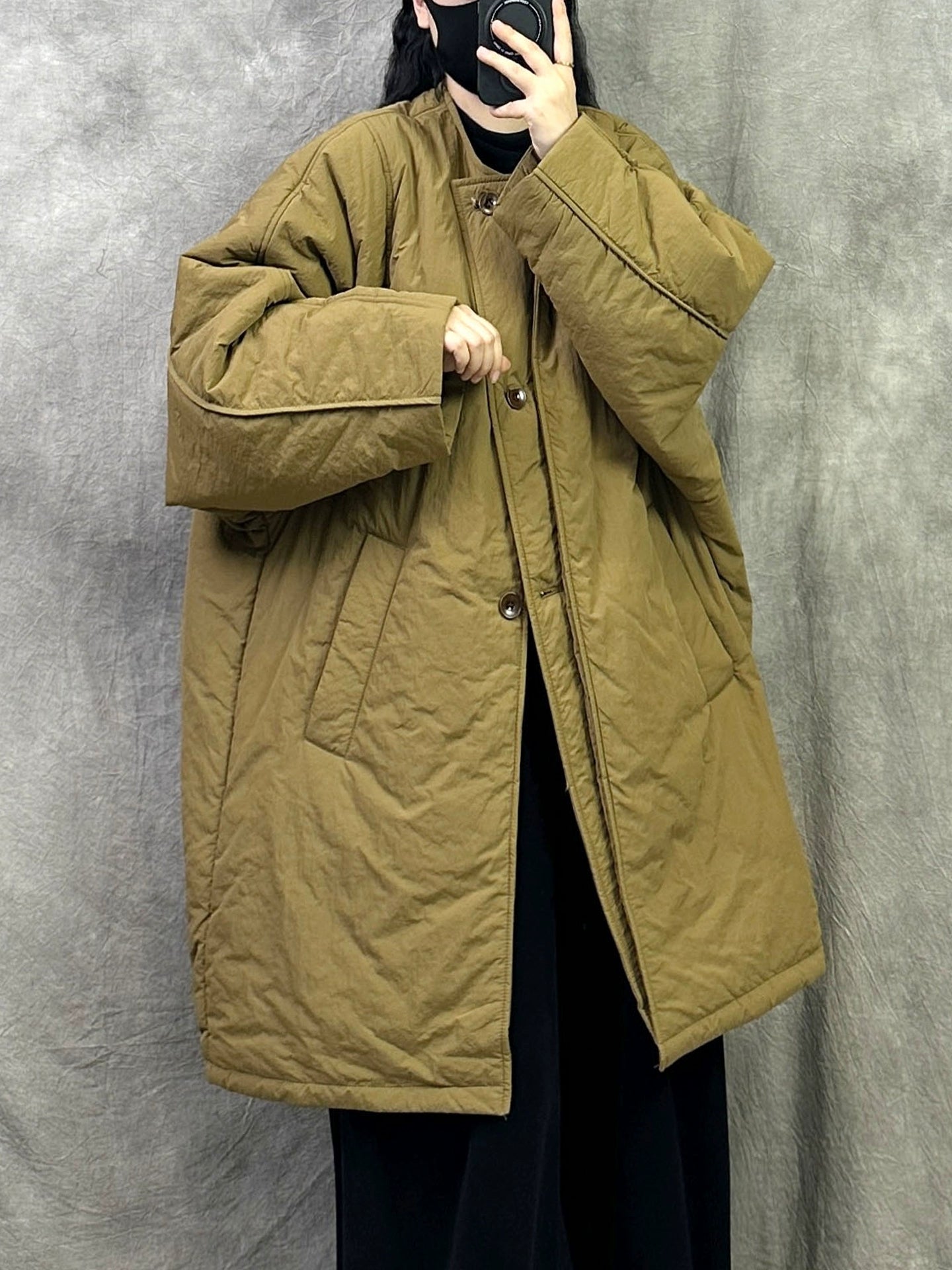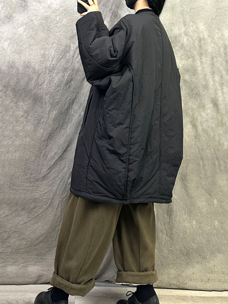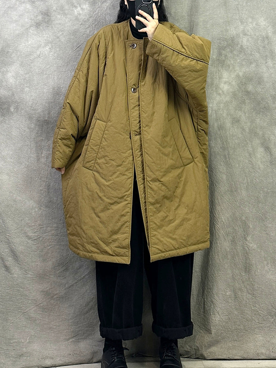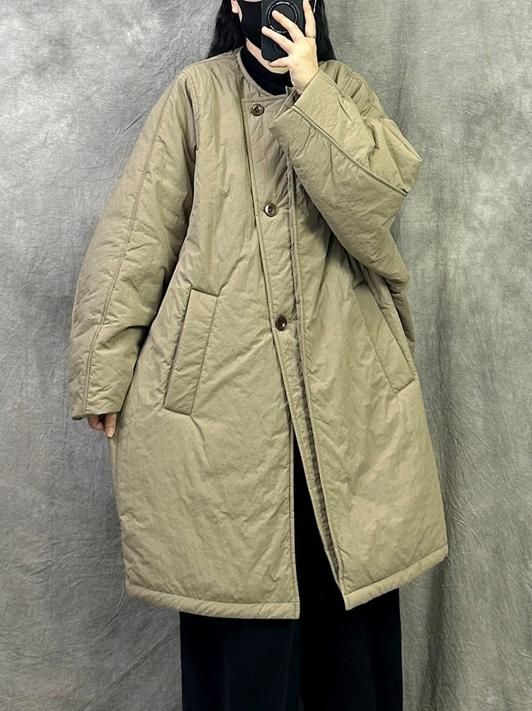 Palton de iarnă casual pentru femei, culoare pură, cu guler în O
