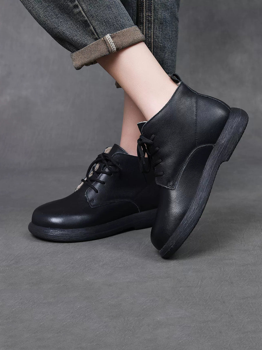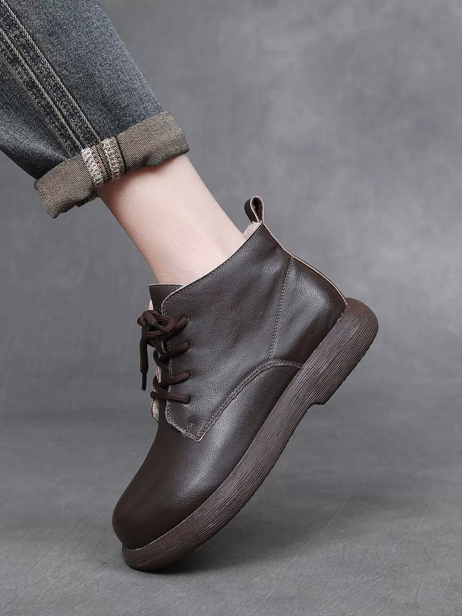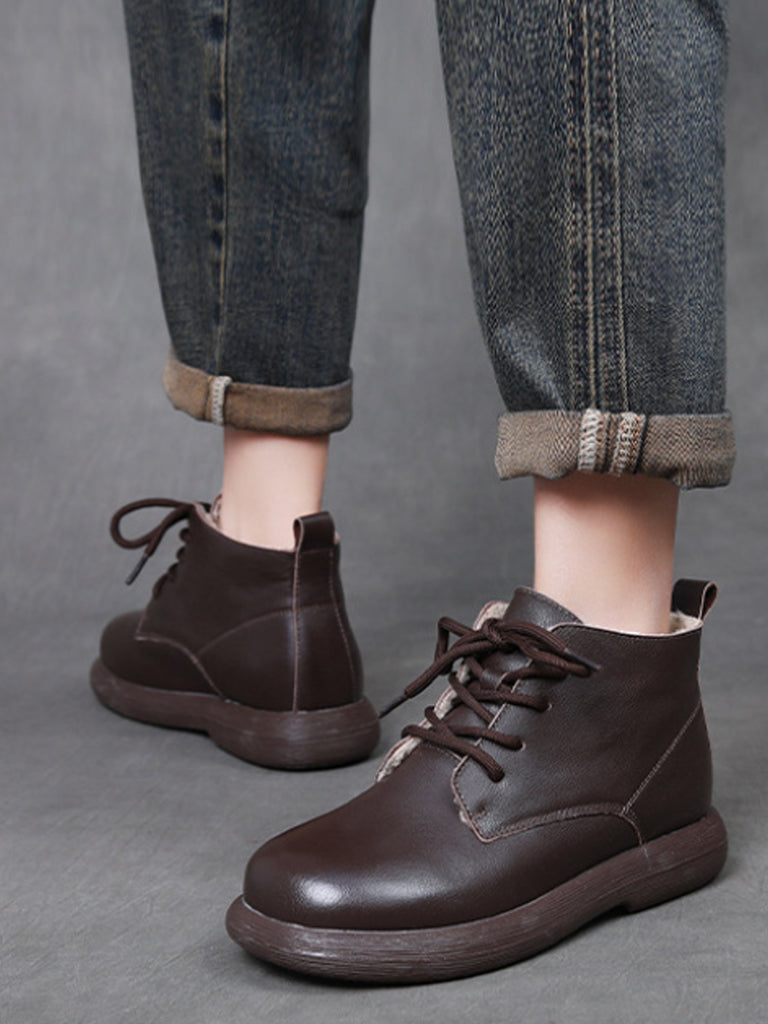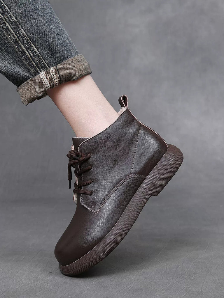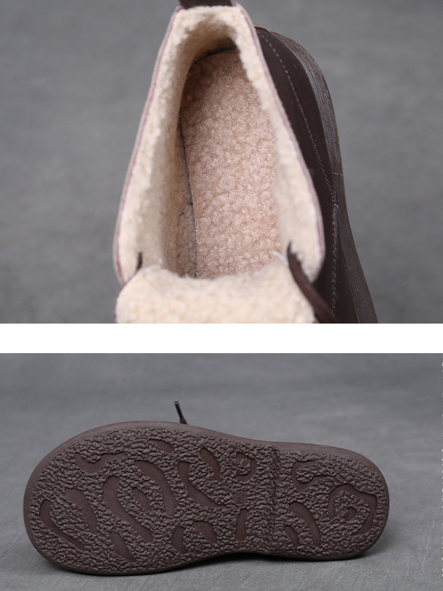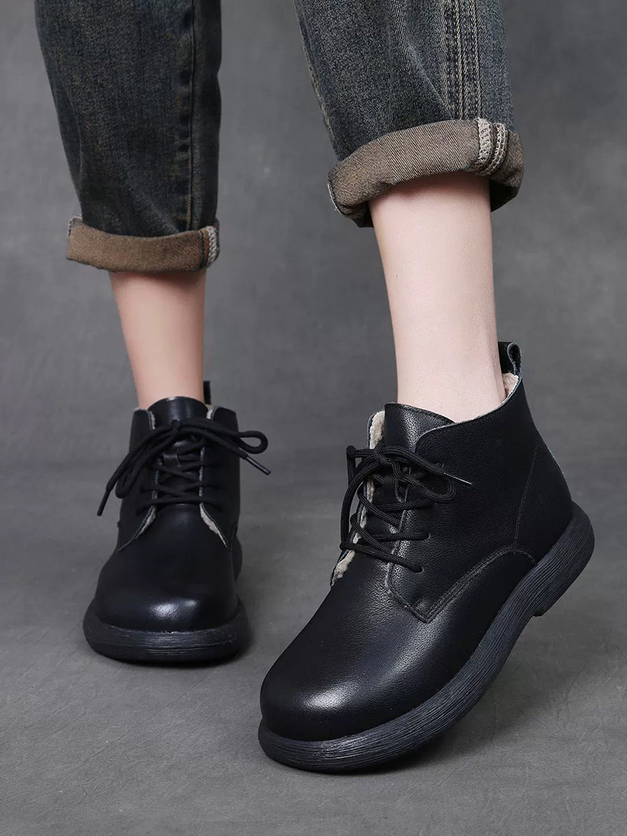 Cizme de iarnă pentru femei din piele de culoare pură, căptușite cu fleece