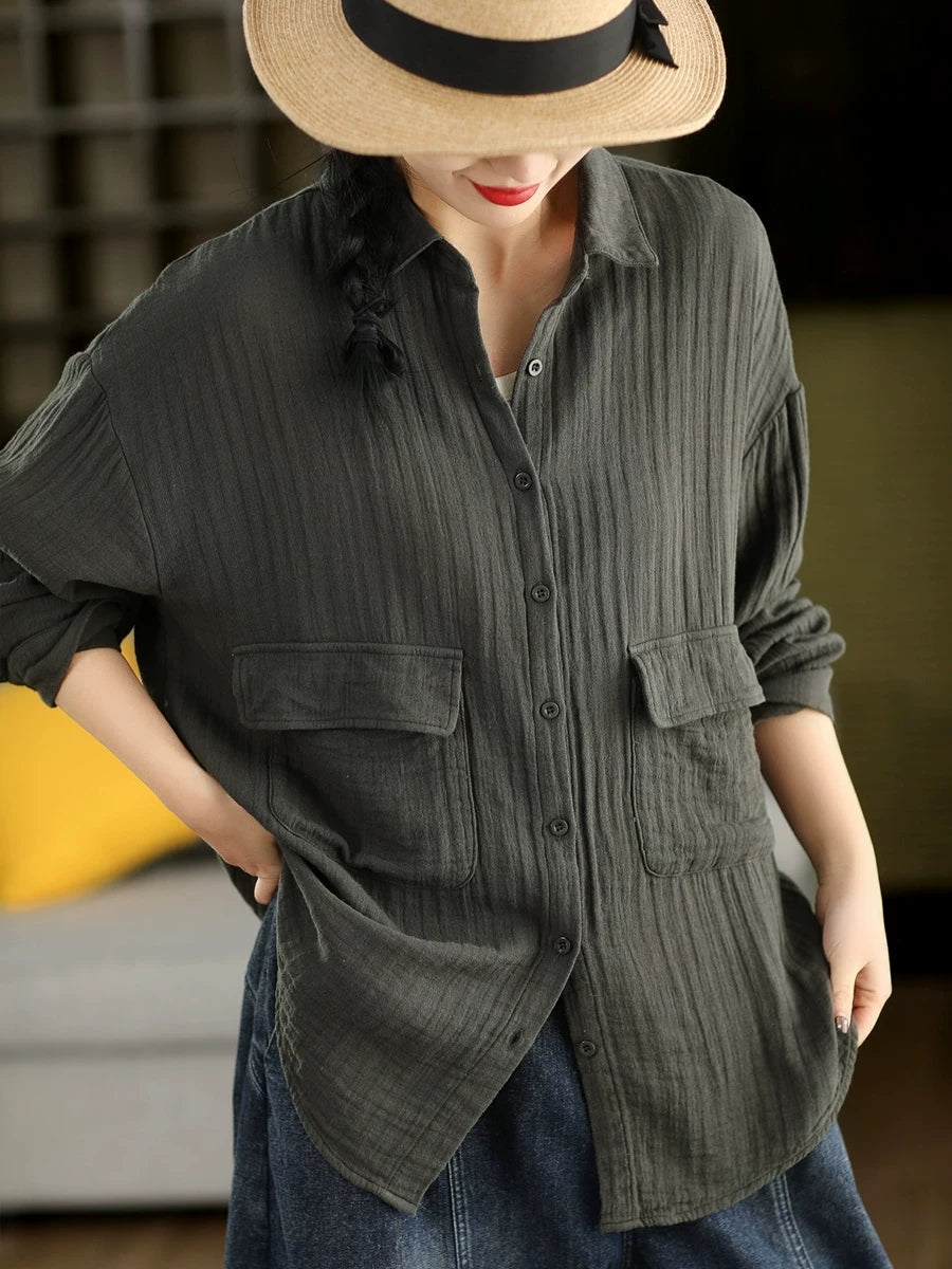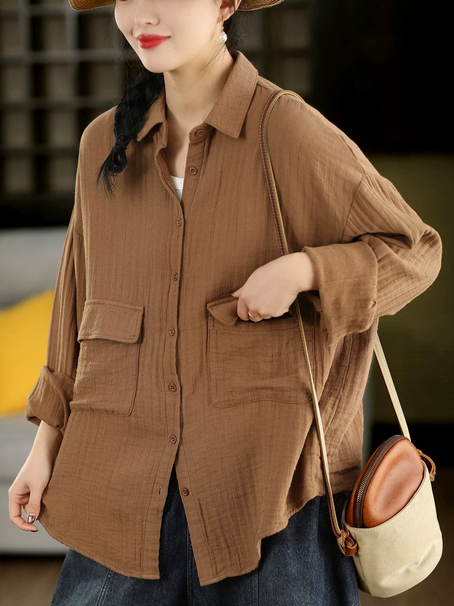 Cămașă de primăvară pentru femei, culoare pură, 100% bumbac