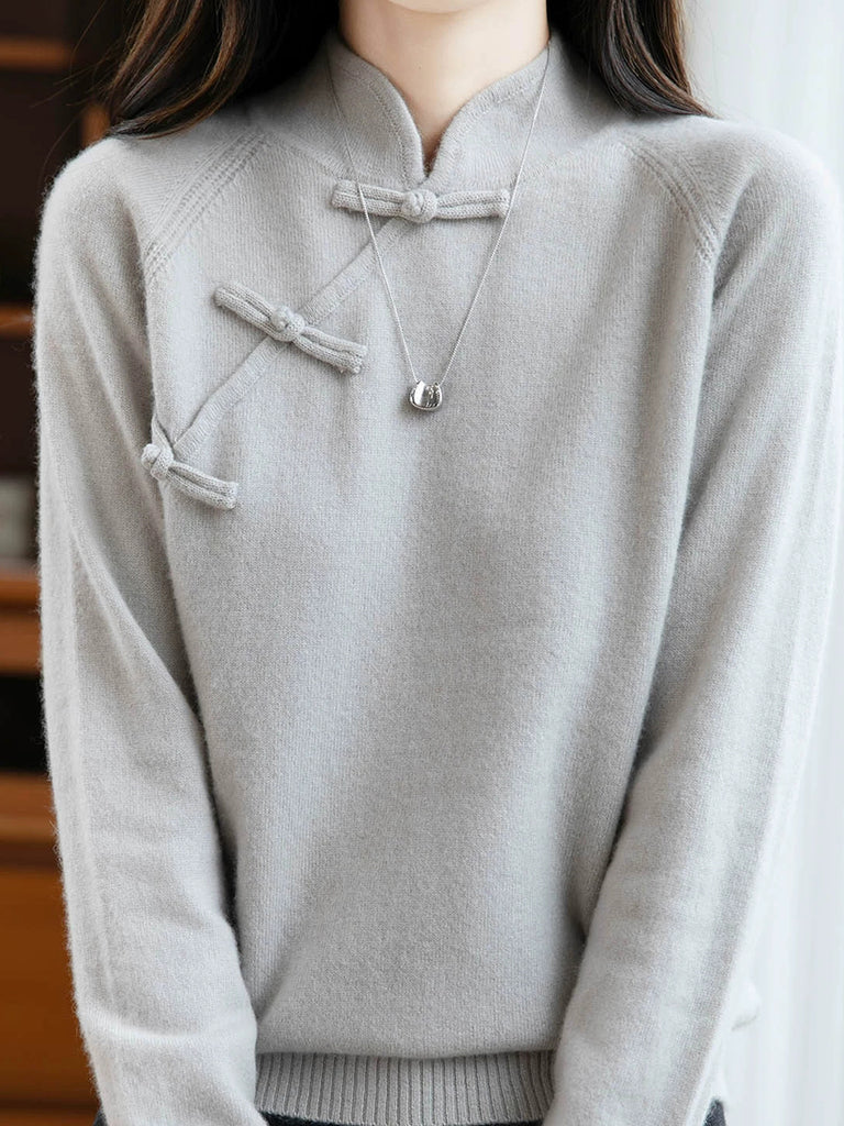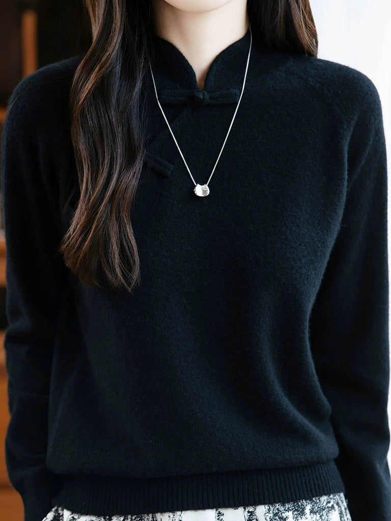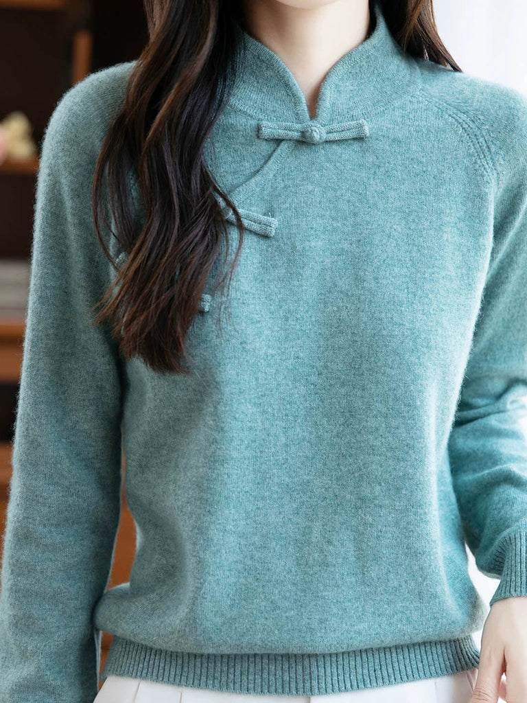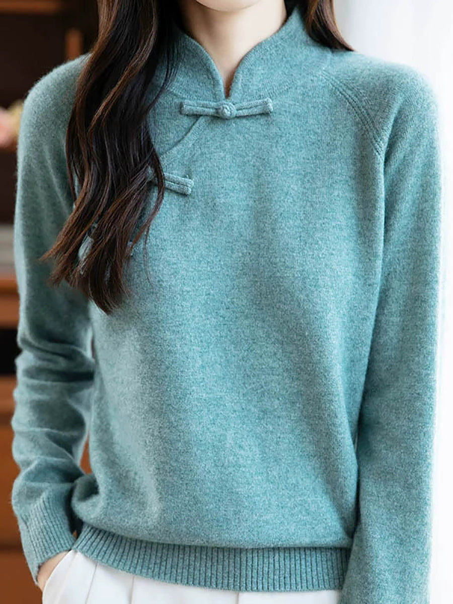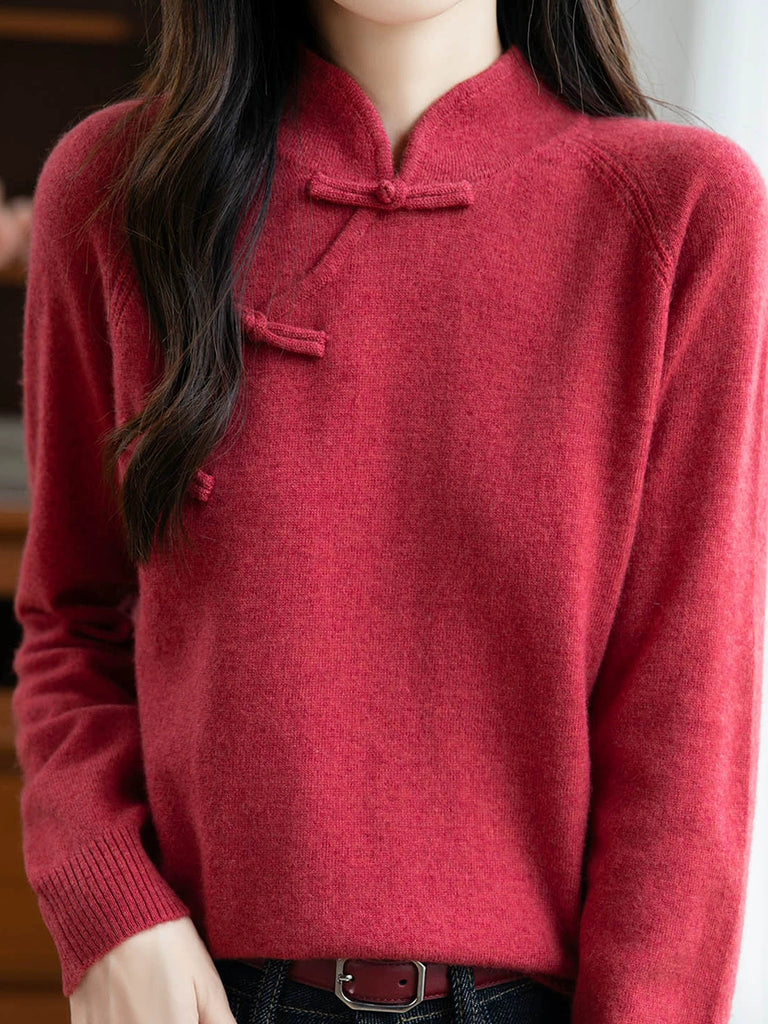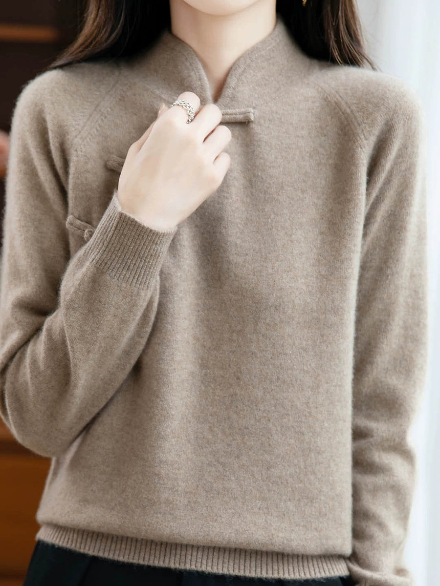 Pulover cu guler înalt în culori pure etnice pentru femei, toamnă