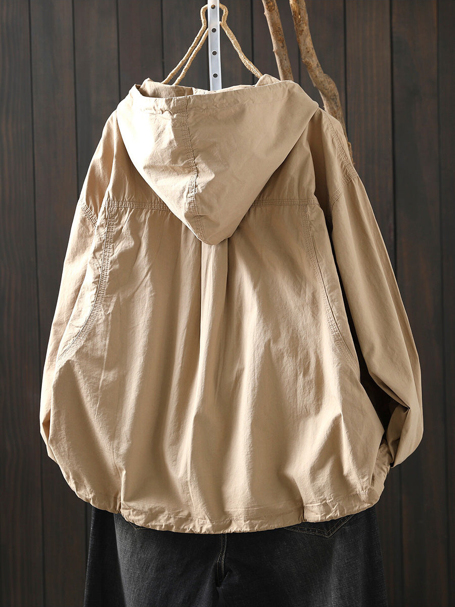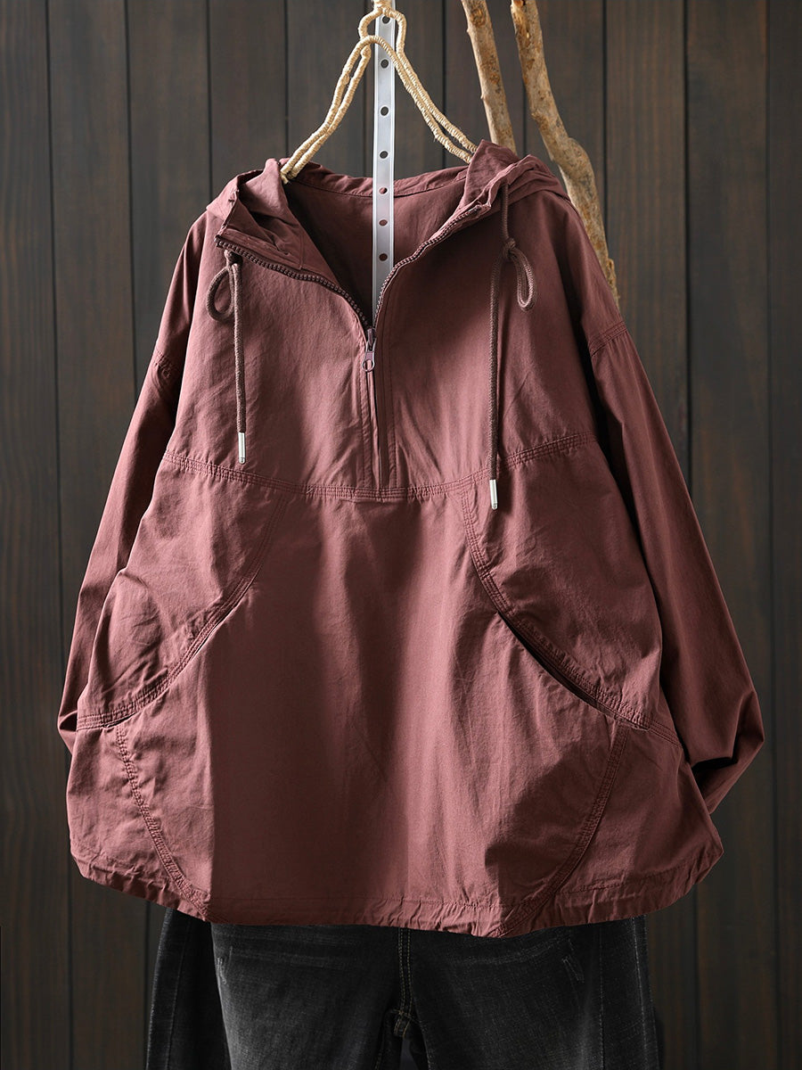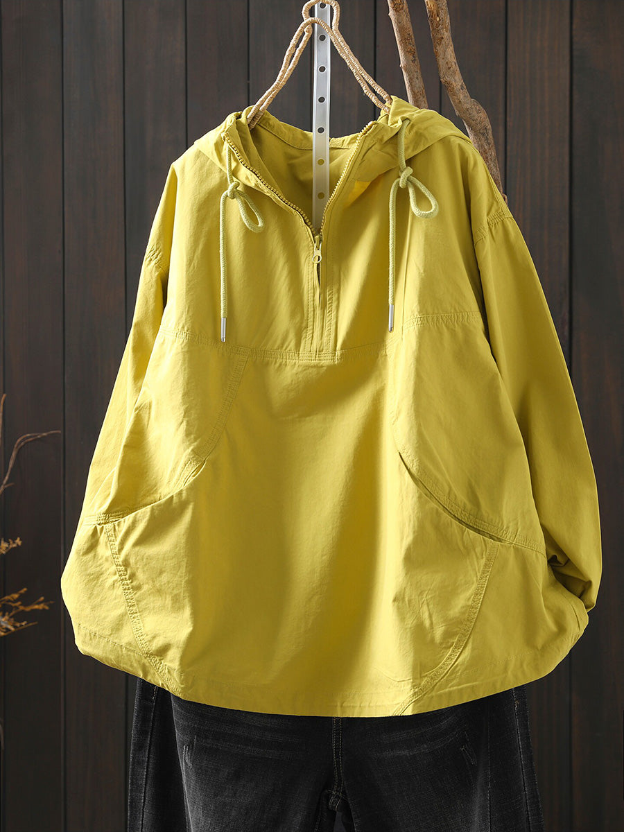 Hanorac cu glugă din bumbac pentru femei, de primăvară, cu aspect artistic, în culori pure