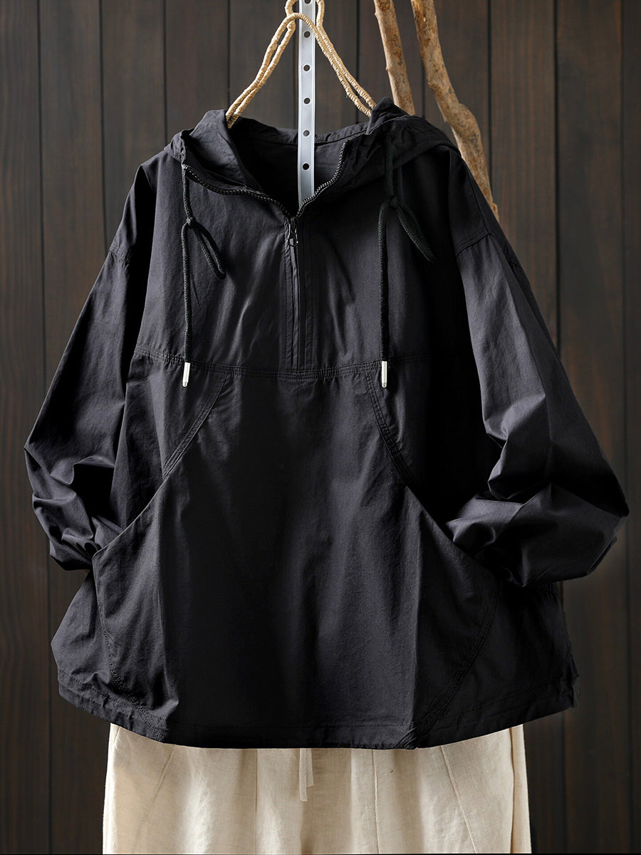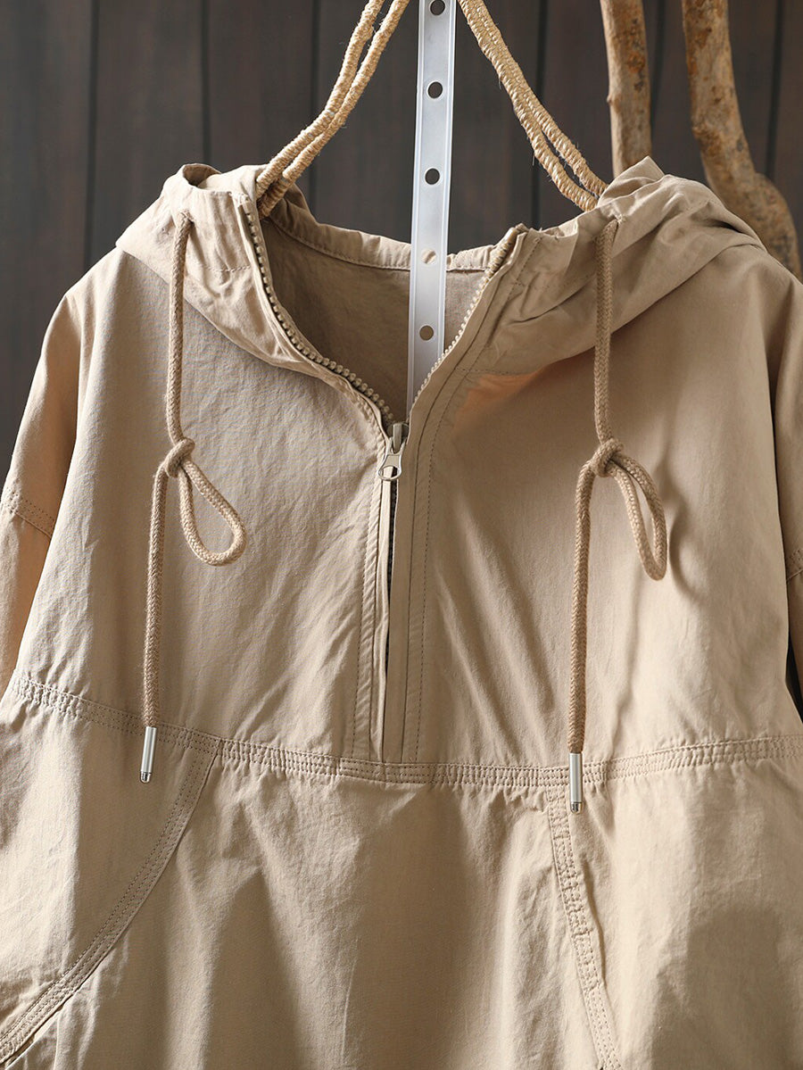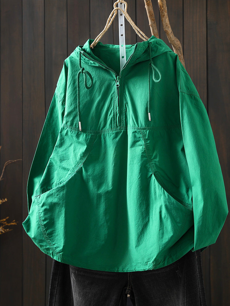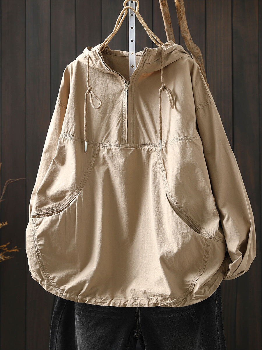 Hanorac cu glugă din bumbac pentru femei, de primăvară, cu aspect artistic, în culori pure