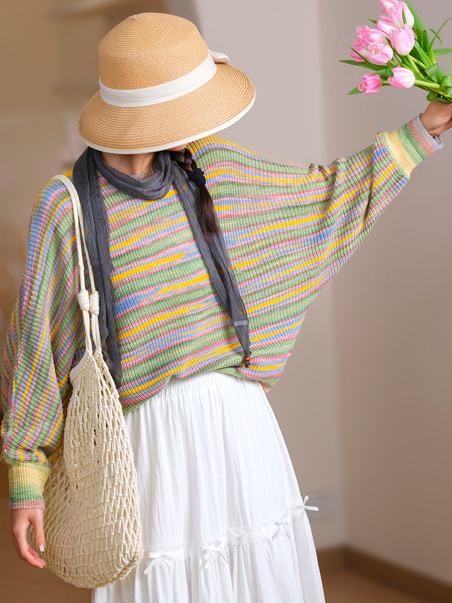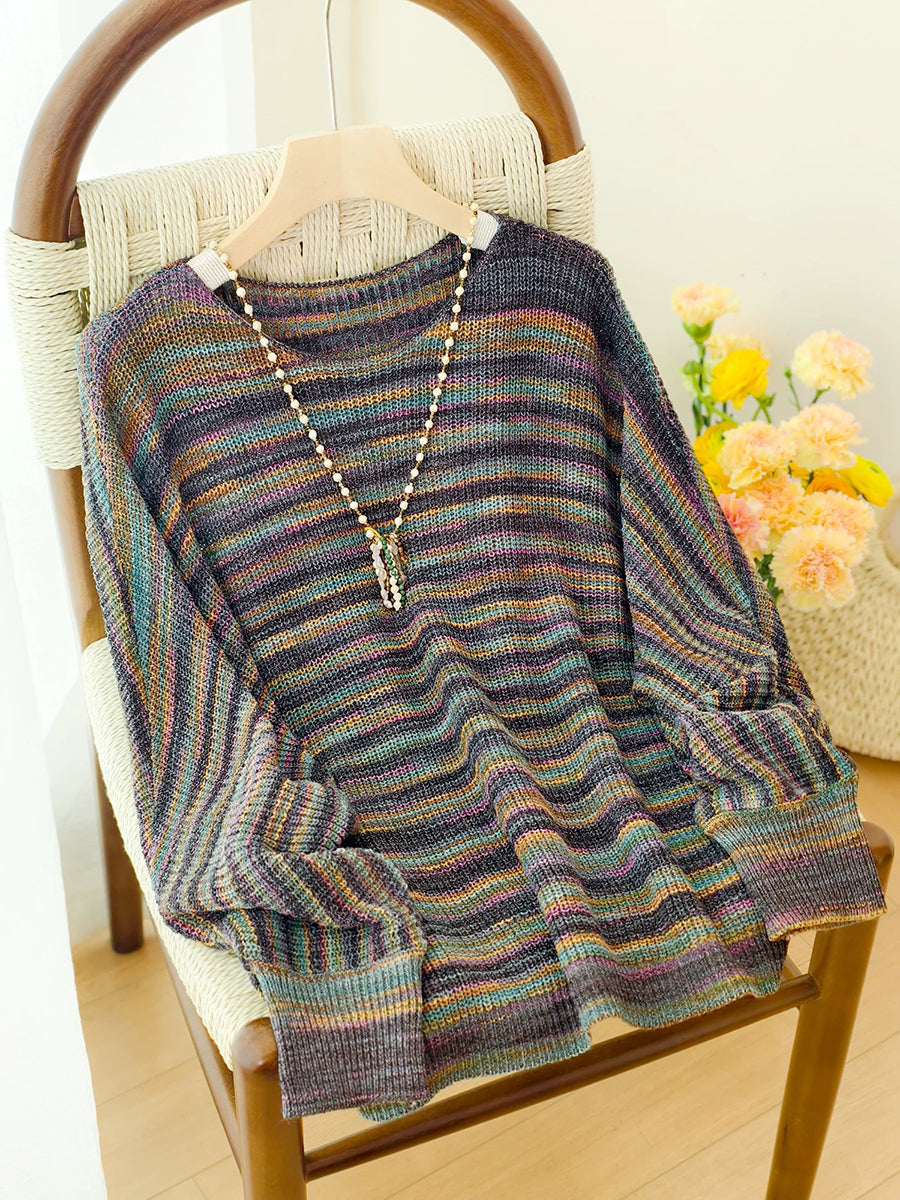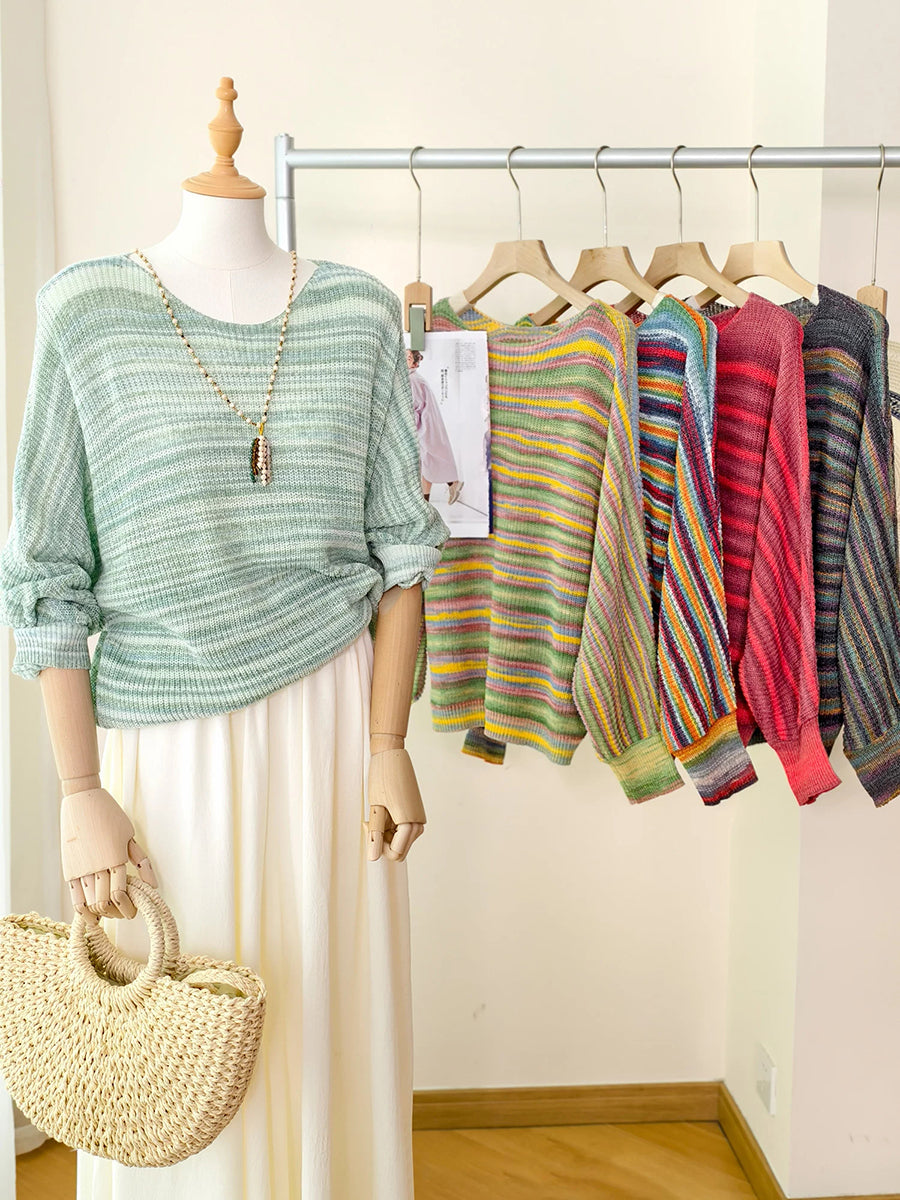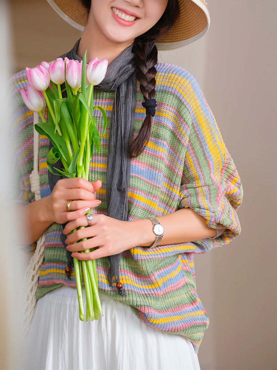 Bluză de primăvară casual cu dungi tricotate cu guler în O