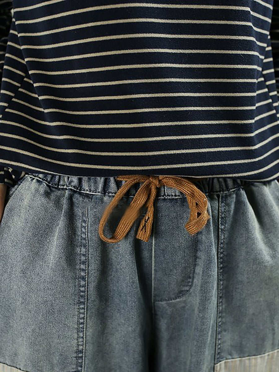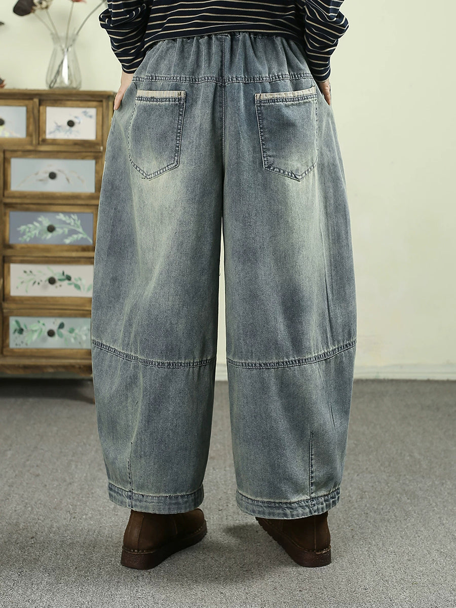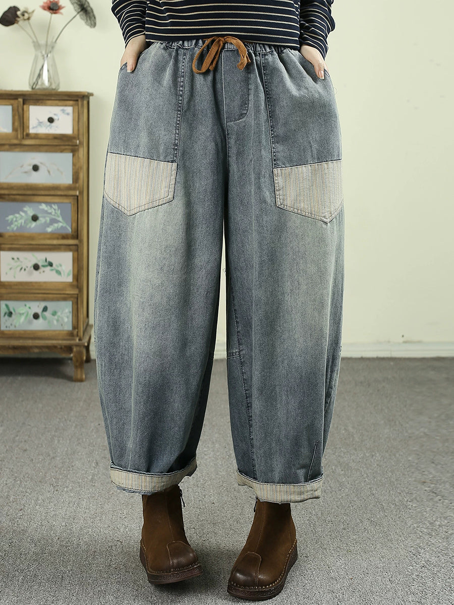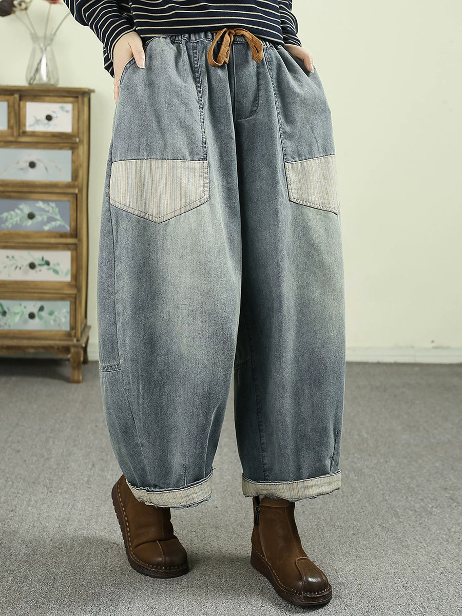 Pantaloni harem din denim vintage pentru femei, de primăvară, cu imprimeu floral