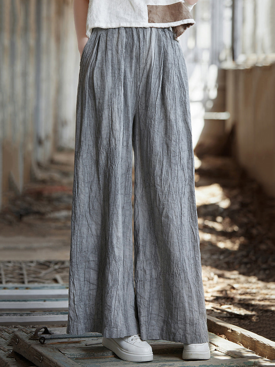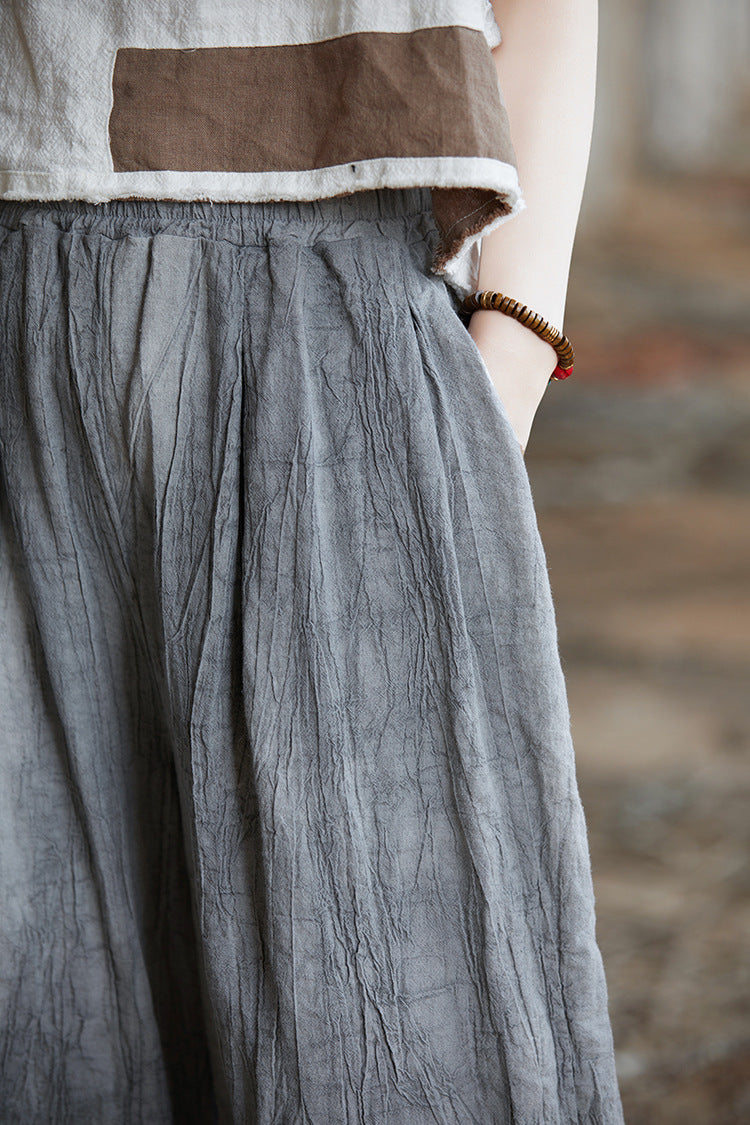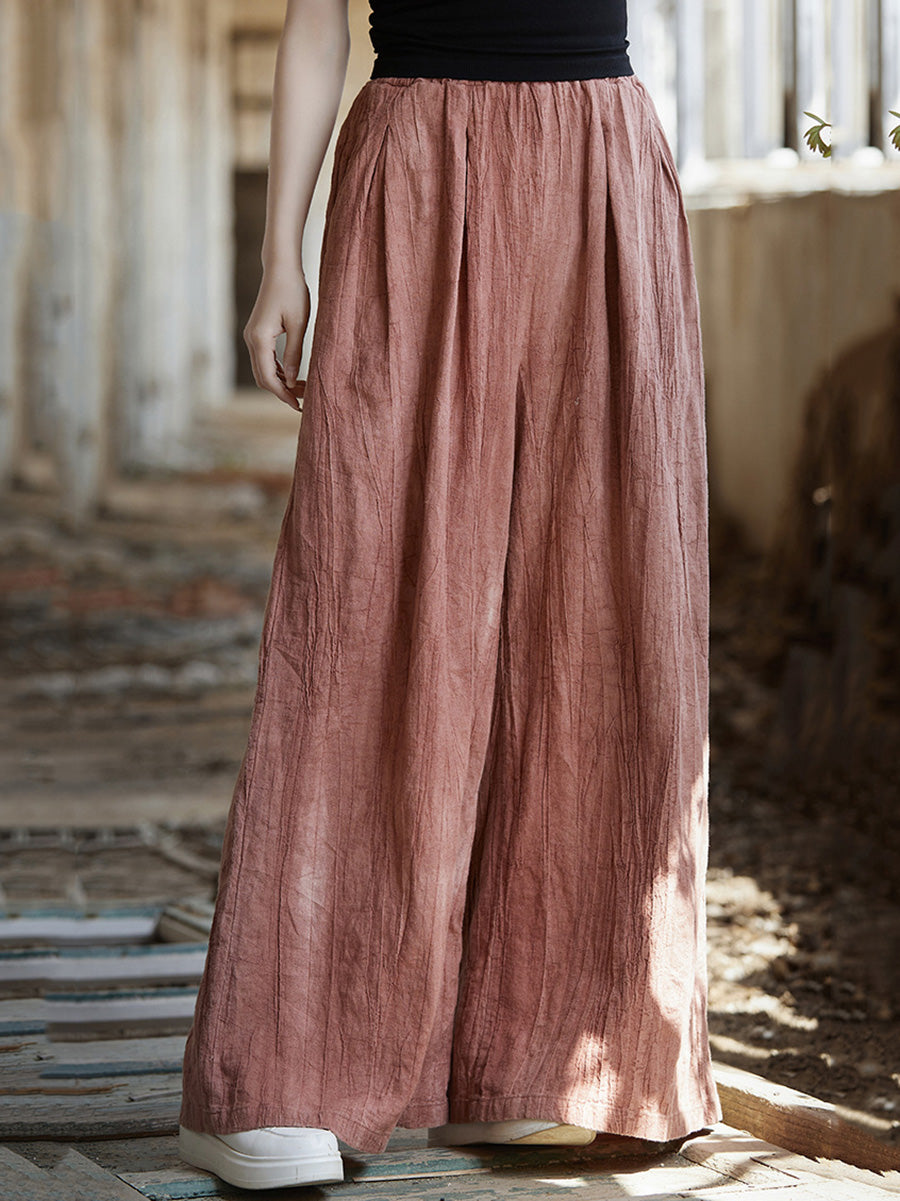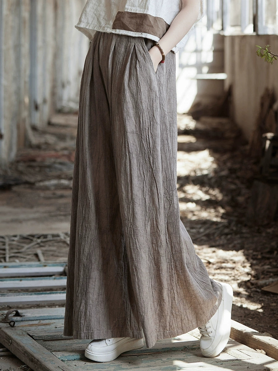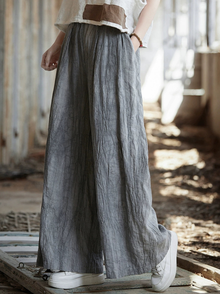Pantaloni largi din ramie, vopsiți în stil vintage de primăvară pentru femei