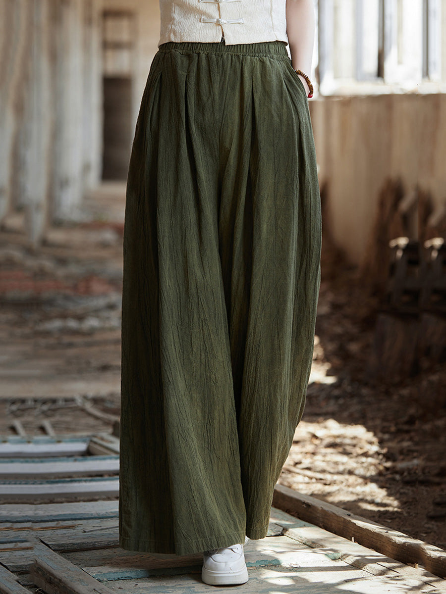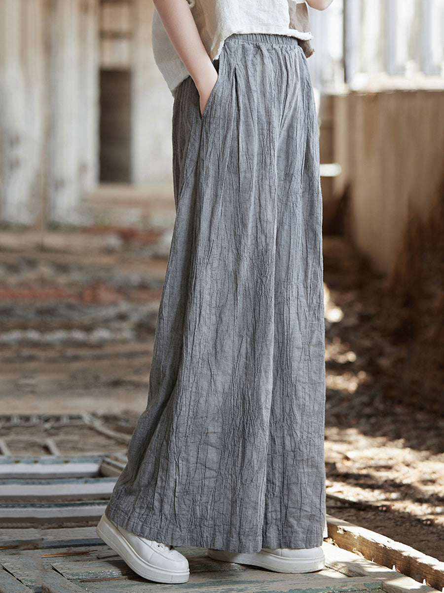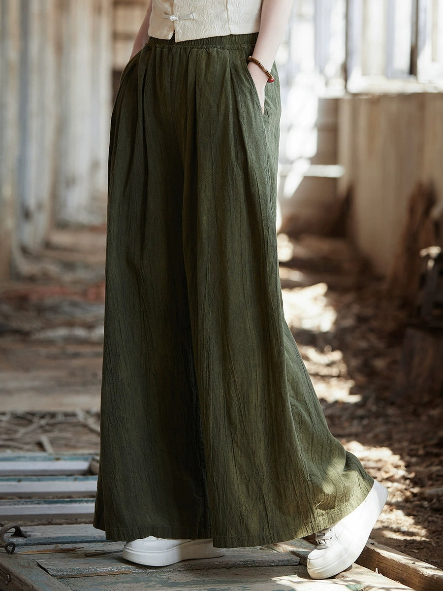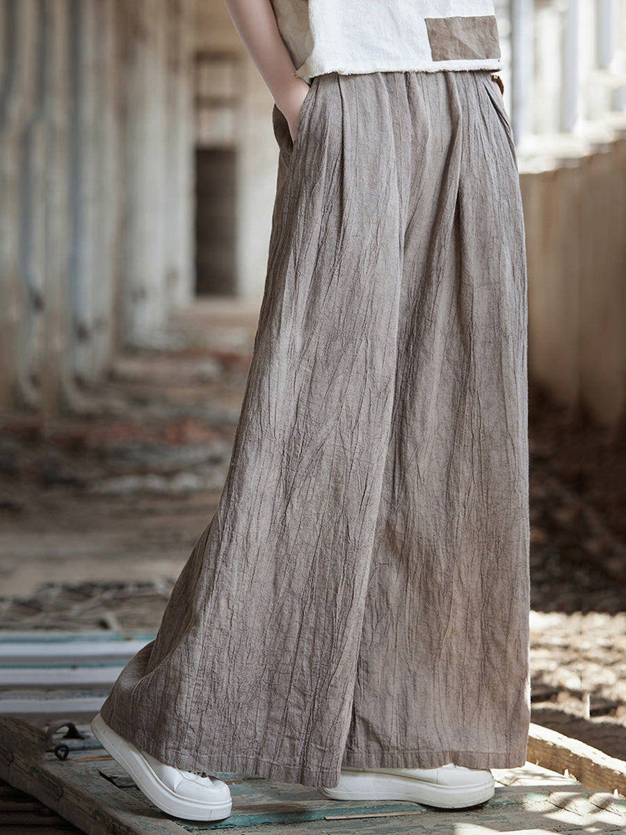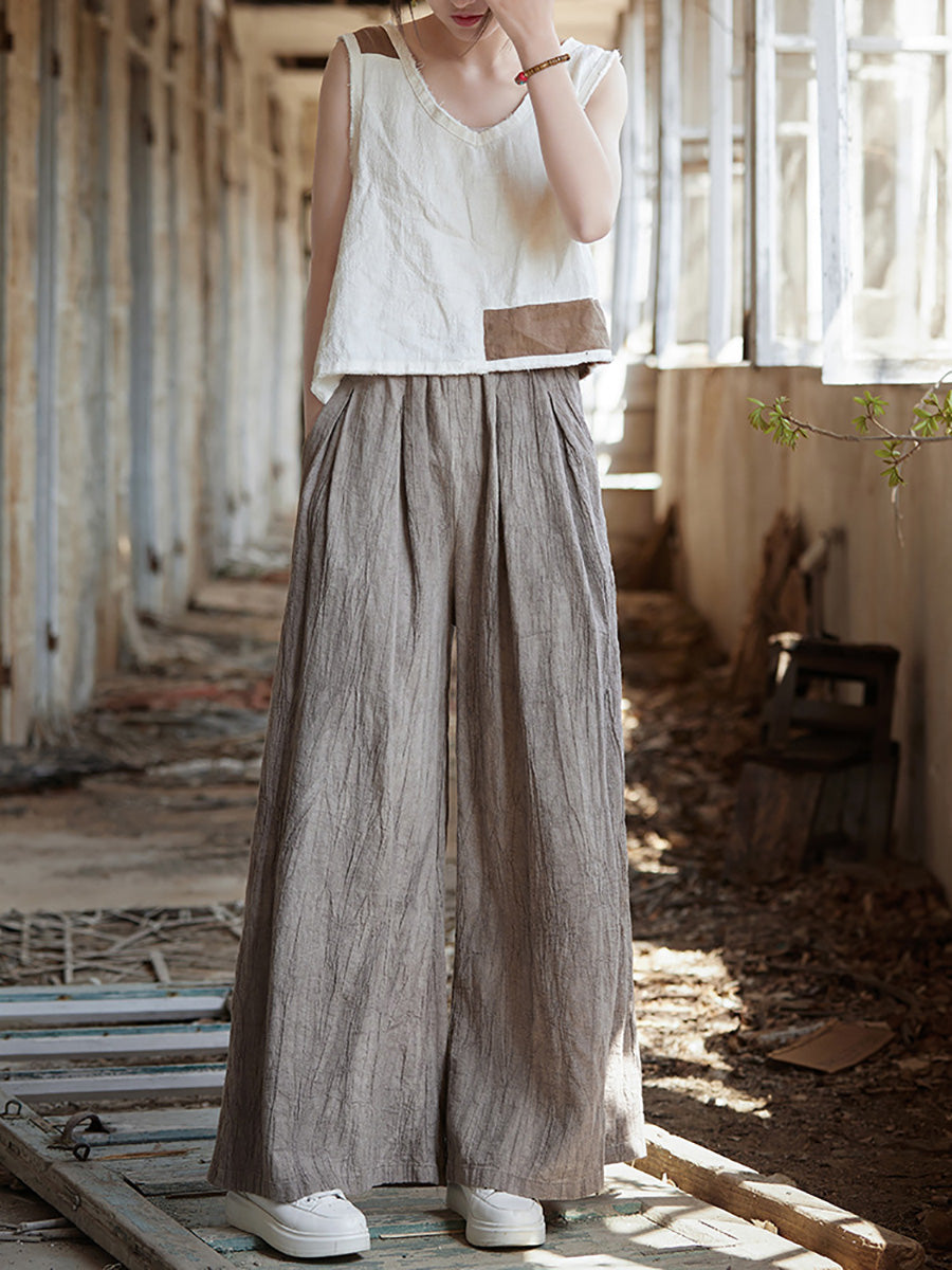 Pantaloni largi din ramie, vopsiți în stil vintage de primăvară pentru femei