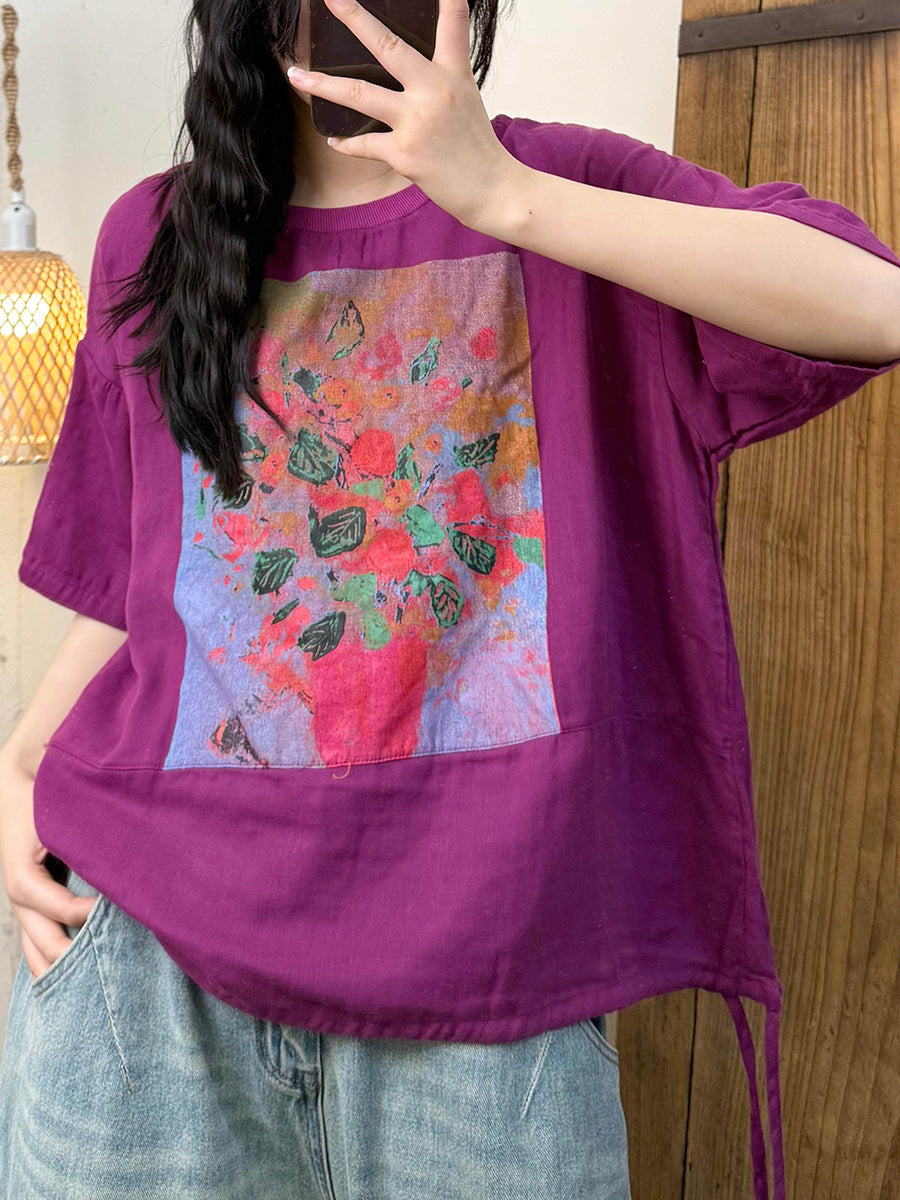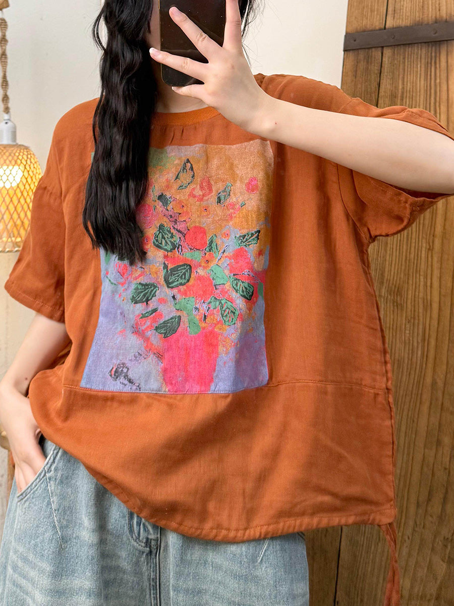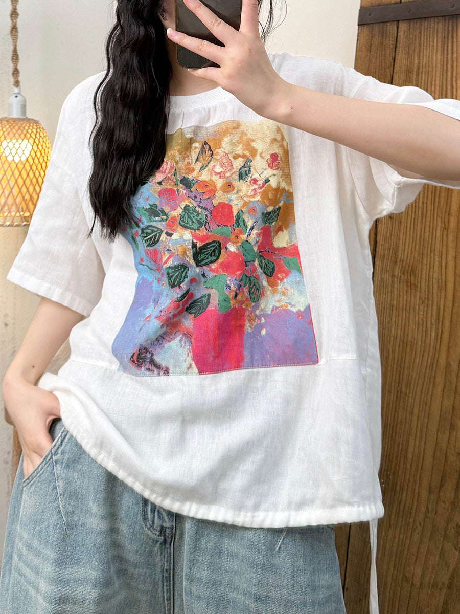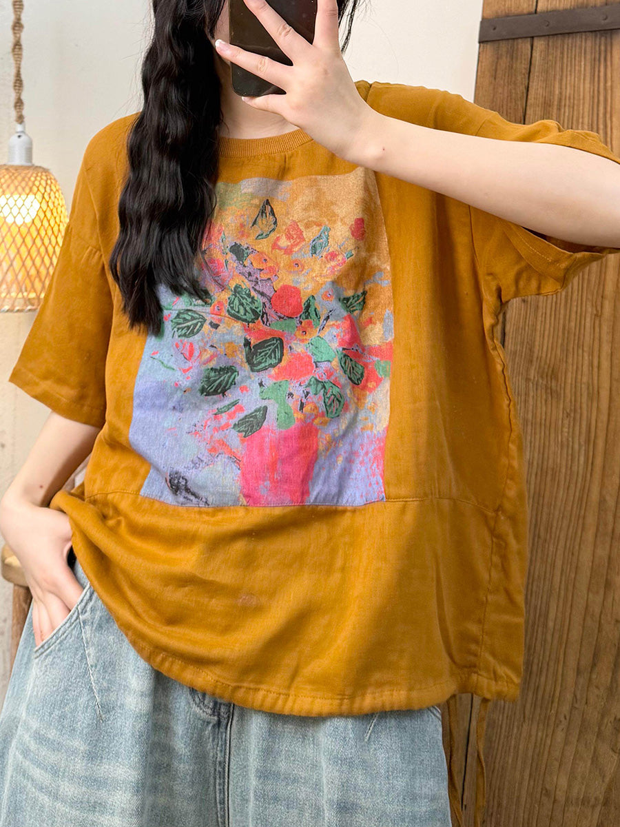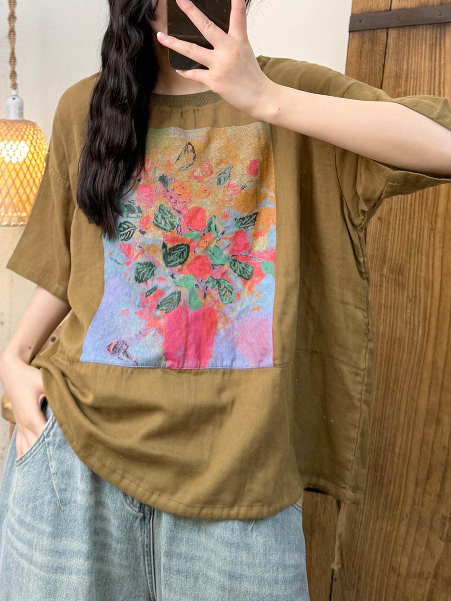 Tricou de vară pentru femei cu imprimeu floral artistic