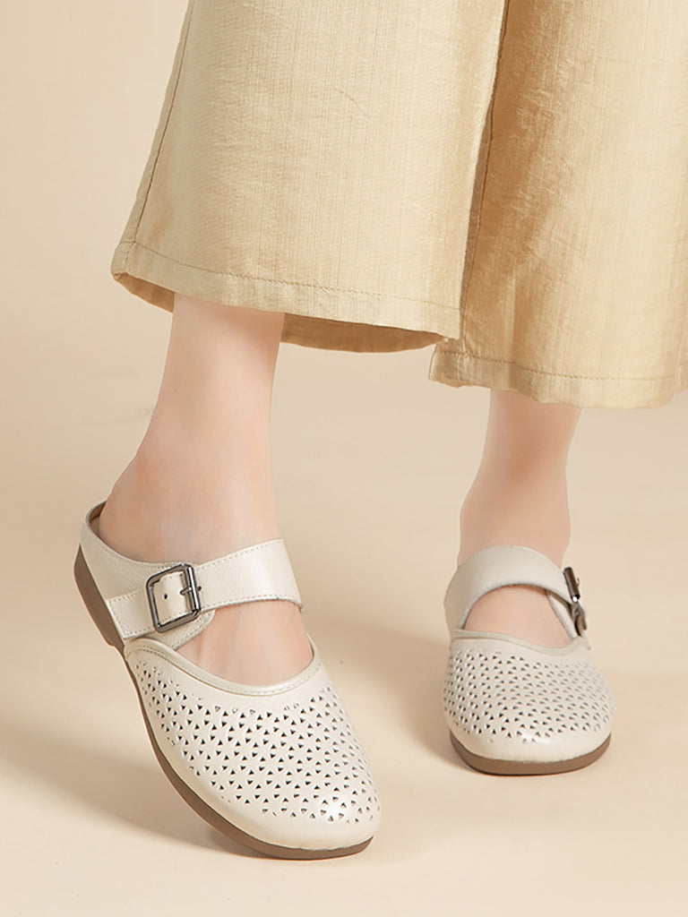 Papuci vintage din piele naturală cu toc jos pentru femei