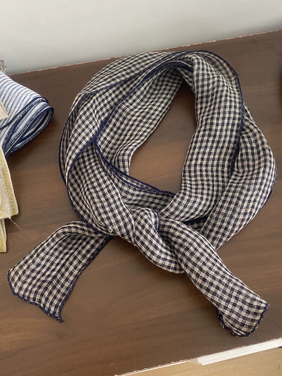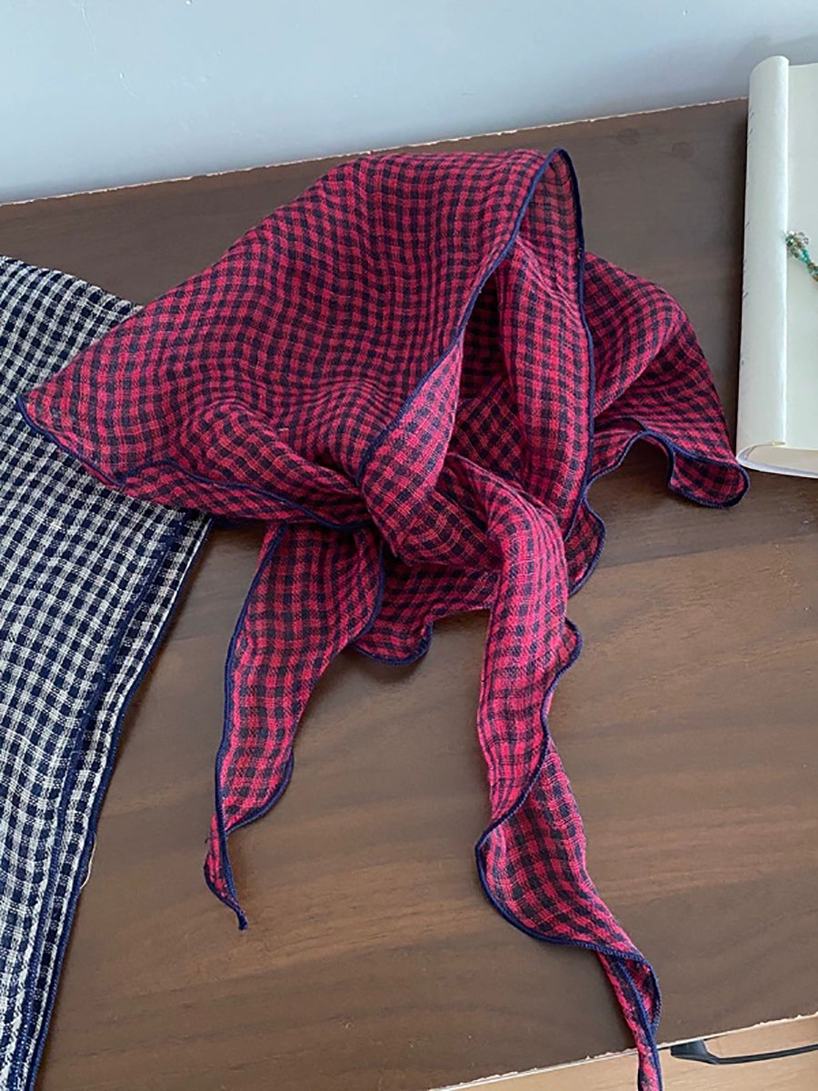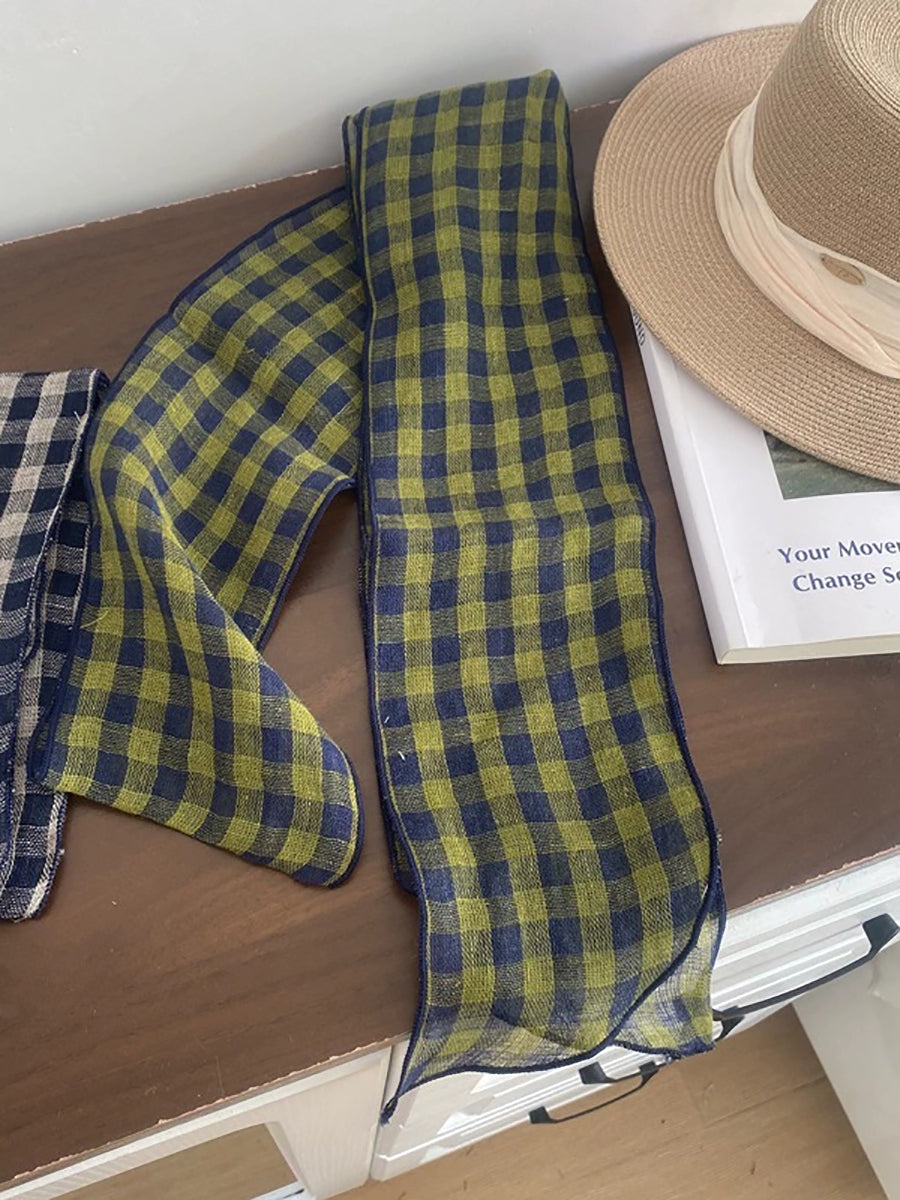 Eșarfă subțire din carouri vintage pentru femei, 100% in