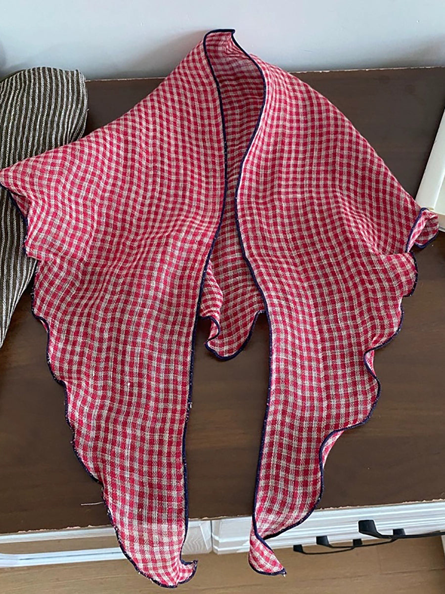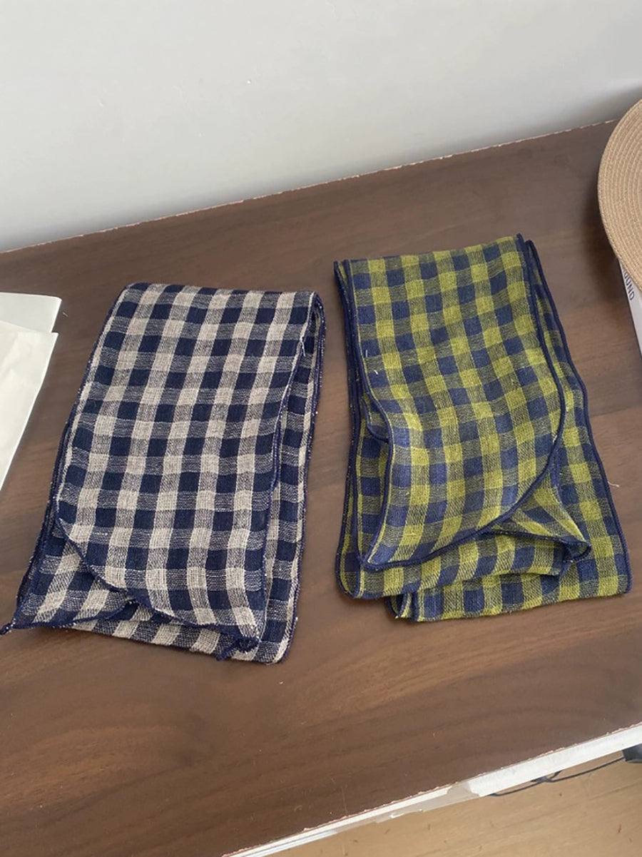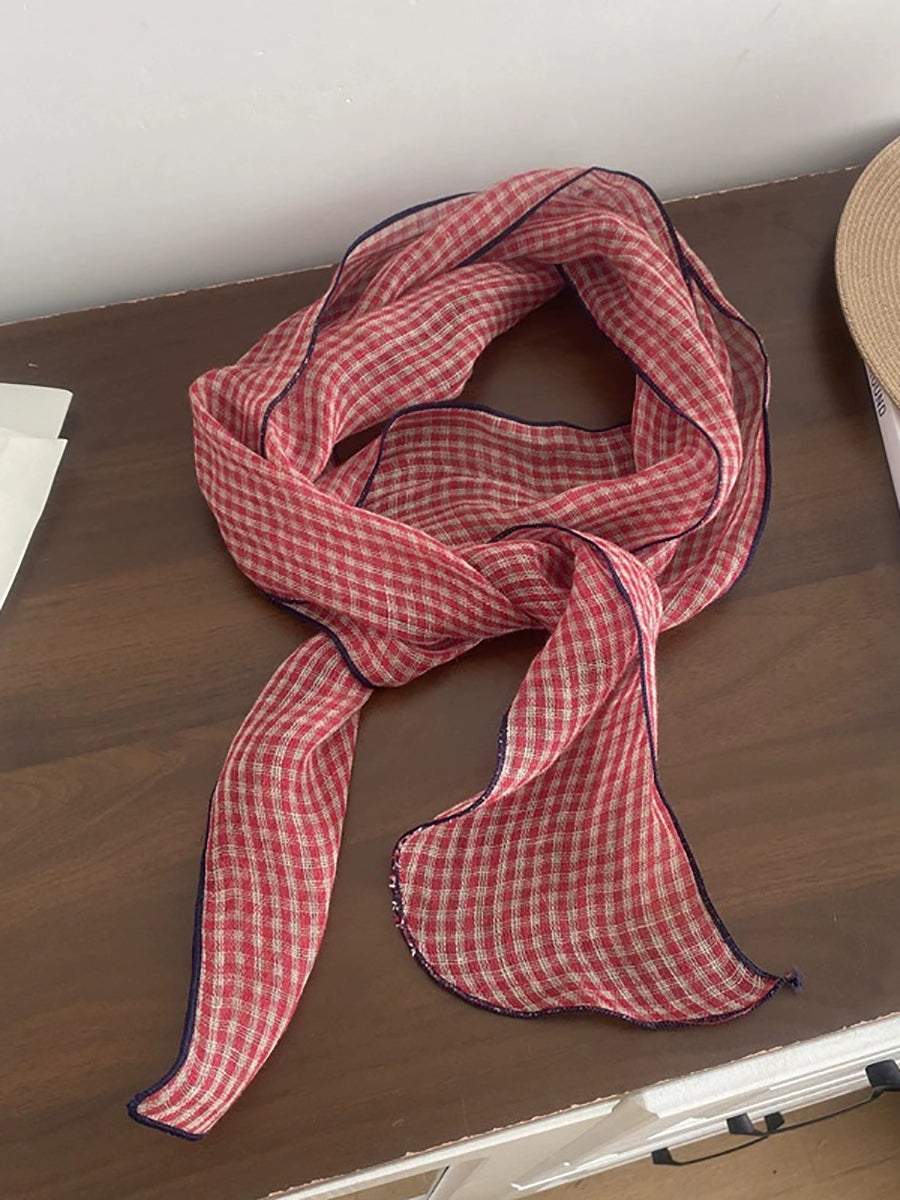 Eșarfă subțire din carouri vintage pentru femei, 100% in