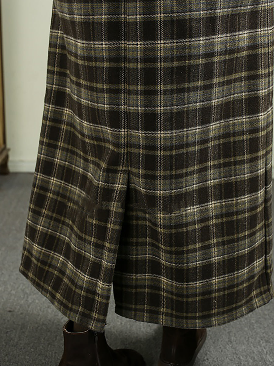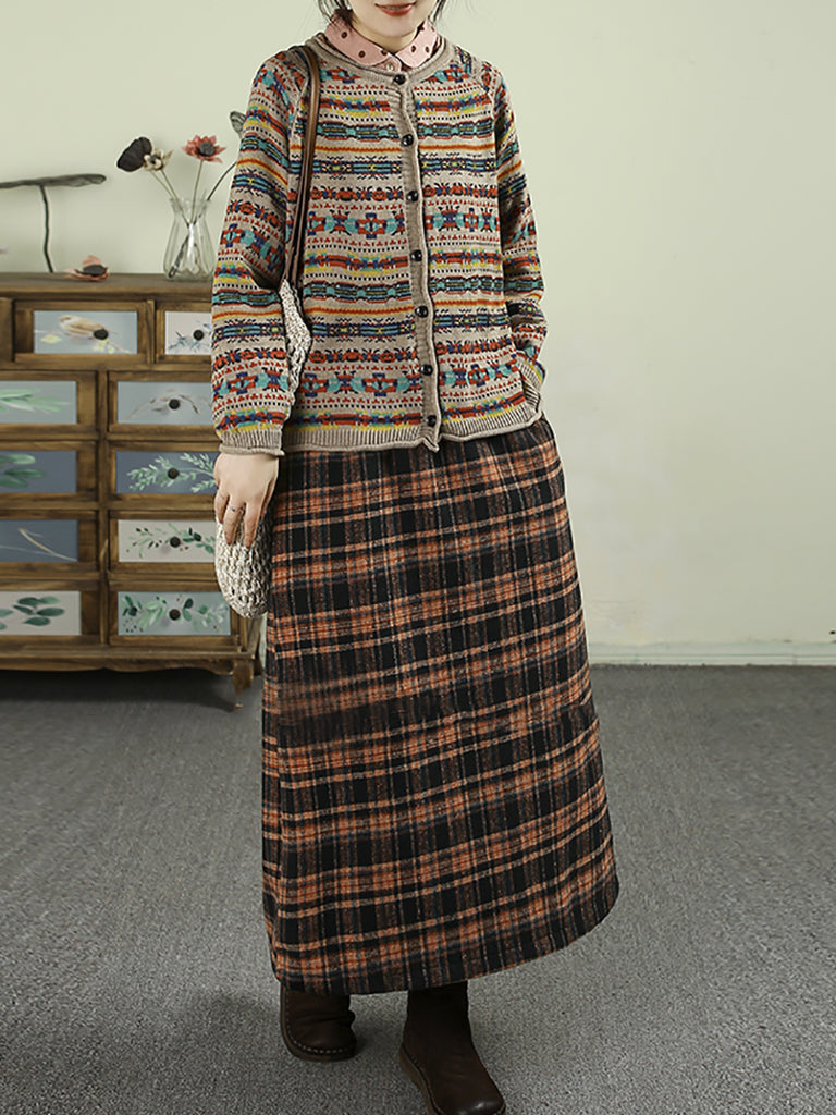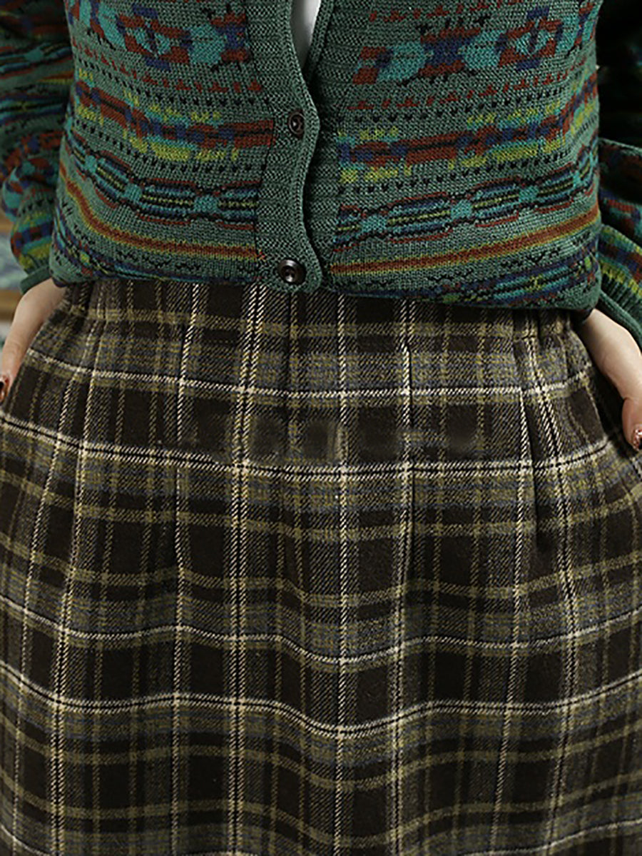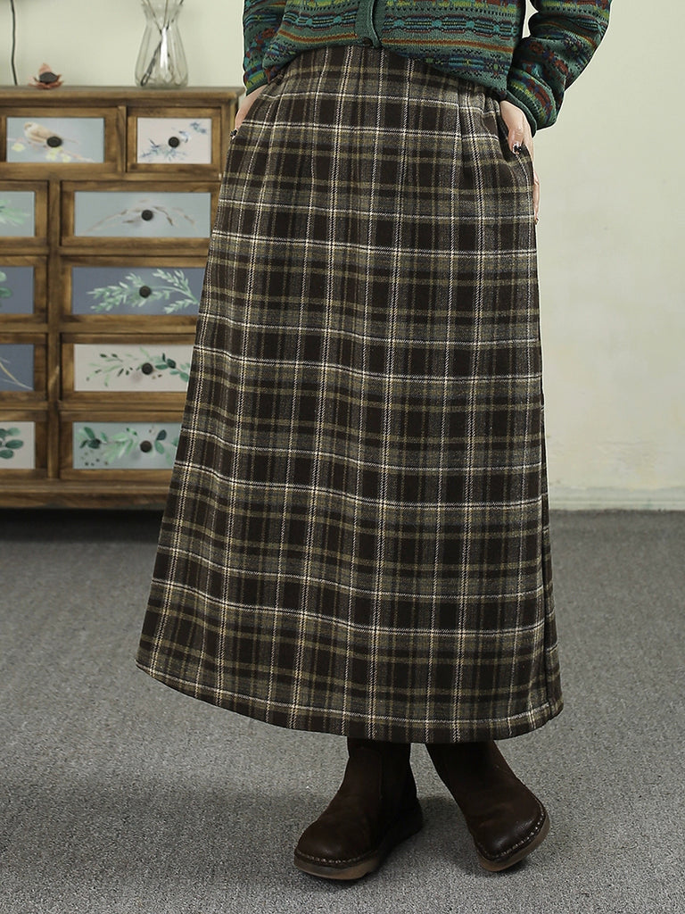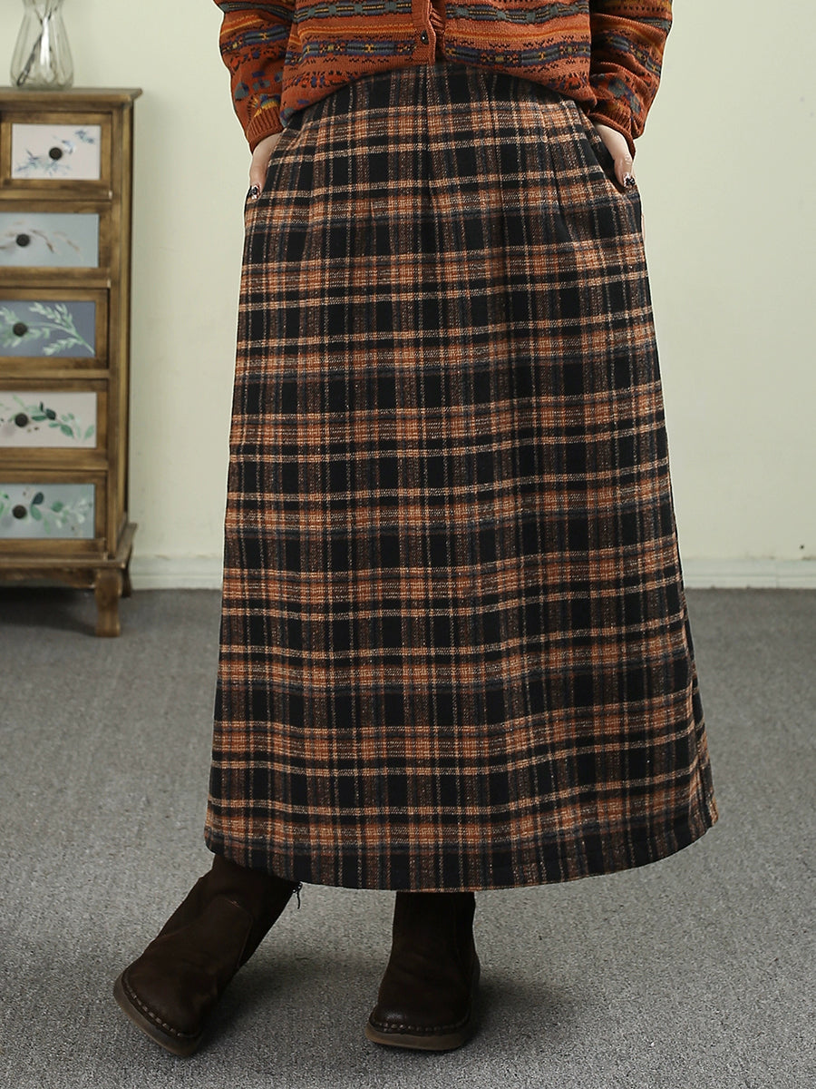 Fustă de iarnă în carouri, în formă de A, cu căptușeală din fleece pentru femei