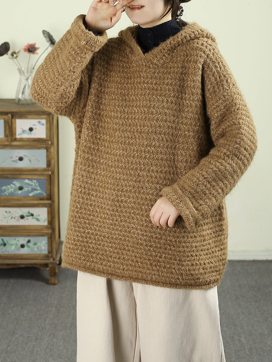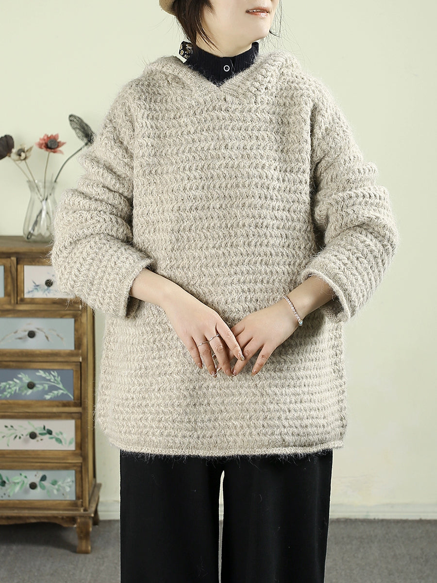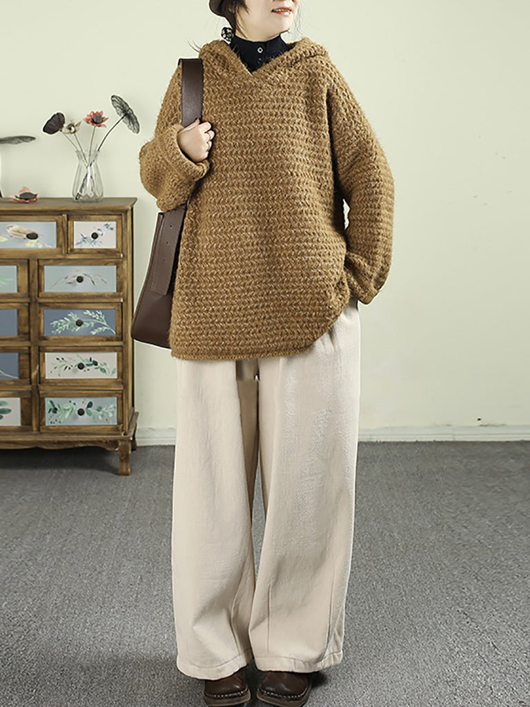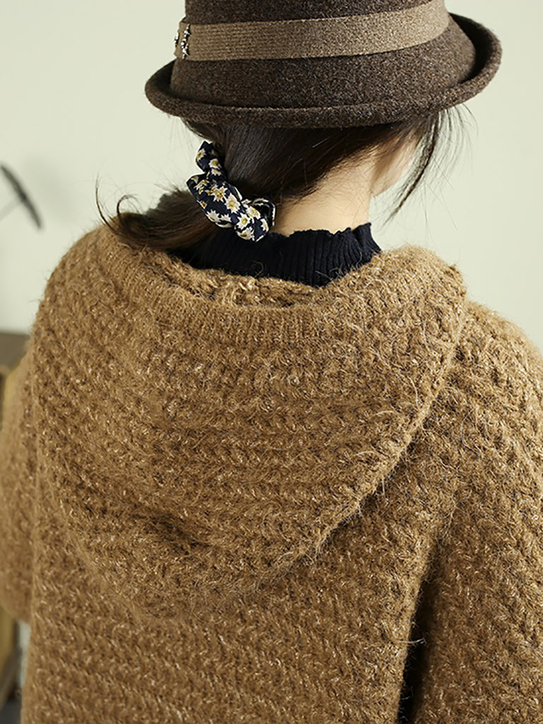 Palton cu glugă tricotat în culori pure retro de iarnă pentru femei