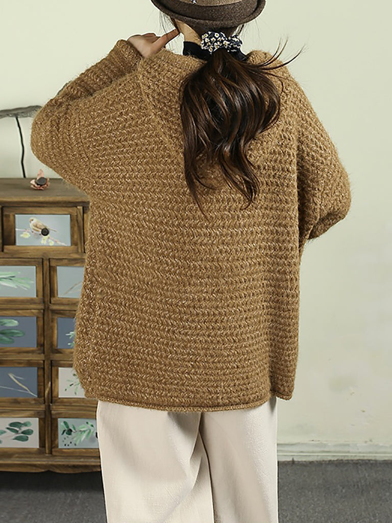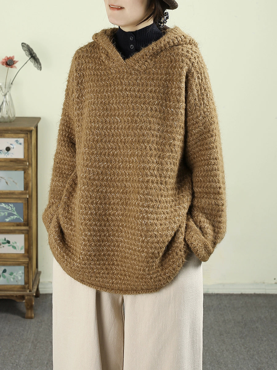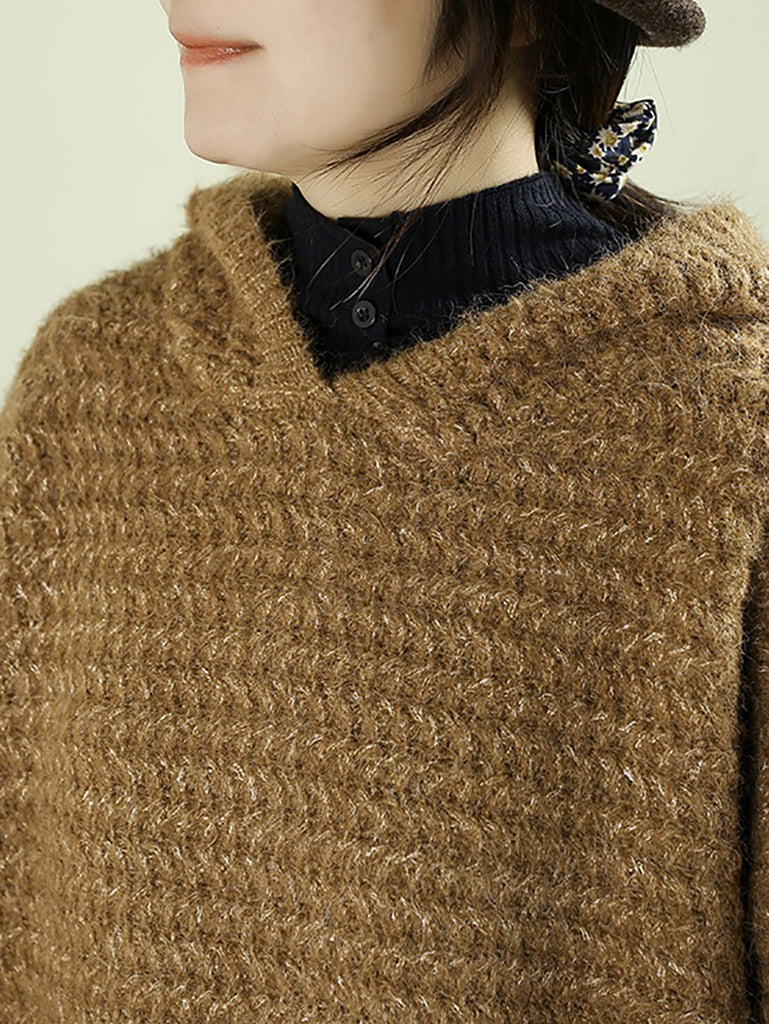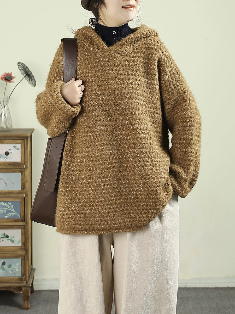 Palton cu glugă tricotat în culori pure retro de iarnă pentru femei