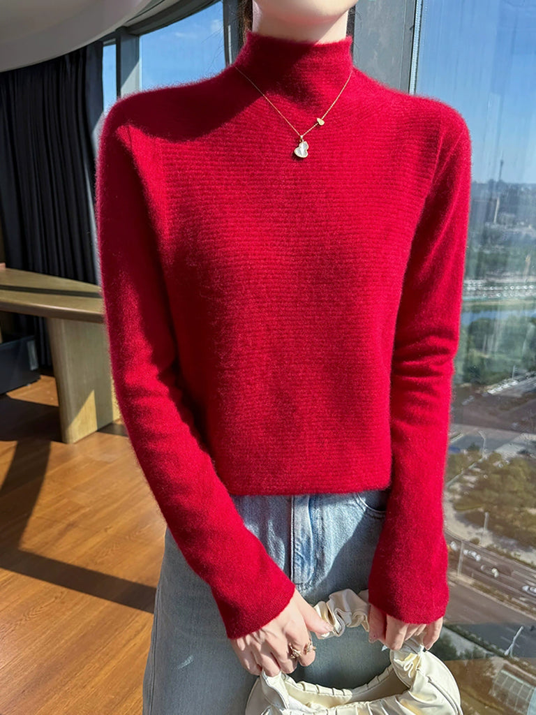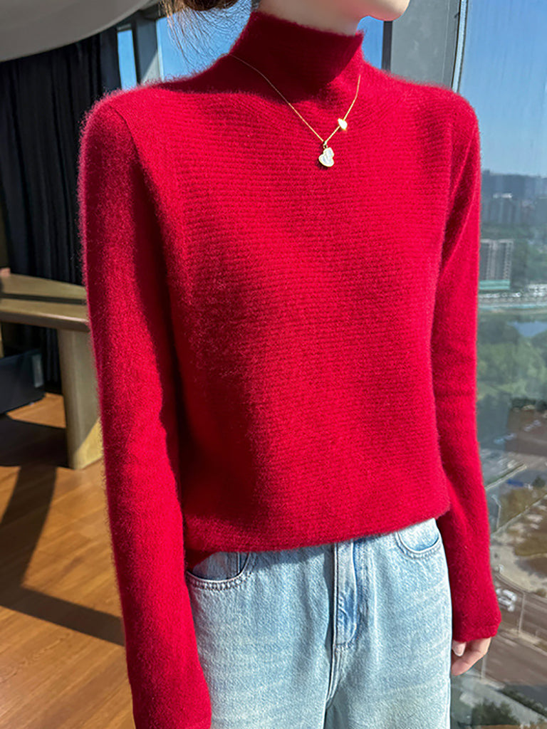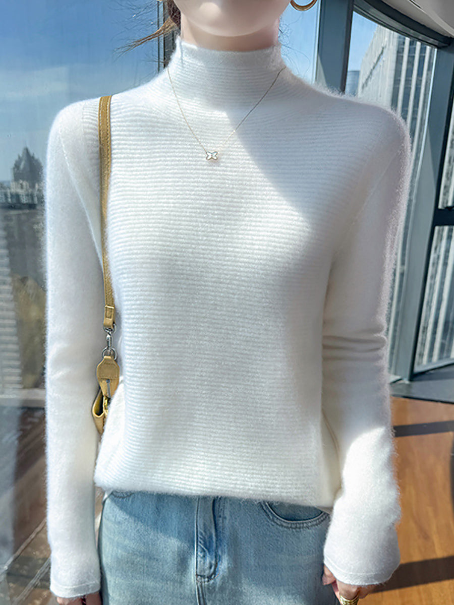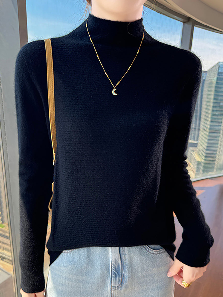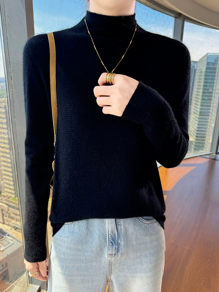 Höstkonstnärlig tröja i ren färg för kvinnor med polotröja