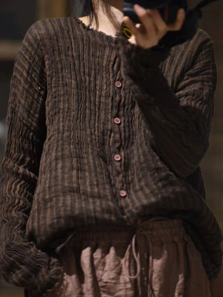 Dam höst casual ren färg 100% bomull O-ringad skjorta