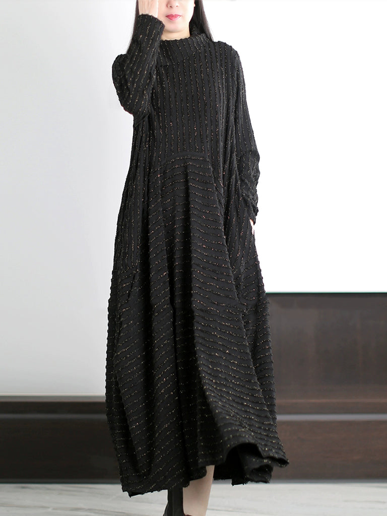 Höstklänning med konstnärlig rand och O-ringning för kvinnor