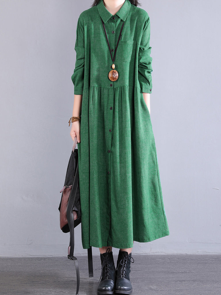 Höstklänning för kvinnor i ren färg med nedfällbar krage i 100 % bomull