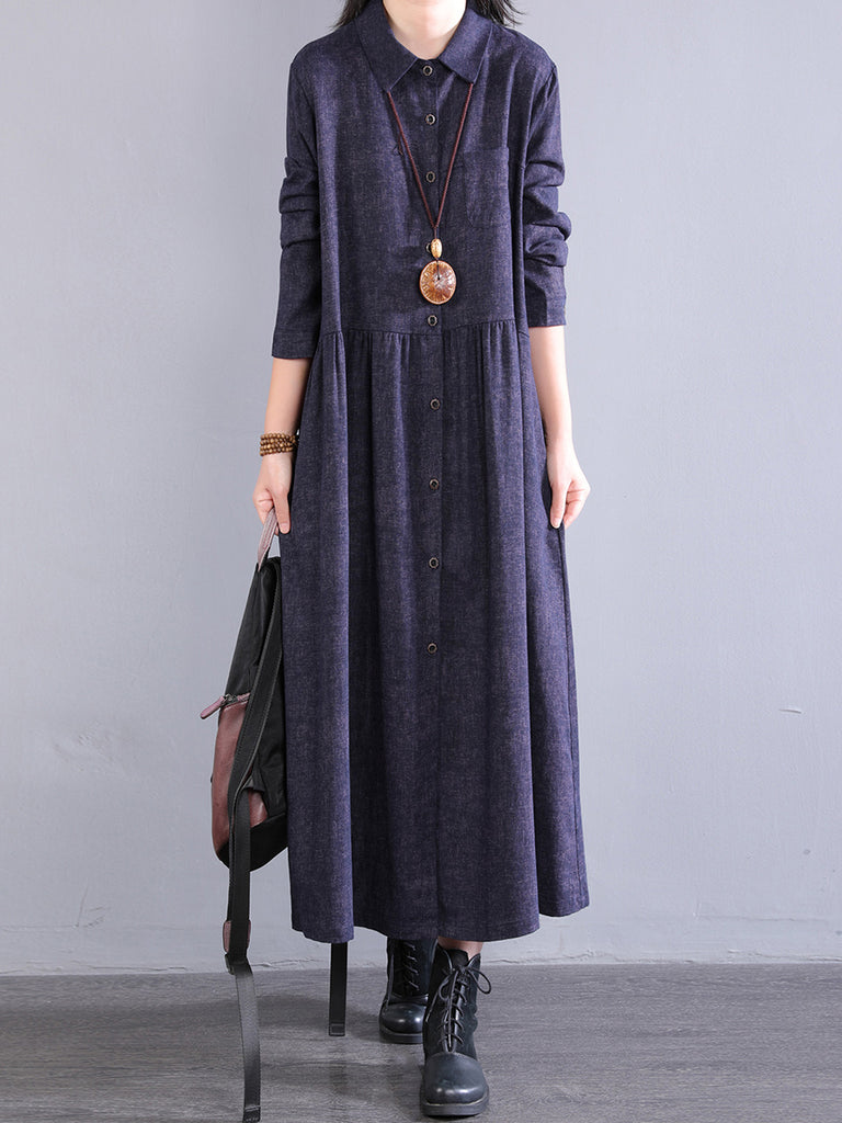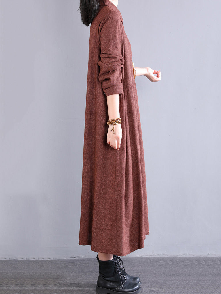 Höstklänning för kvinnor i ren färg med nedfällbar krage i 100 % bomull