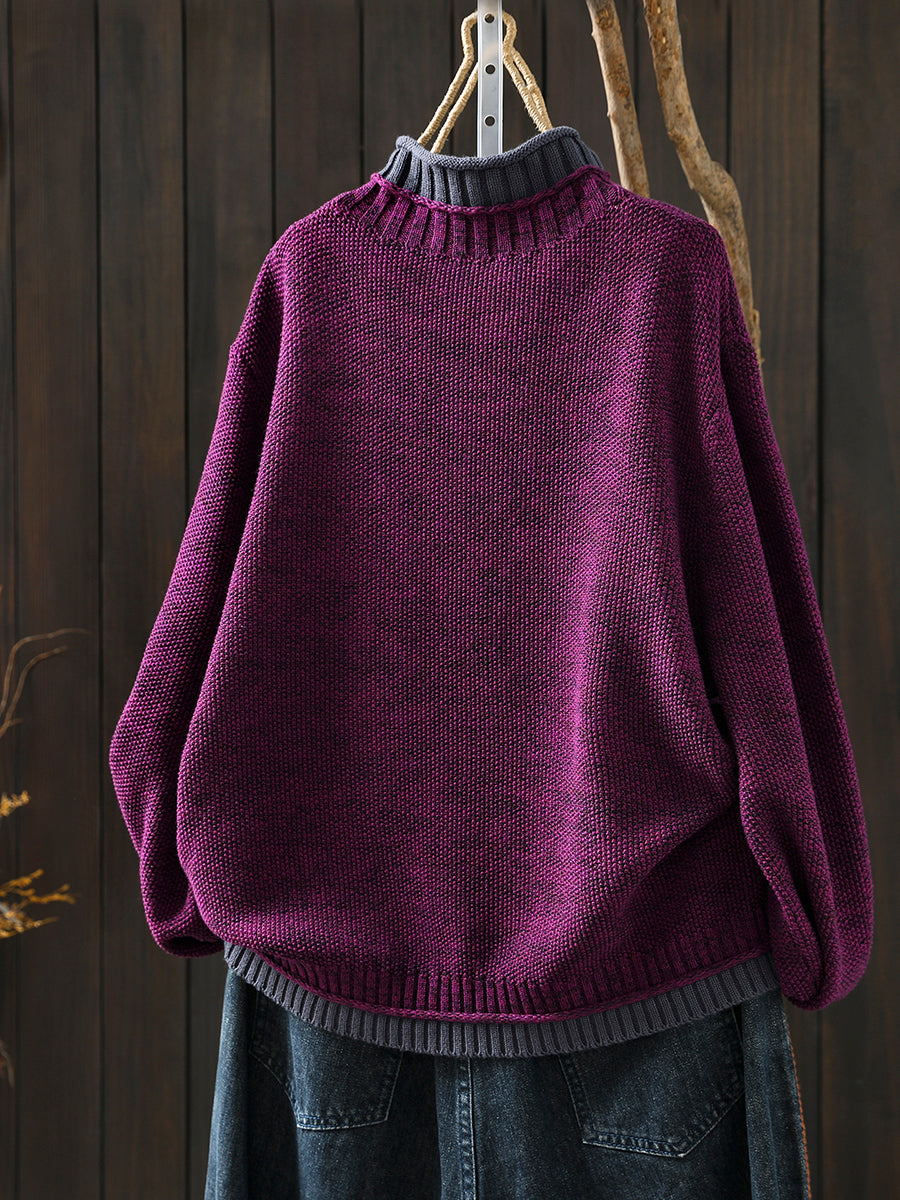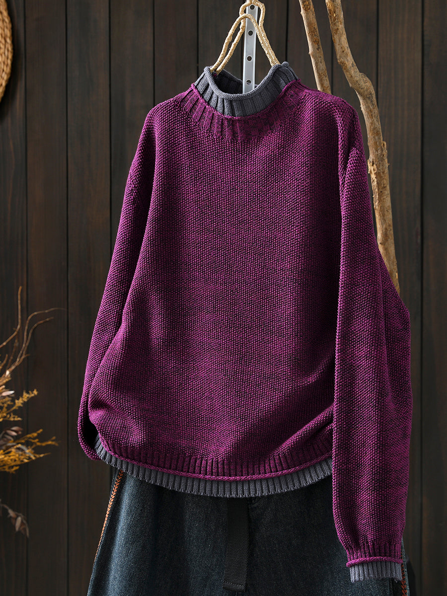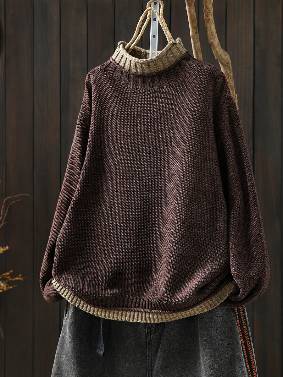 Höstkonstnärlig färgblockströja med halv polotröja för kvinnor