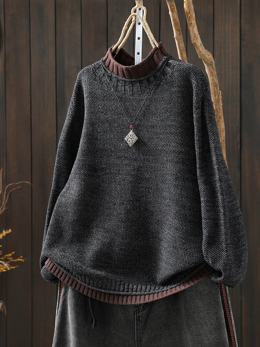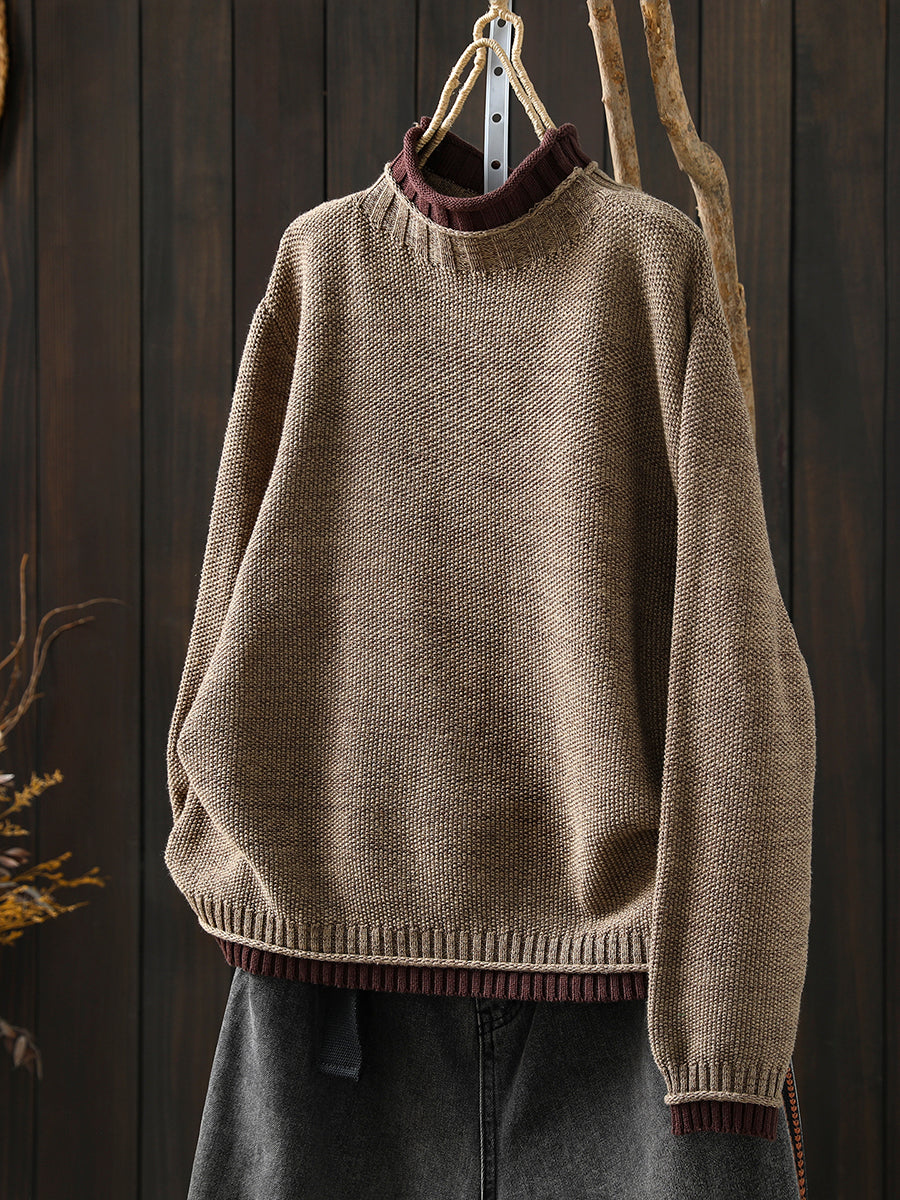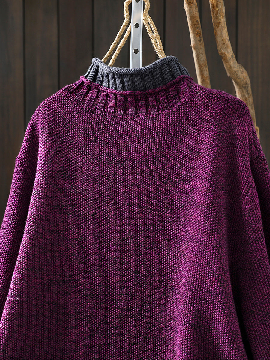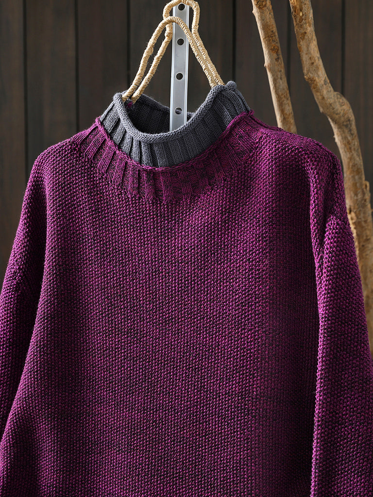 Höstkonstnärlig färgblockströja med halv polotröja för kvinnor