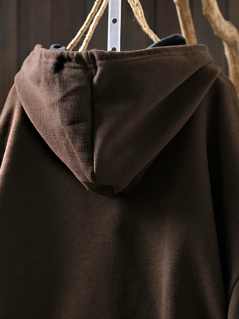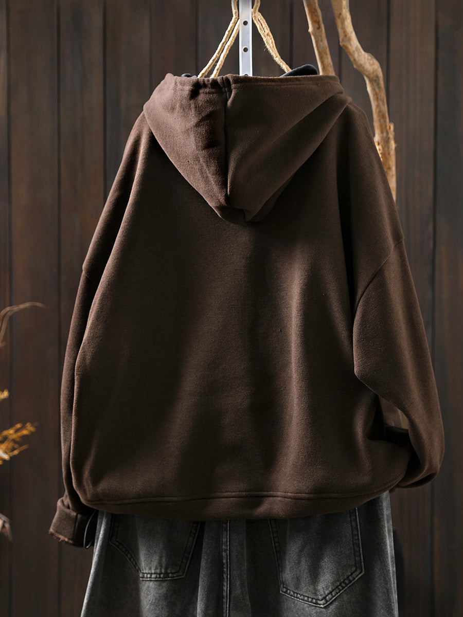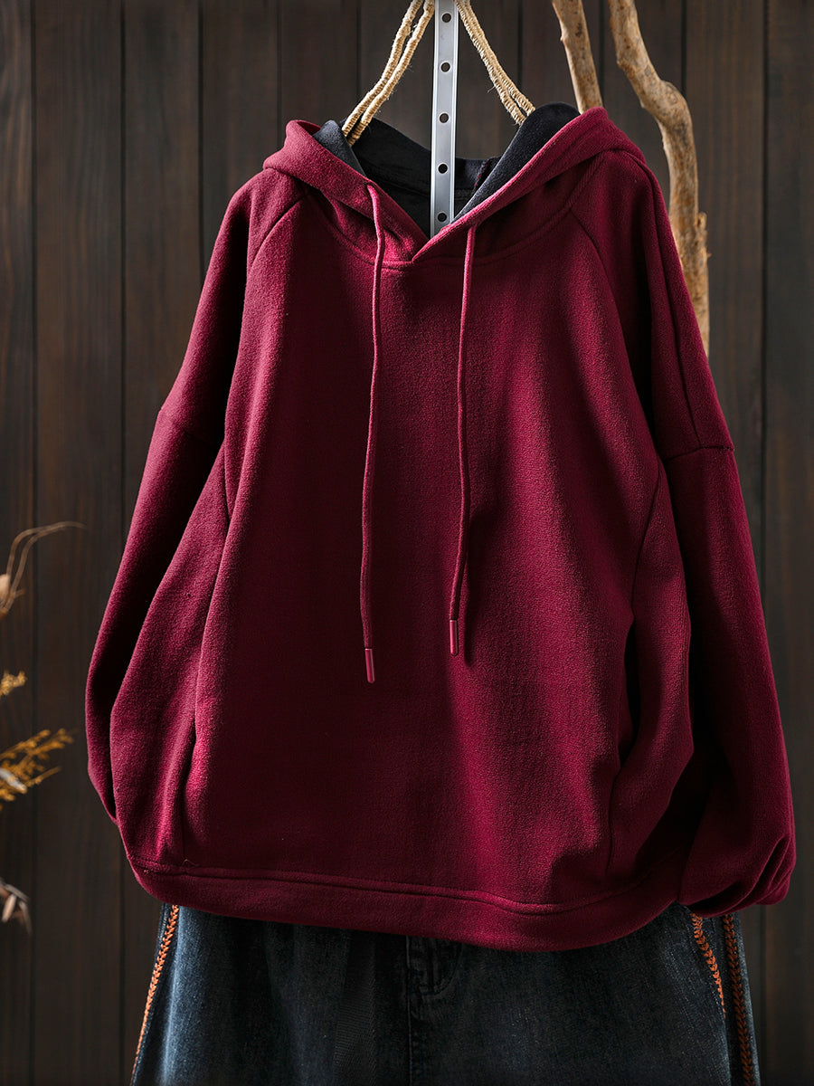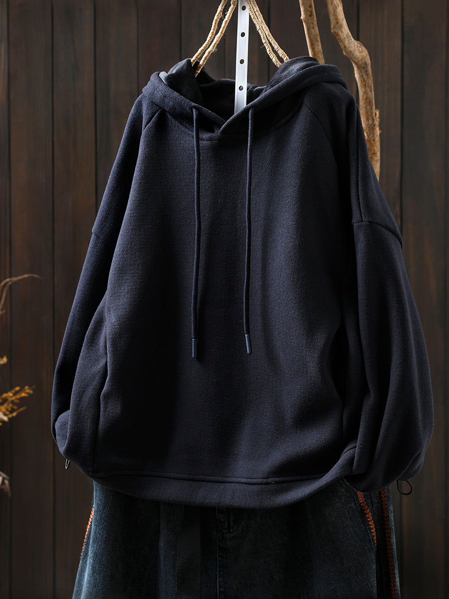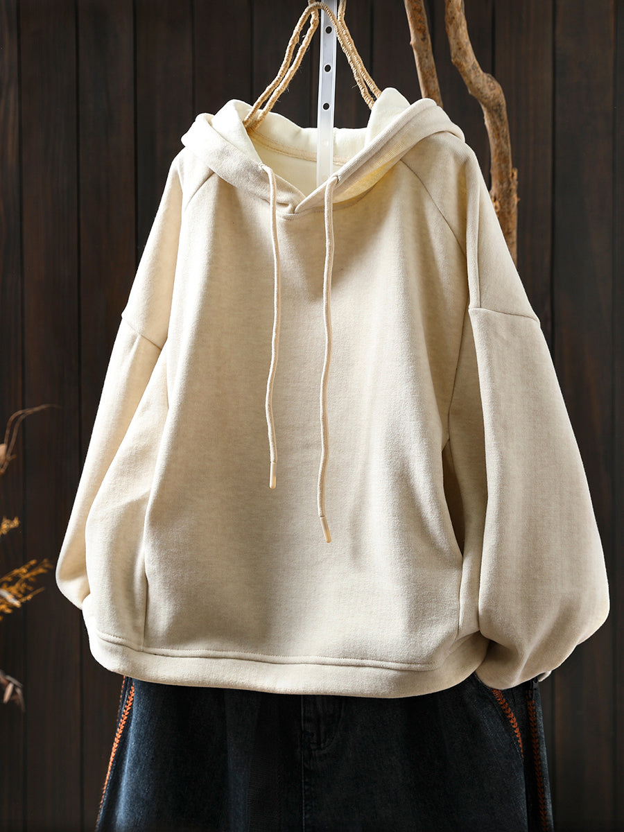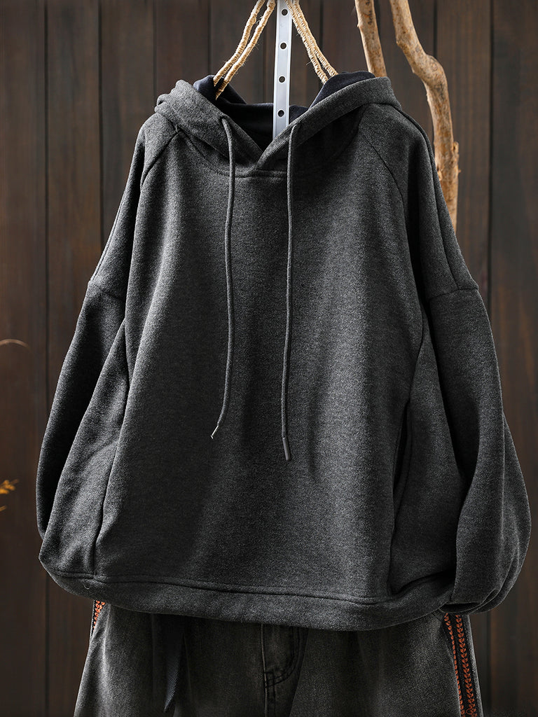 Dam Vinter Casual Ren Färg Fleecefodrad Hoodie