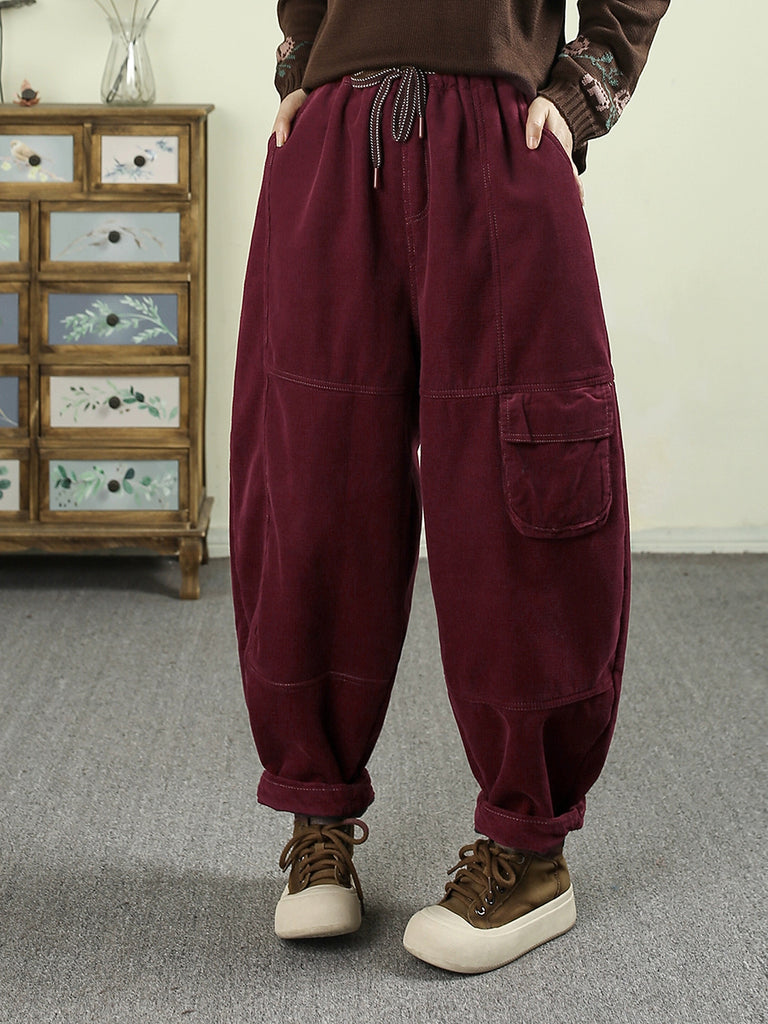 Plus Size Vår Retro Manchester Enfärgade Byxor
