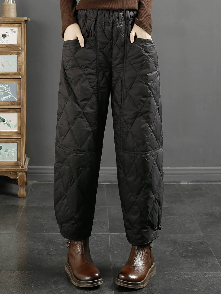 Kvinnors vinter casual ren färg vadderade harembyxor