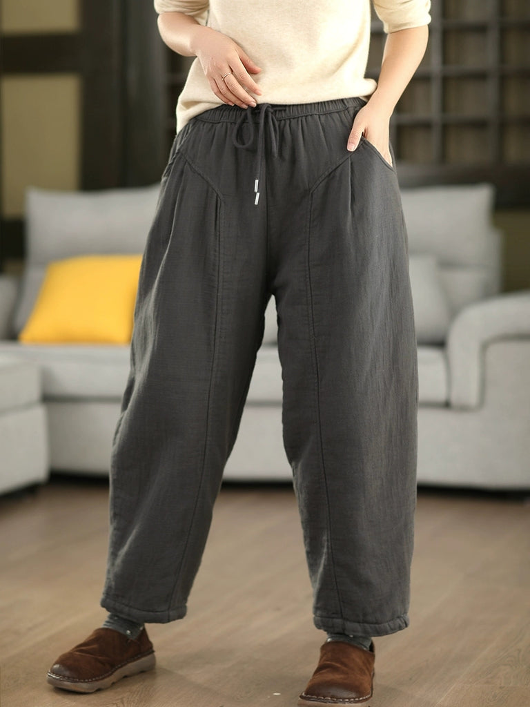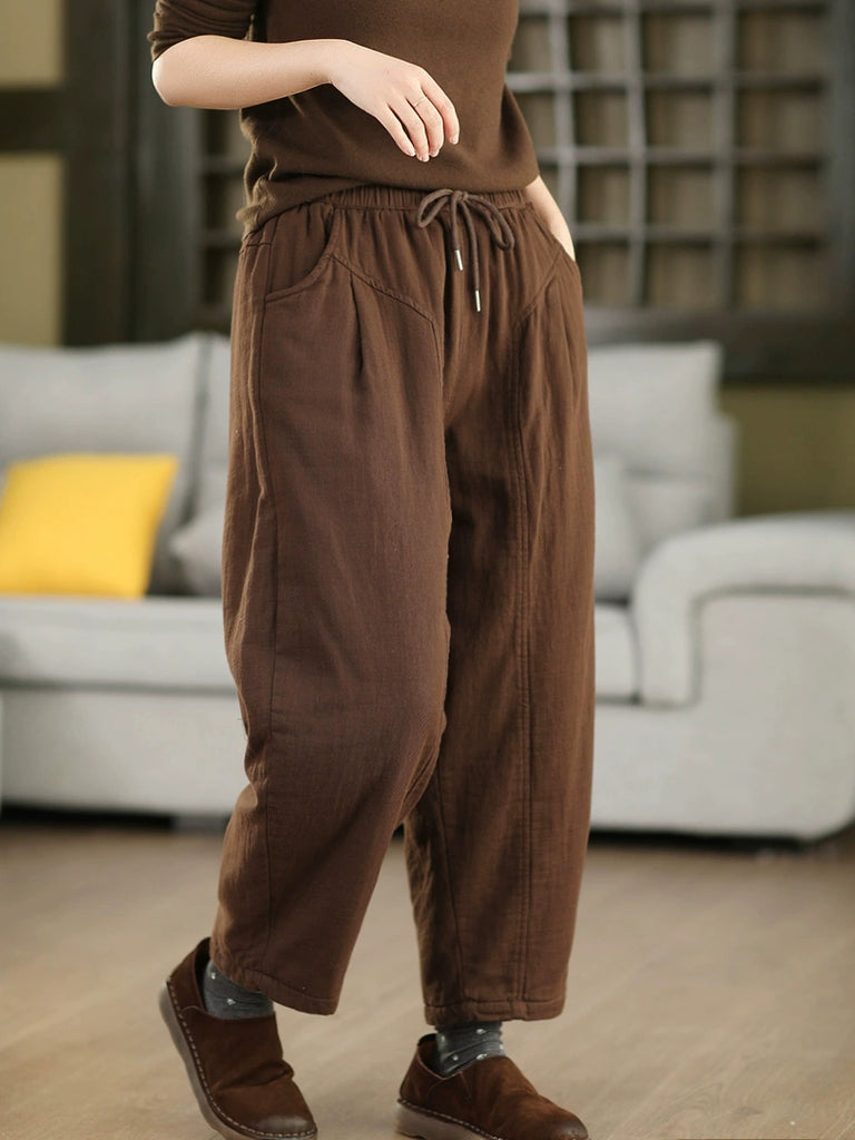 Kvinnors vinter vintage ren färg linne vadderade harembyxor